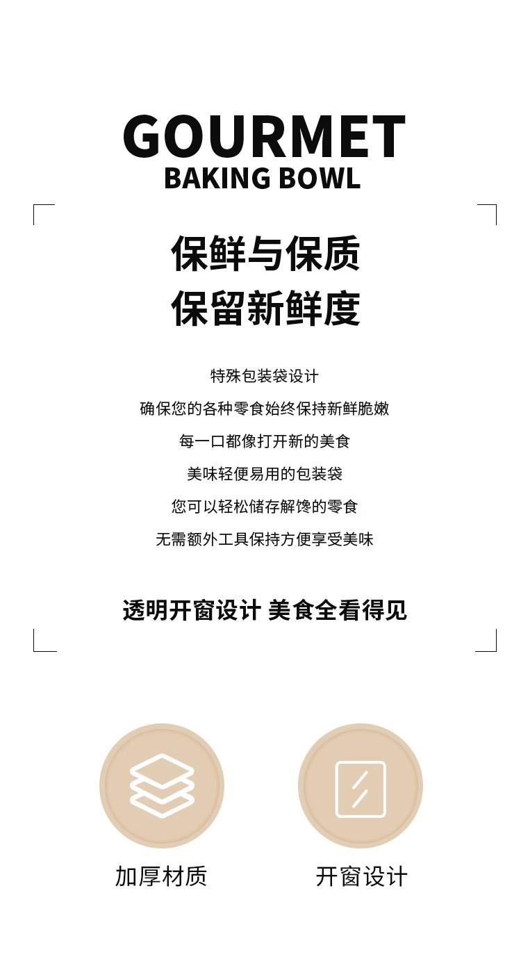 Large size (21*28+11) holds about 500 grams of food; 100 pieces