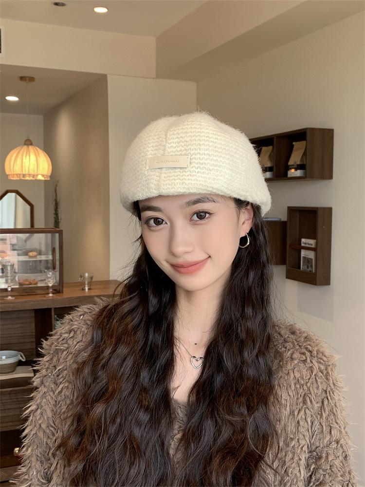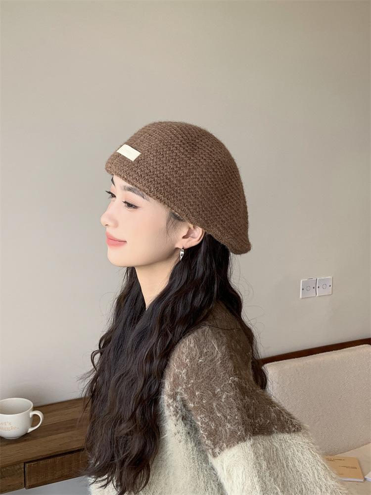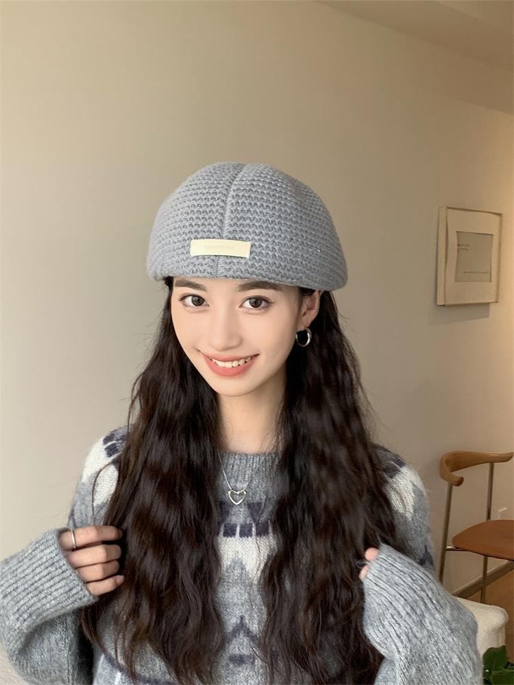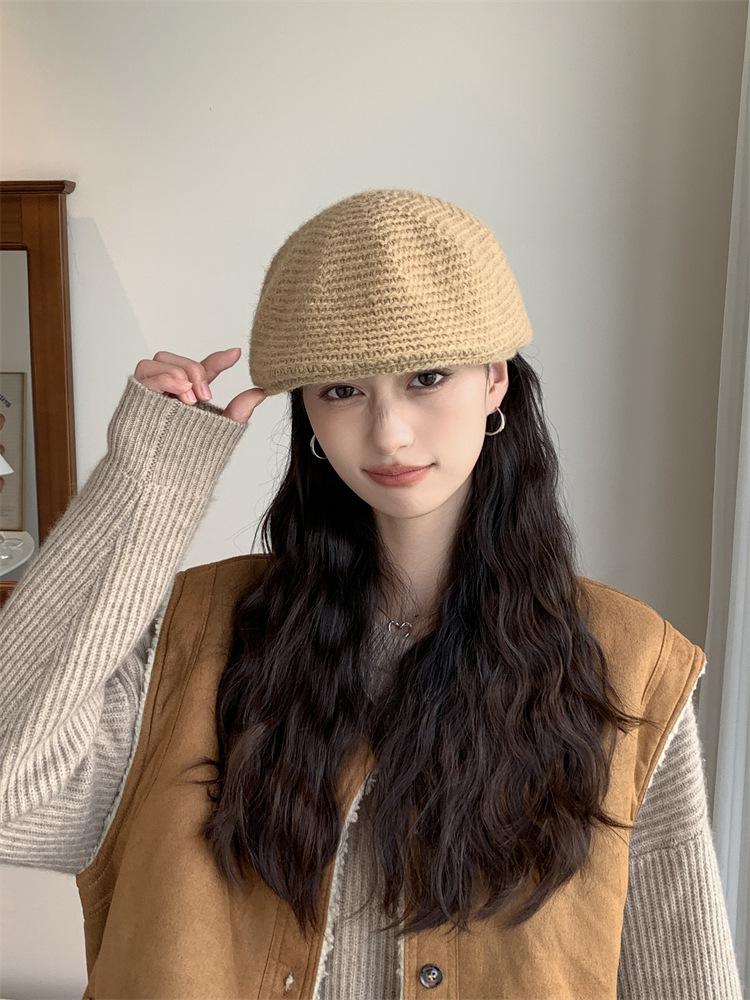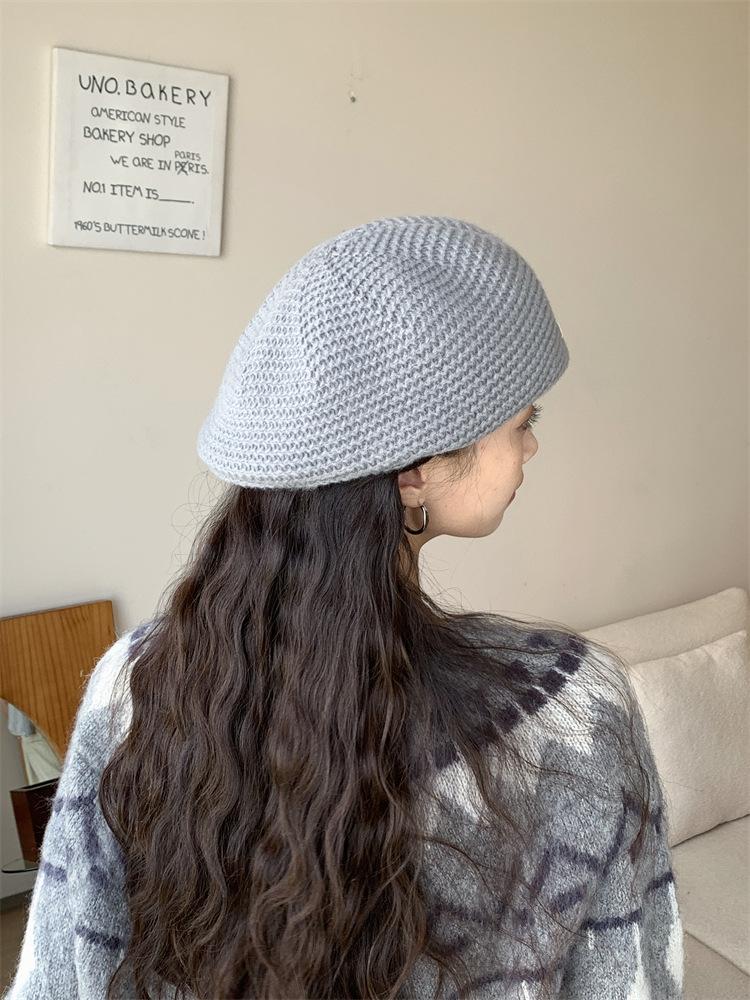 Nueva Boina 2024 Otoño e Invierno Combinable Muestra el Rostro Pequeño Sombrero de Pintor Tejido Hueco Transpirable Uso Inverso Sombrero Hacia Adelante para Mujeres