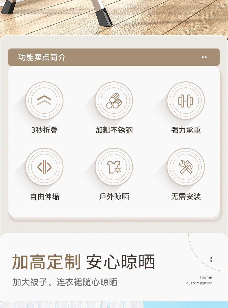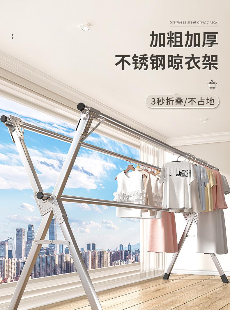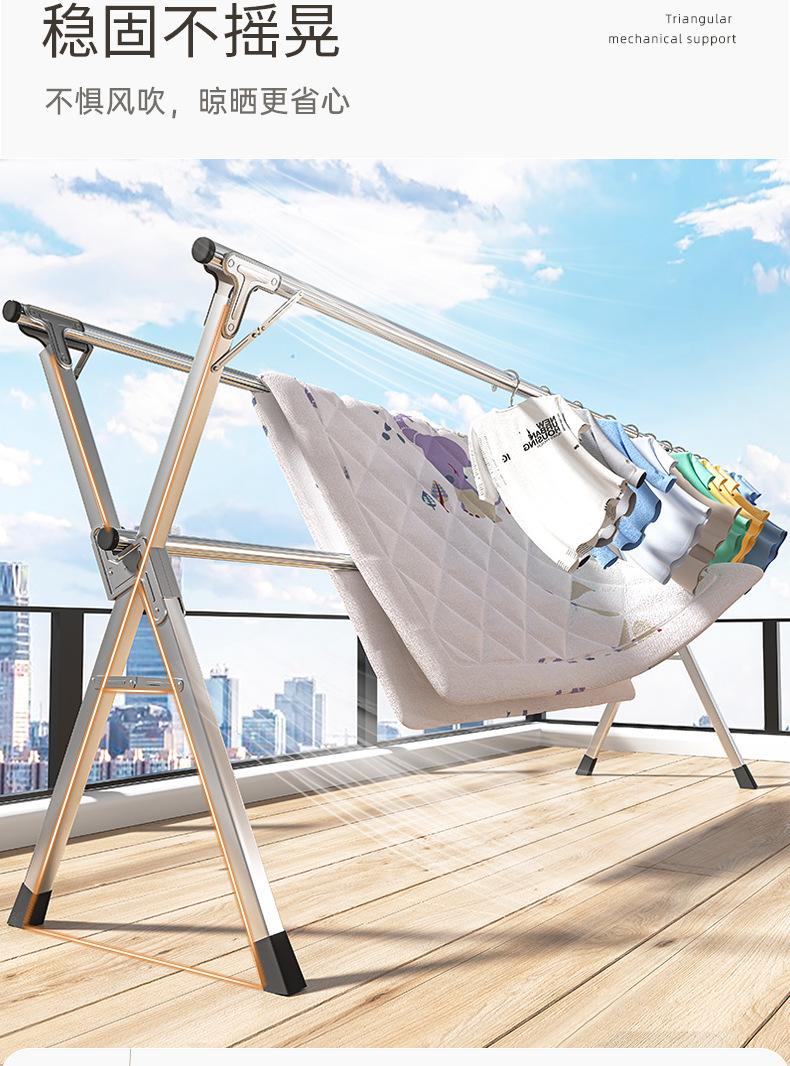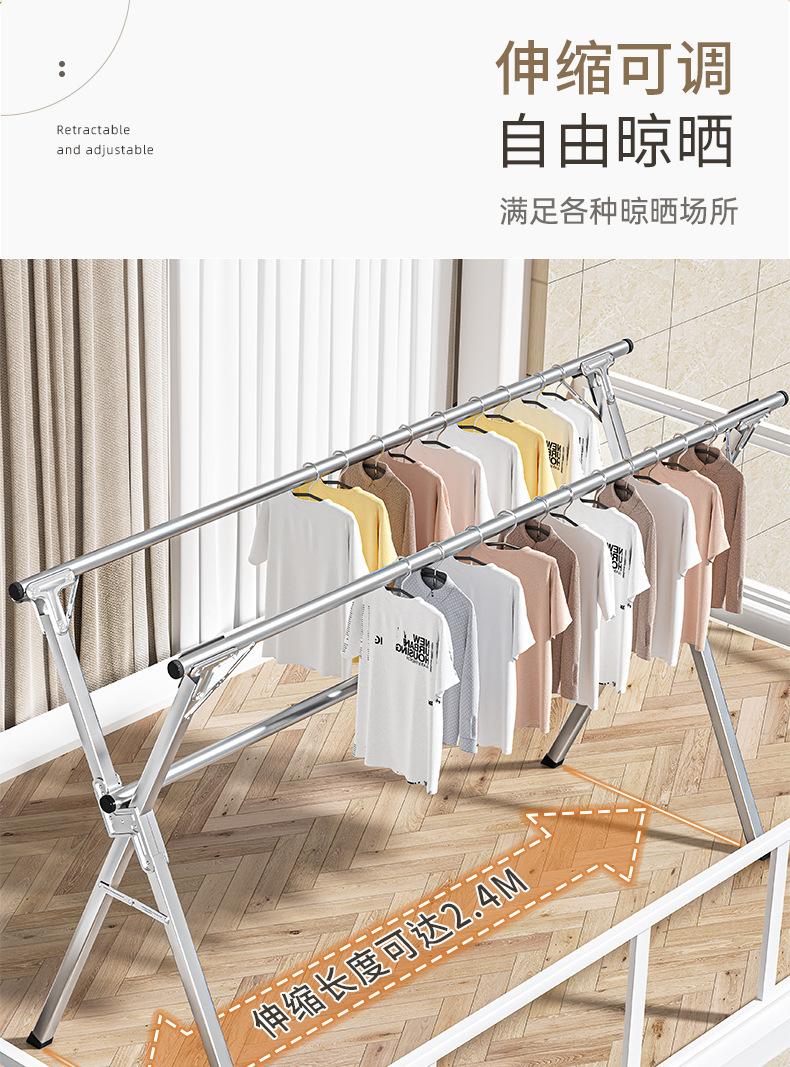 Tendedero plegable de acero inoxidable para piso, interior y exterior, balcón, dormitorio, tendedero doméstico, barra para colgar ropa para secar edredón, telescópico