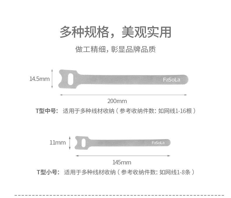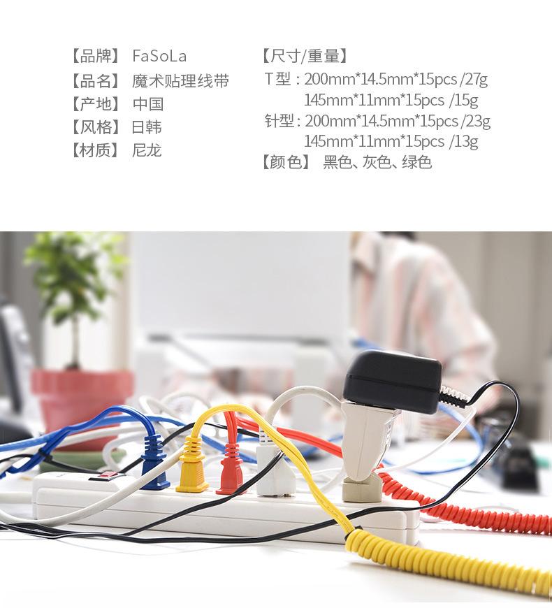 Cinta mágica para gestión de cables (forma de T, paquete de 15) tamaño grande