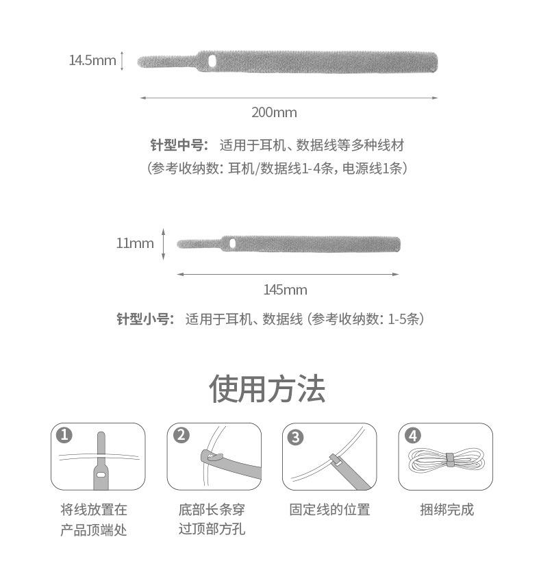 Cinta mágica para gestión de cables (tipo pin, 15 unidades), tamaño pequeño
