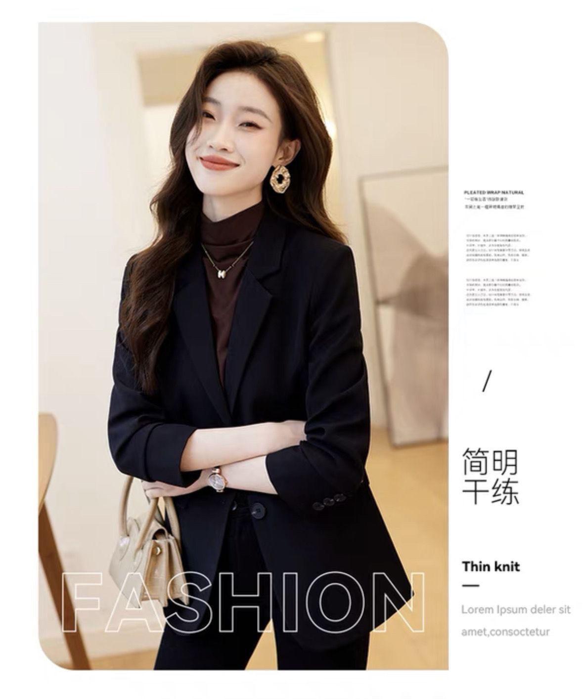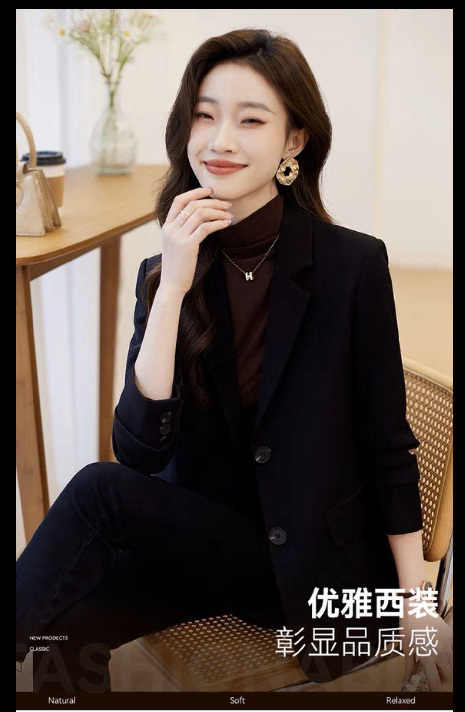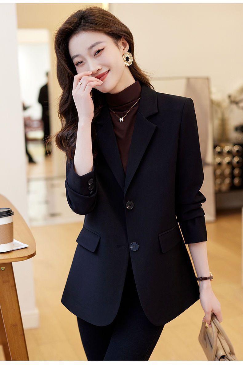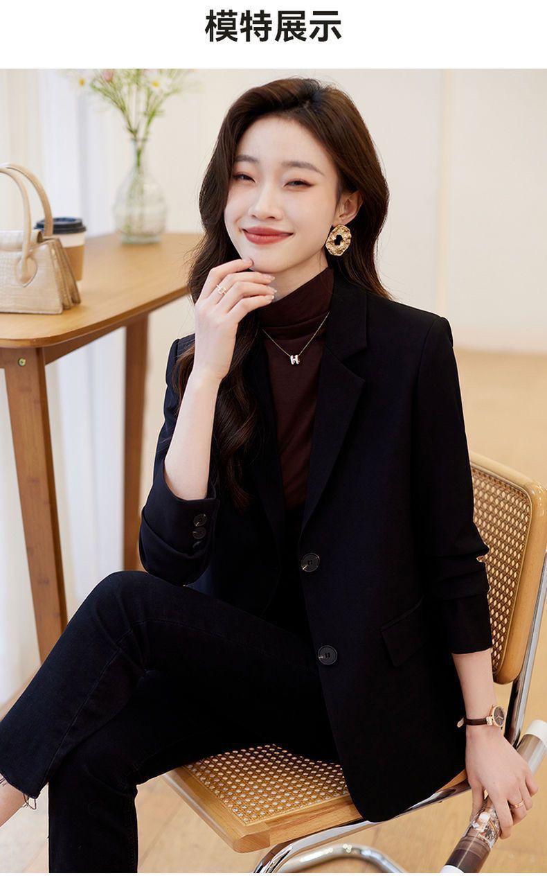 Blazer Negro Mujer 2024 Primavera y Otoño Nuevo Temperamento Casual Adelgazante High-End Estilo Urbano Abertura Traje Pequeño
