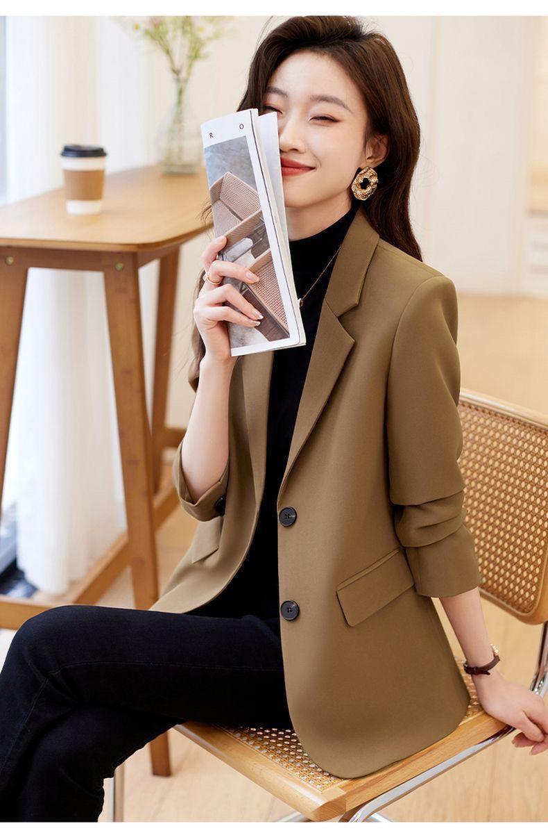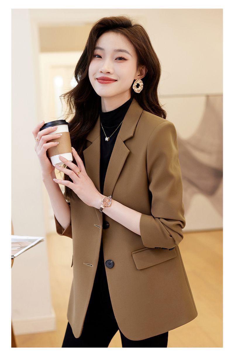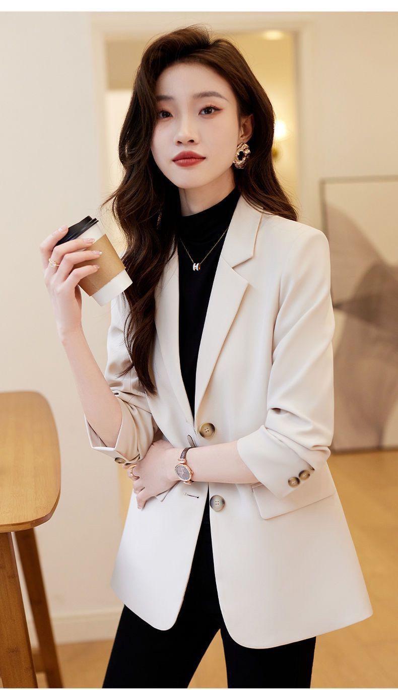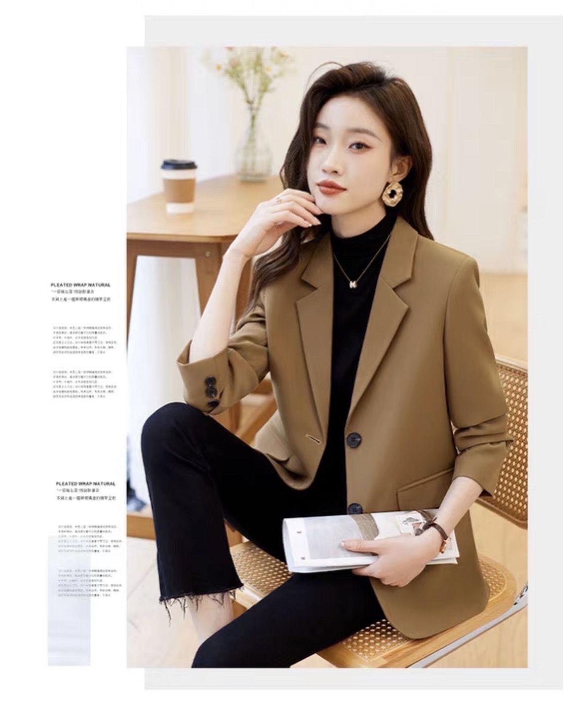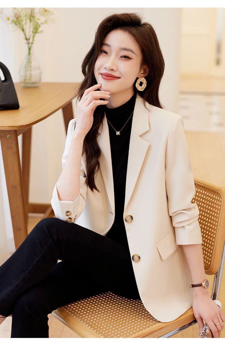 Blazer Negro Mujer 2024 Primavera y Otoño Nuevo Temperamento Casual Adelgazante High-End Estilo Urbano Abertura Traje Pequeño
