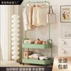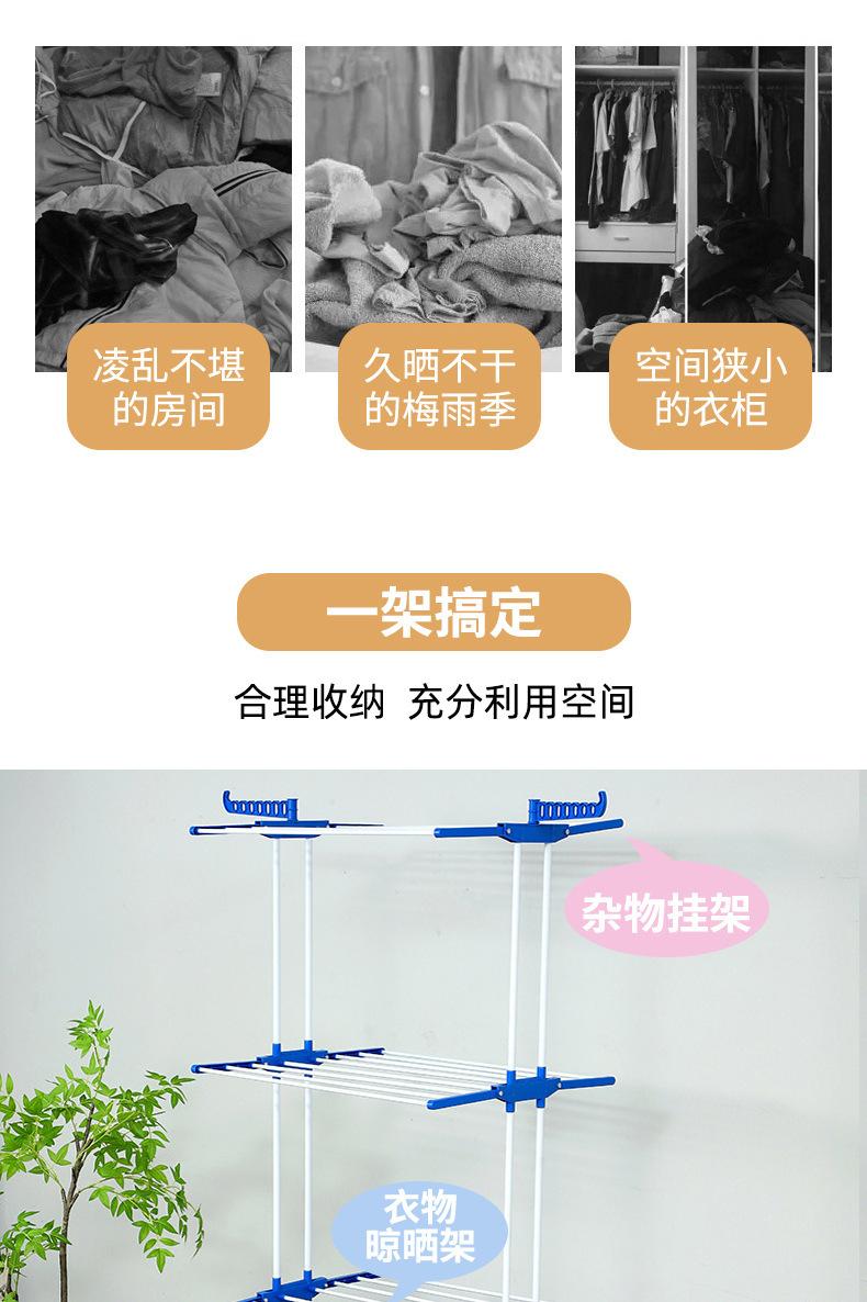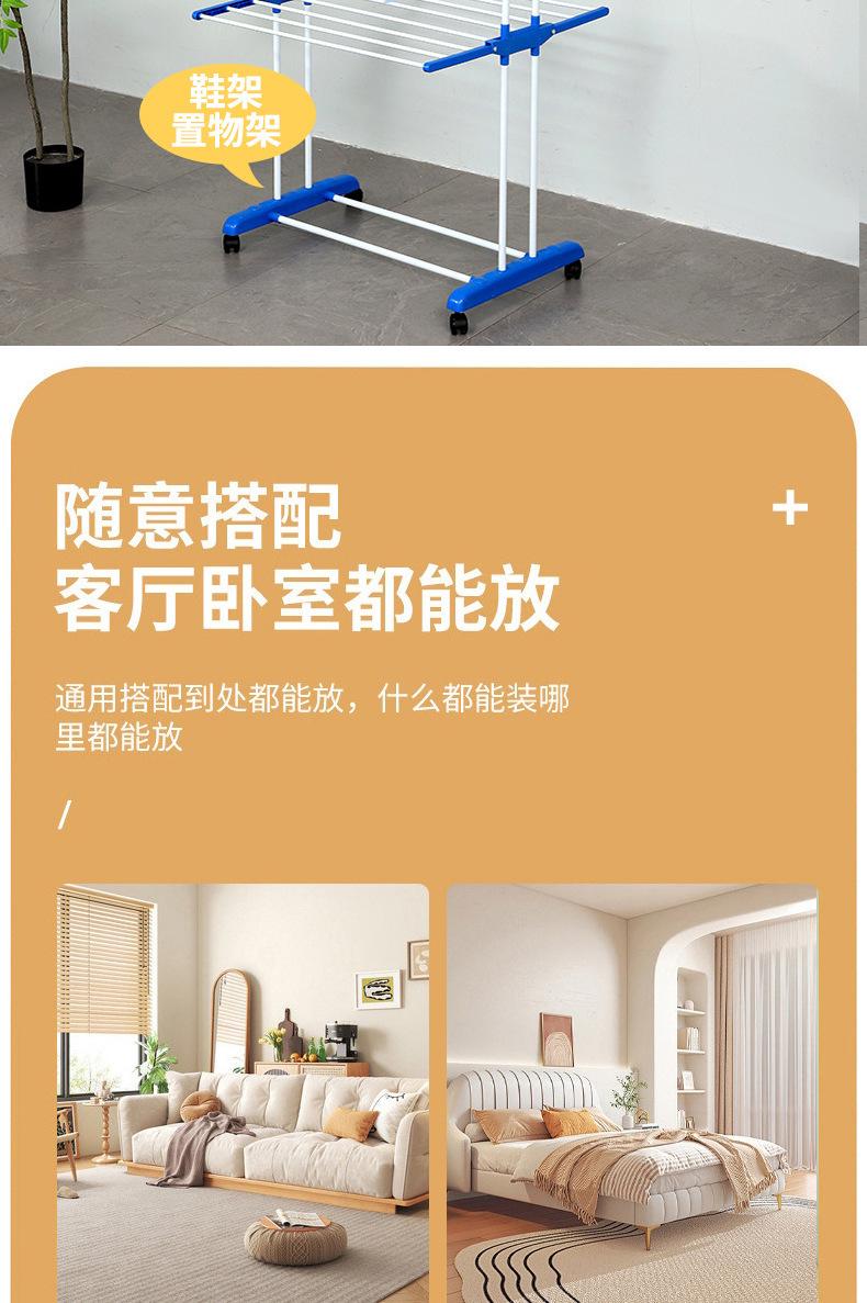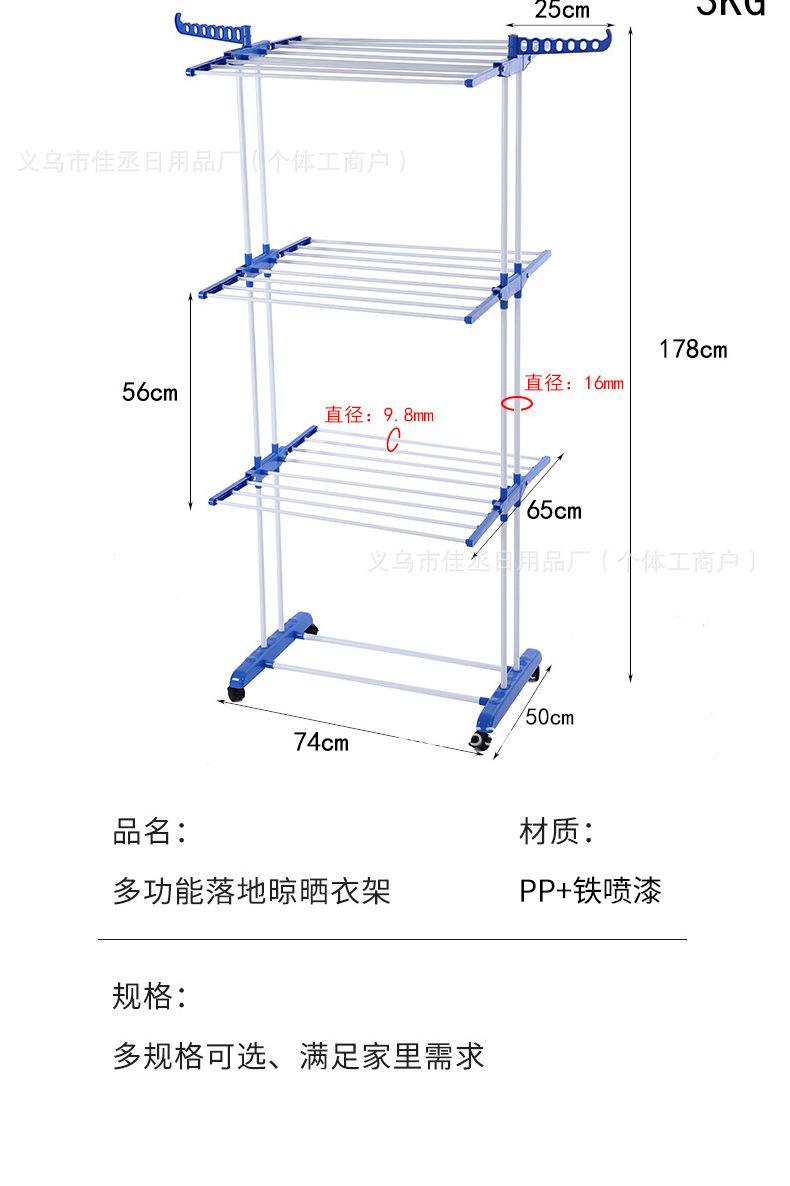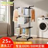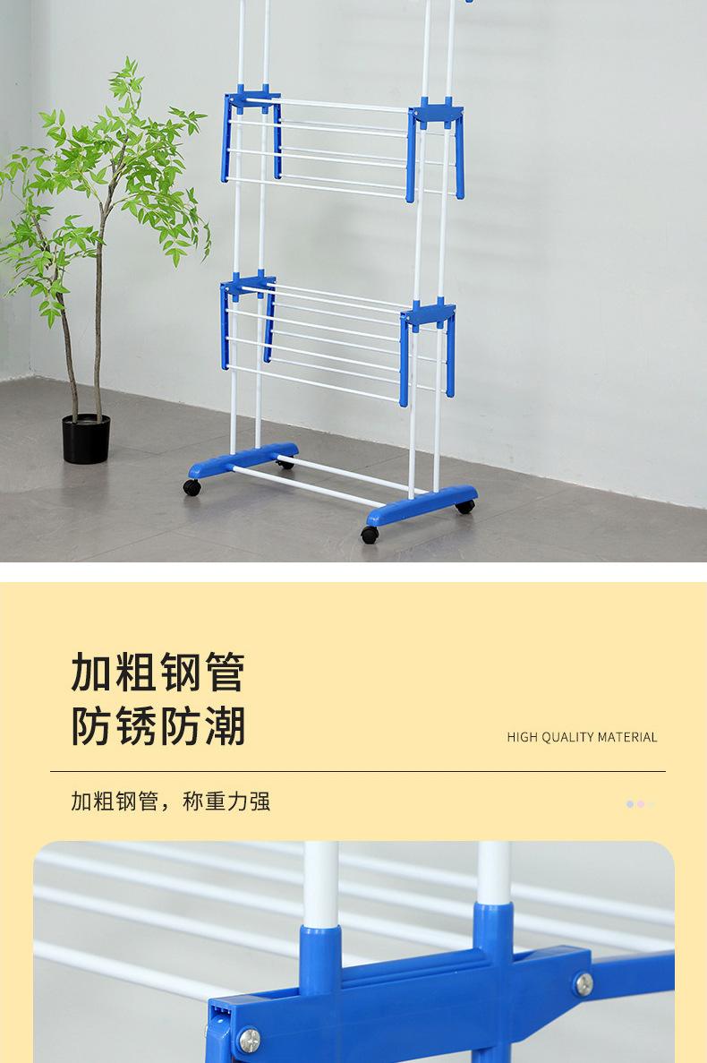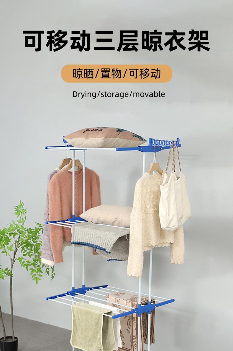 Estante de almacenamiento móvil de doble poste para interiores, de pie, plegable de tres capas, tendedero de pie, toallero multifuncional