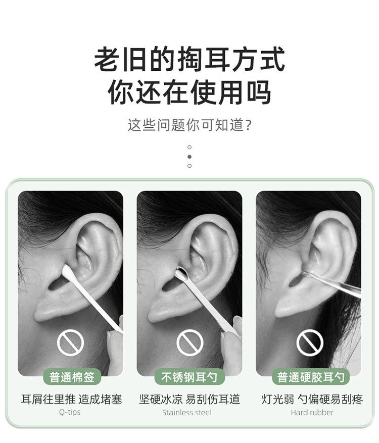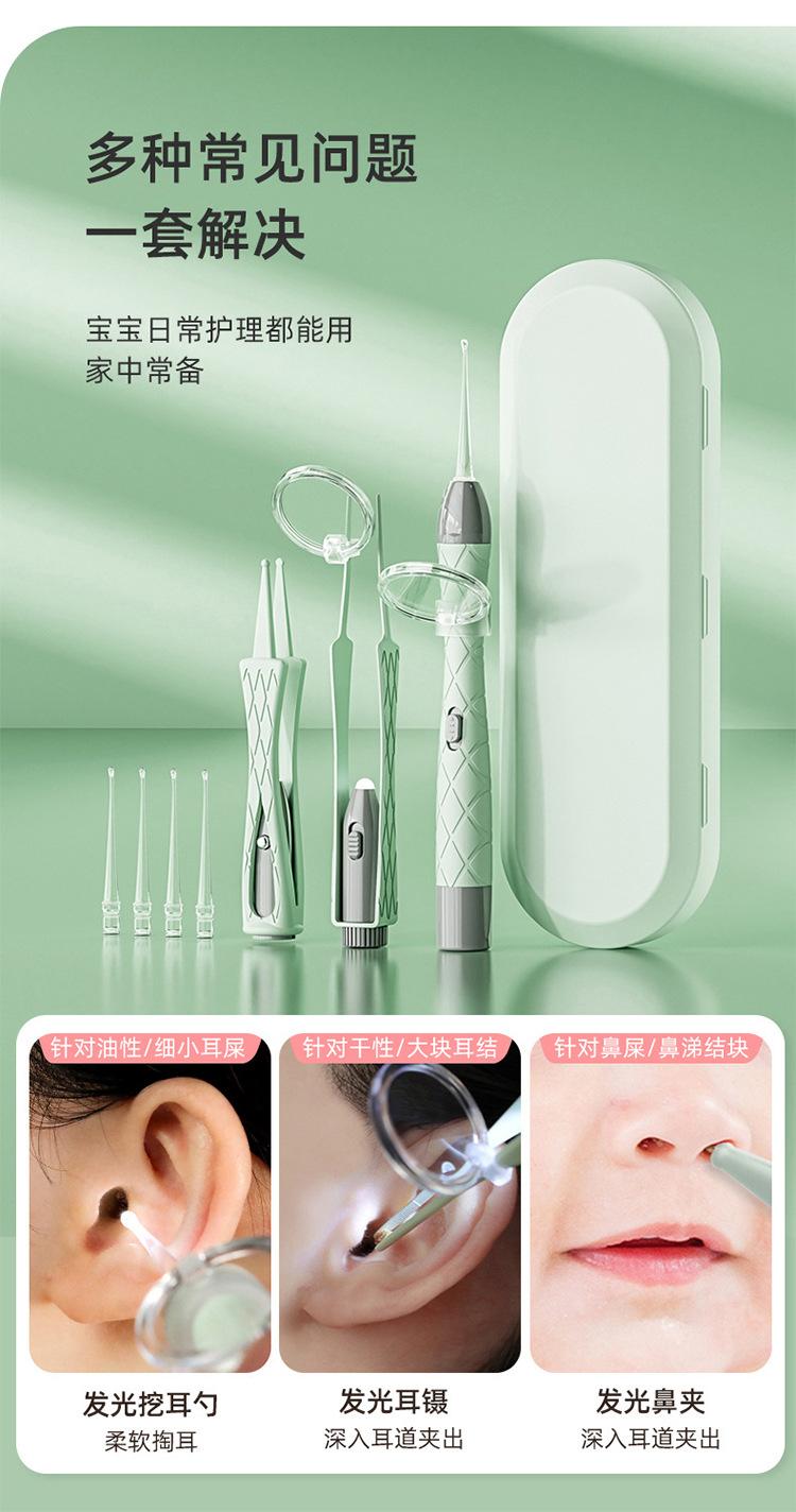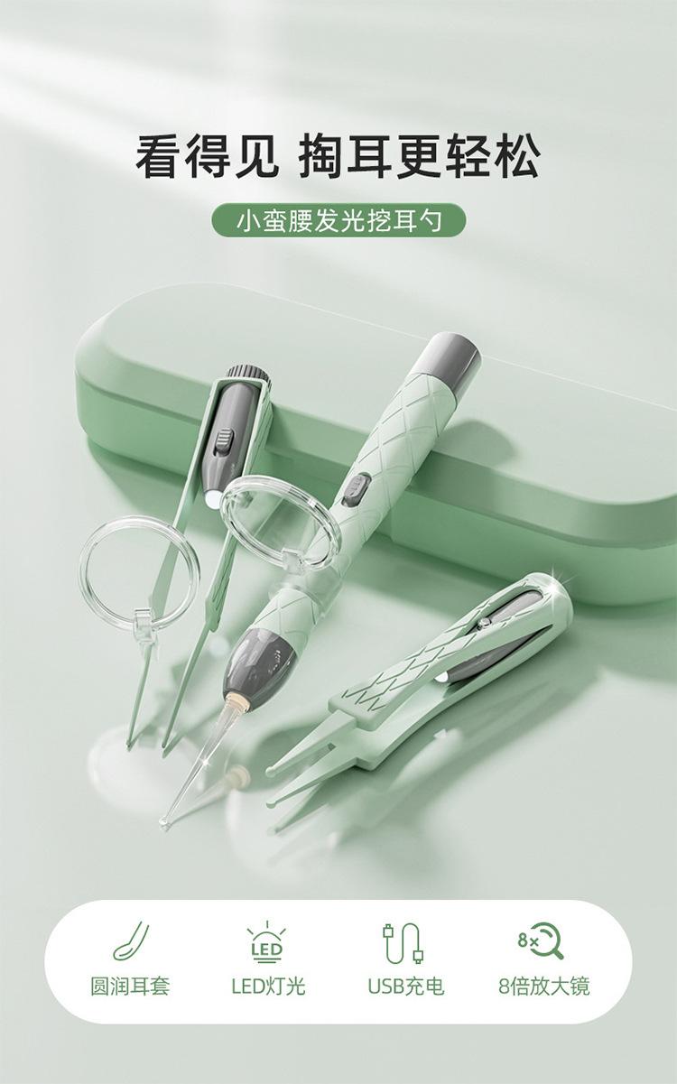 Herramienta Limpiadora de Oídos Silicona Palillo de Oídos Luminoso con Luz Cabeza de Cuchara Suave Bebé Niños Especial Limpieza de Oídos Seguro Visual