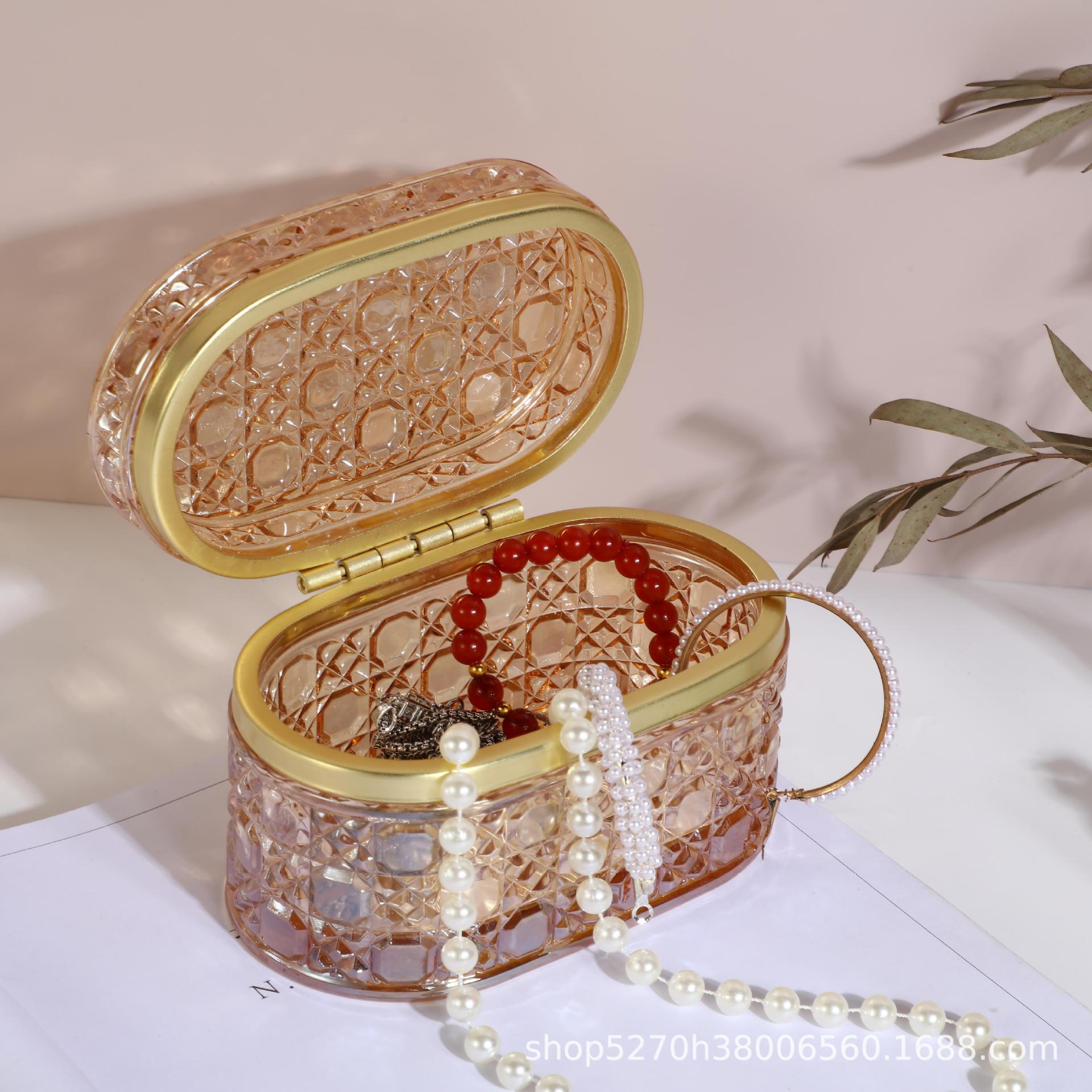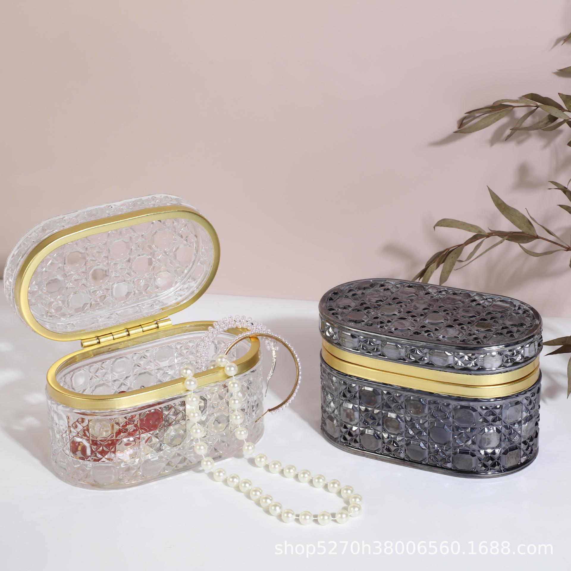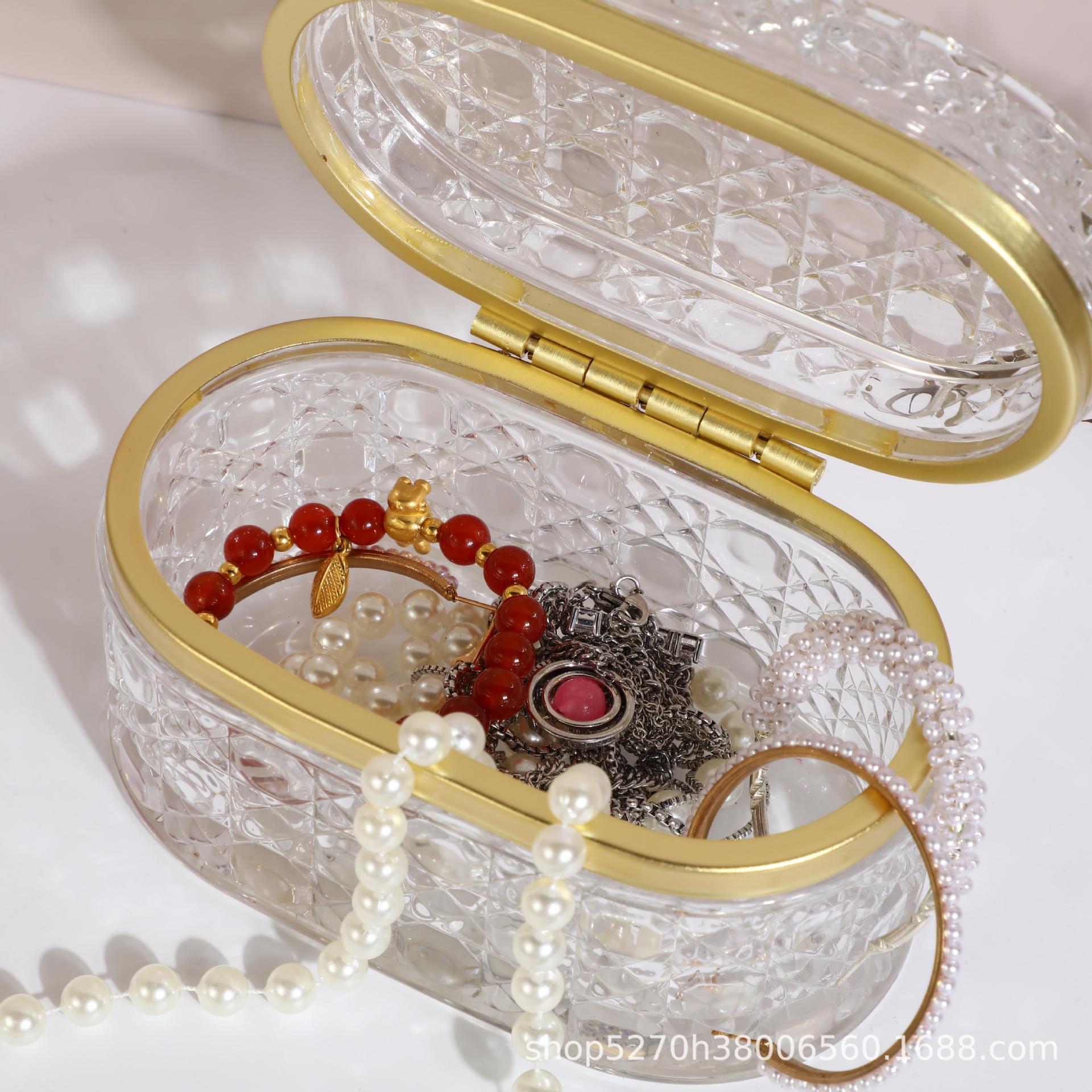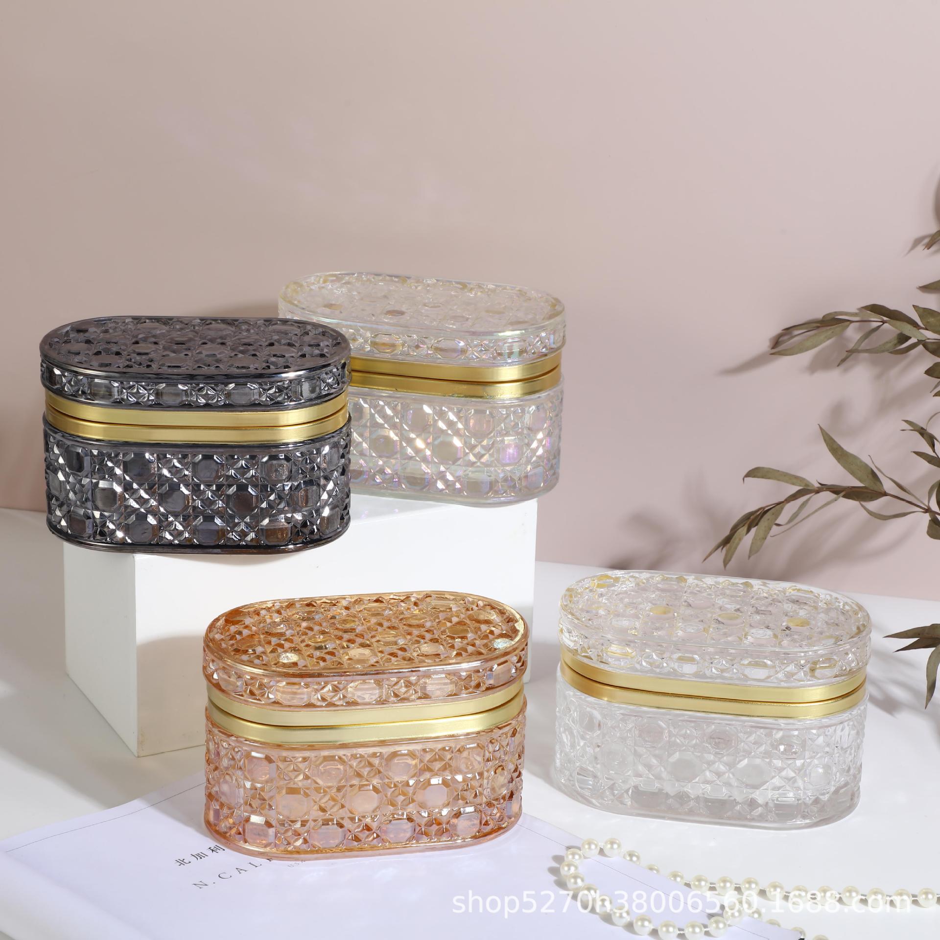 Caja de Almacenamiento de Joyas de Vidrio Moderno Simple Transfronterizo Adornos de Escritorio con Tapa Caja de Exhibición de Almacenamiento a Prueba de Polvo Transparente Repujado