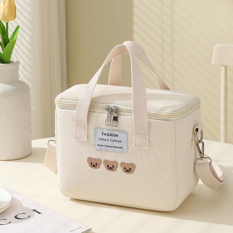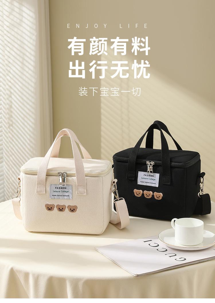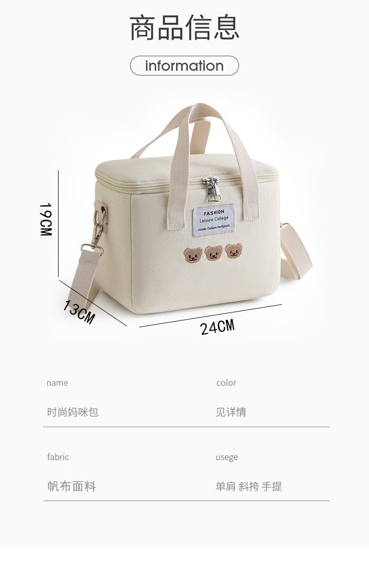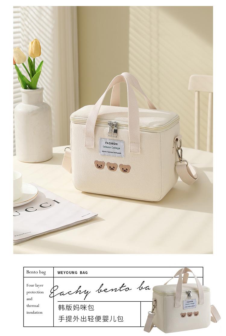 Bolso de Mano Pequeño Estilo Coreano Bolso de Mamá Bolsa Aislada Lindo Oso Organizador de Biberones y Pañales Un Hombro Cruzado Bolso de Mamá