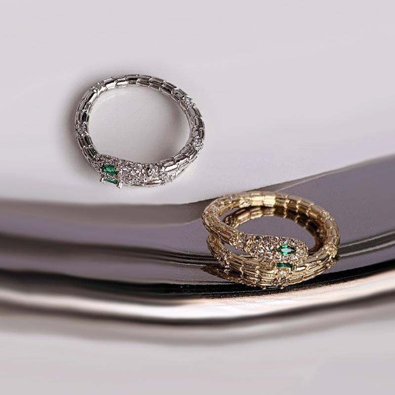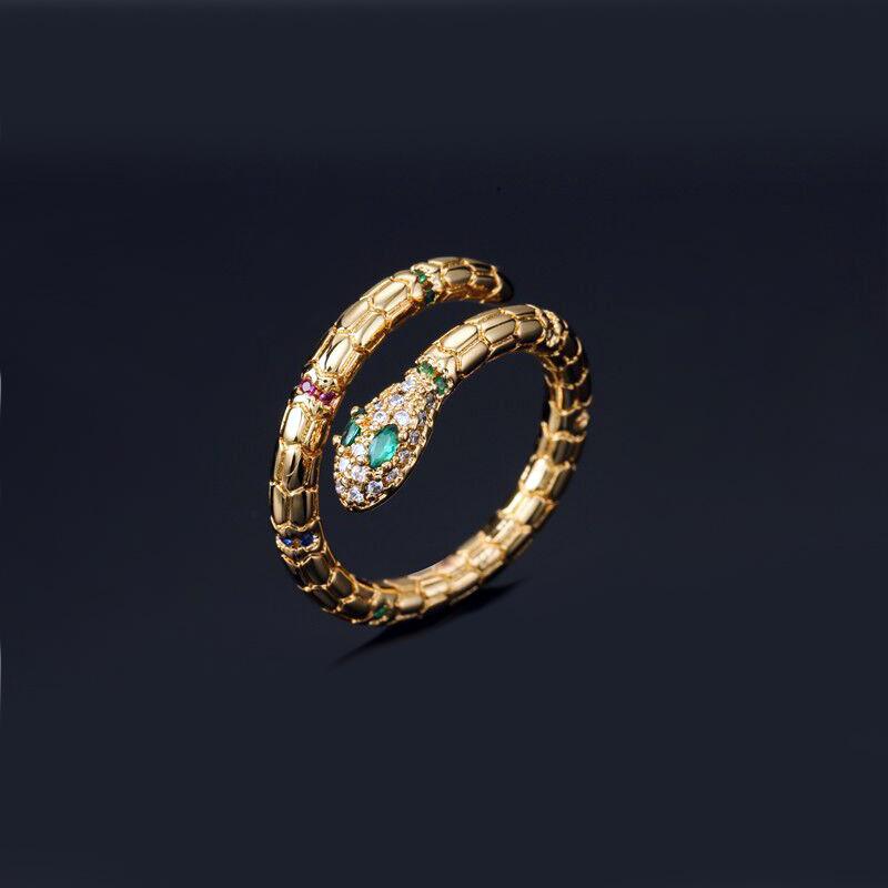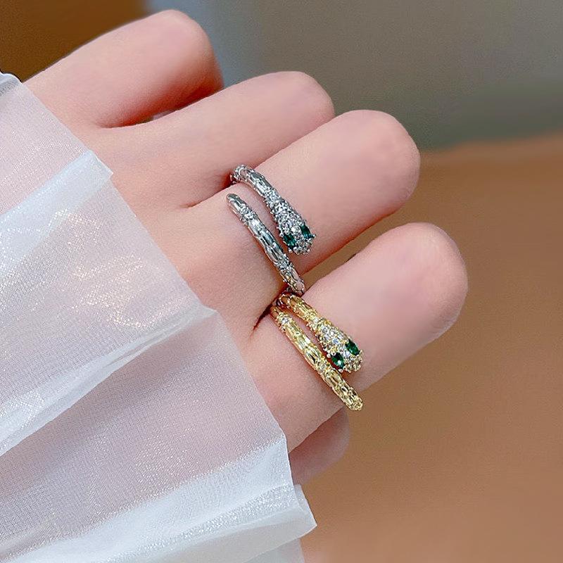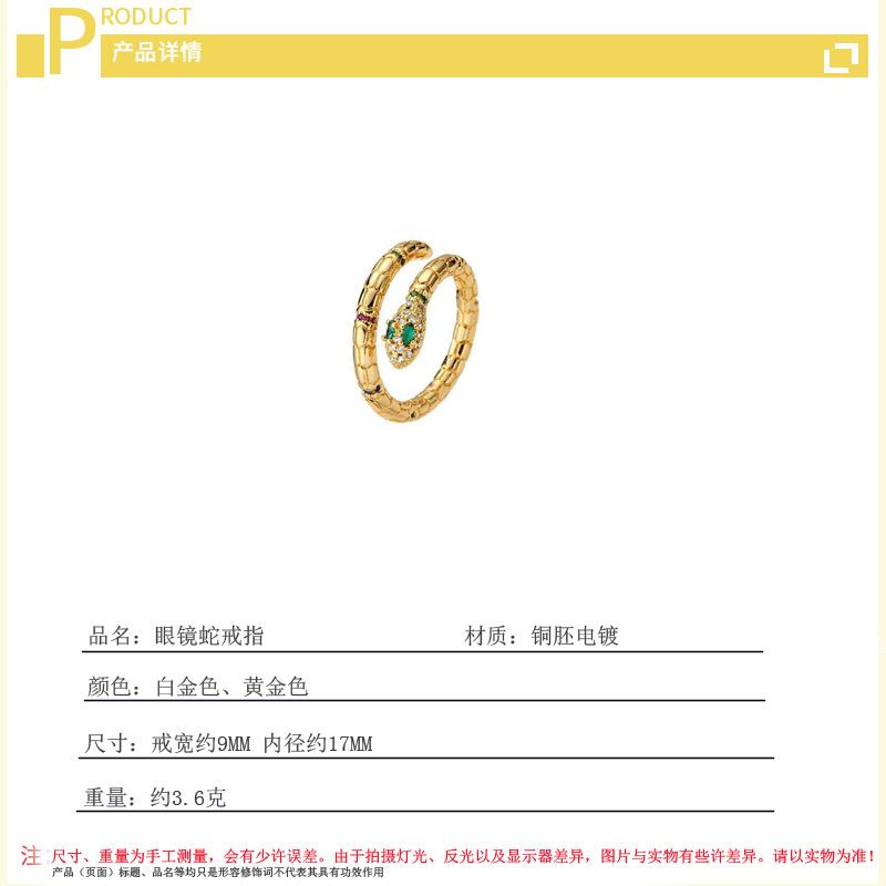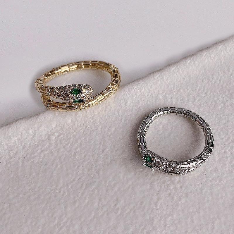 Anillo de cobra de personalidad creativa europeo y americano ins red rojo diamante circón en forma de serpiente abierto anillo de comida suministro de comercio exterior