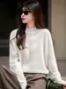2025 Otoño/Invierno Nuevo Suéter Tejido de Una Pieza de Cuello Medio Alto Manga Larga Top Cepillado Suéter de Lana Versátil Sin Costuras para Mujer