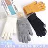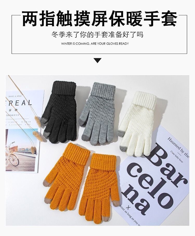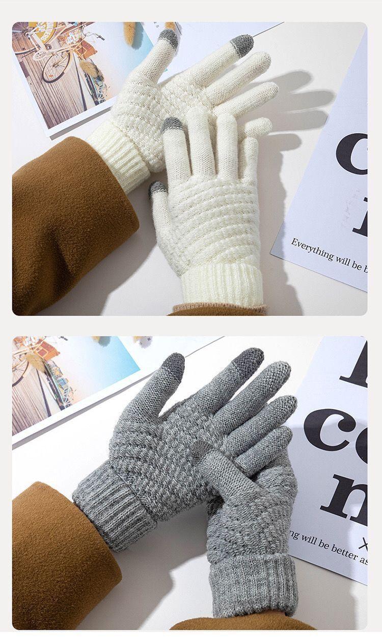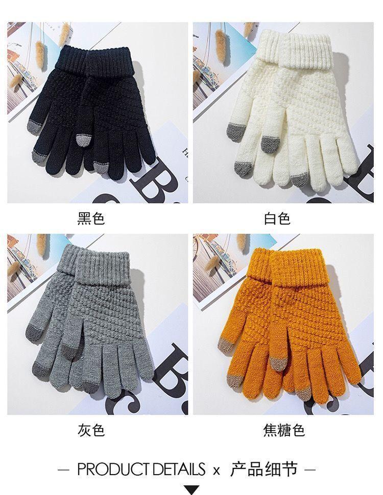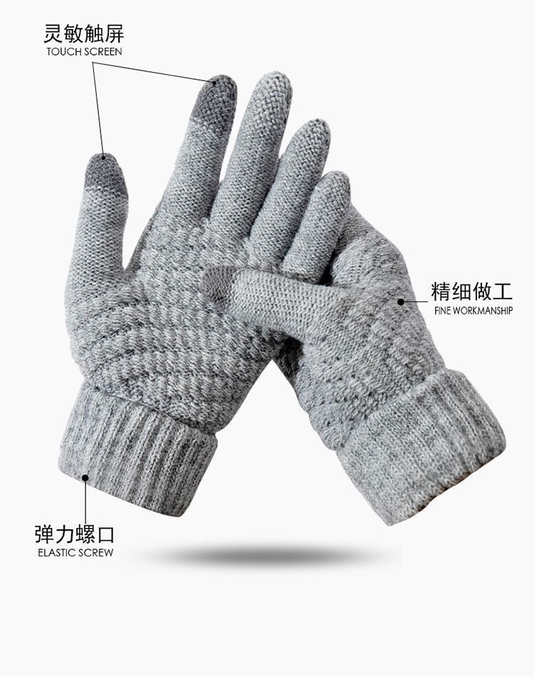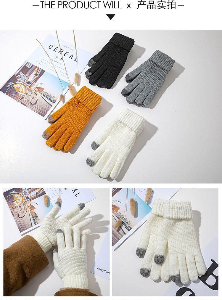 Guantes de Punto Jacquard Cálidos de Moda para Otoño e Invierno con Pantalla Táctil, Punto Piña Invierno, Punto Reverso, Color Sólido, Guantes Cálidos