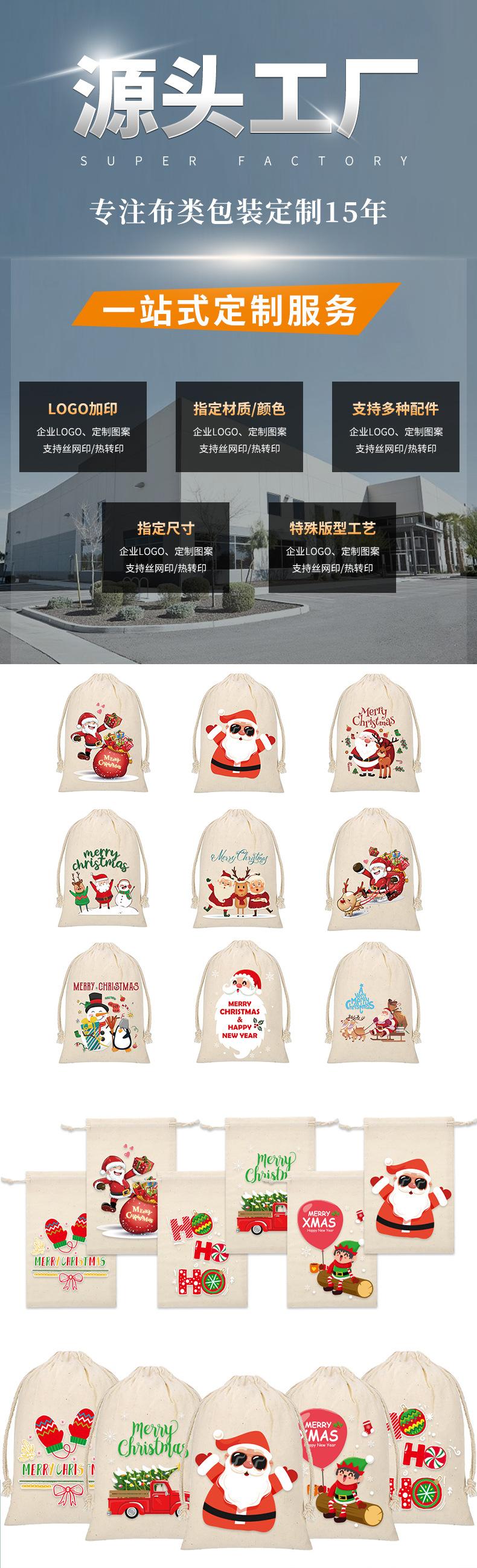 Bolsa de Algodón con Cordón Transfronteriza Nueva Bolsa de Regalo de Dulces de Navidad Bolsa de Tela con Cordón de Dibujos Animados Bolsa con Cordón