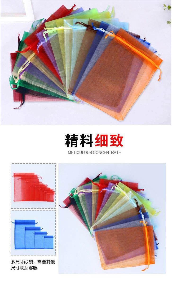Bolsa de Organza de Color Sólido Embalaje con Cordón Bolsa de Malla Transparente Multi-Tamaño Bolsa de Muestra para Regalo Cordón Bolsa para Dulces de Boda