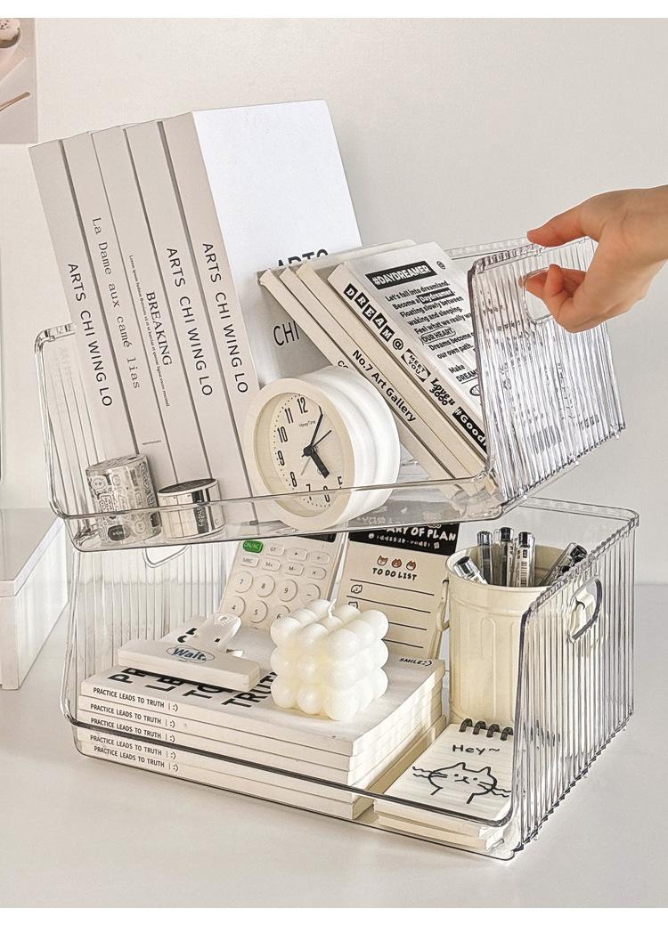 Organizador de Escritorio para Estudiante Papelería Oficina Estante de Almacenamiento de Cosméticos Acrílico Transparente Caja de Almacenamiento de Escritorio