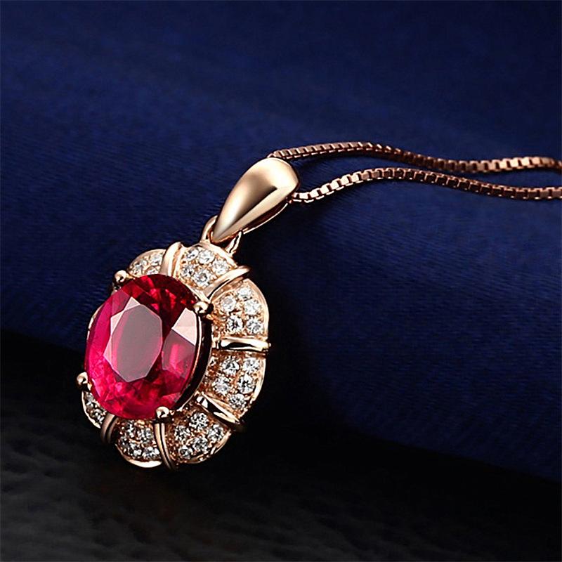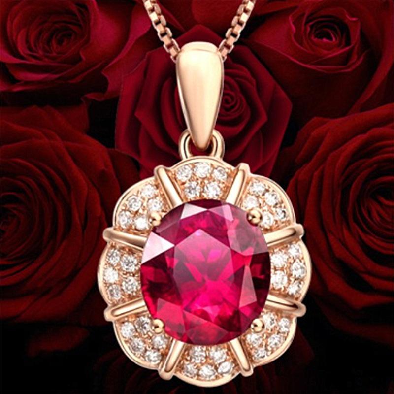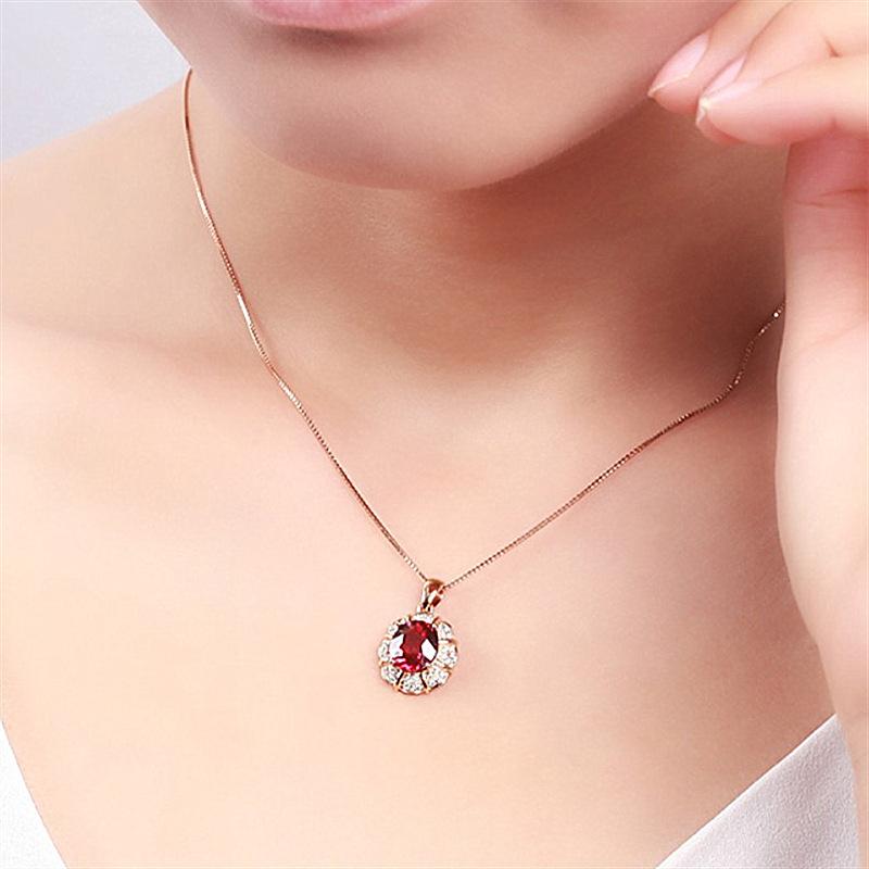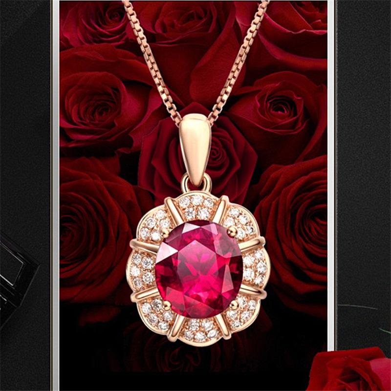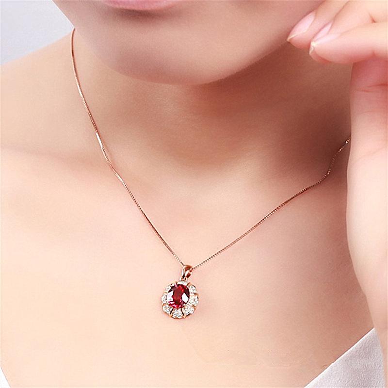 Colgante de rubí de estilo coreano, cadena de clavícula con forma de gota, colgante de pétalo, colgante de boda, collar sencillo de oro K