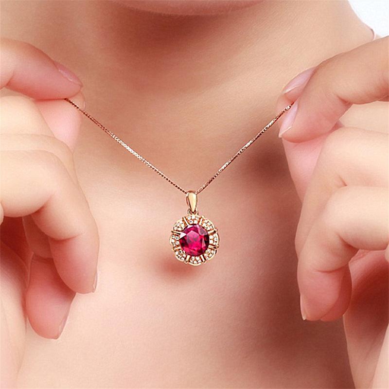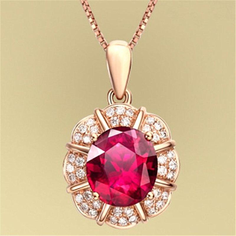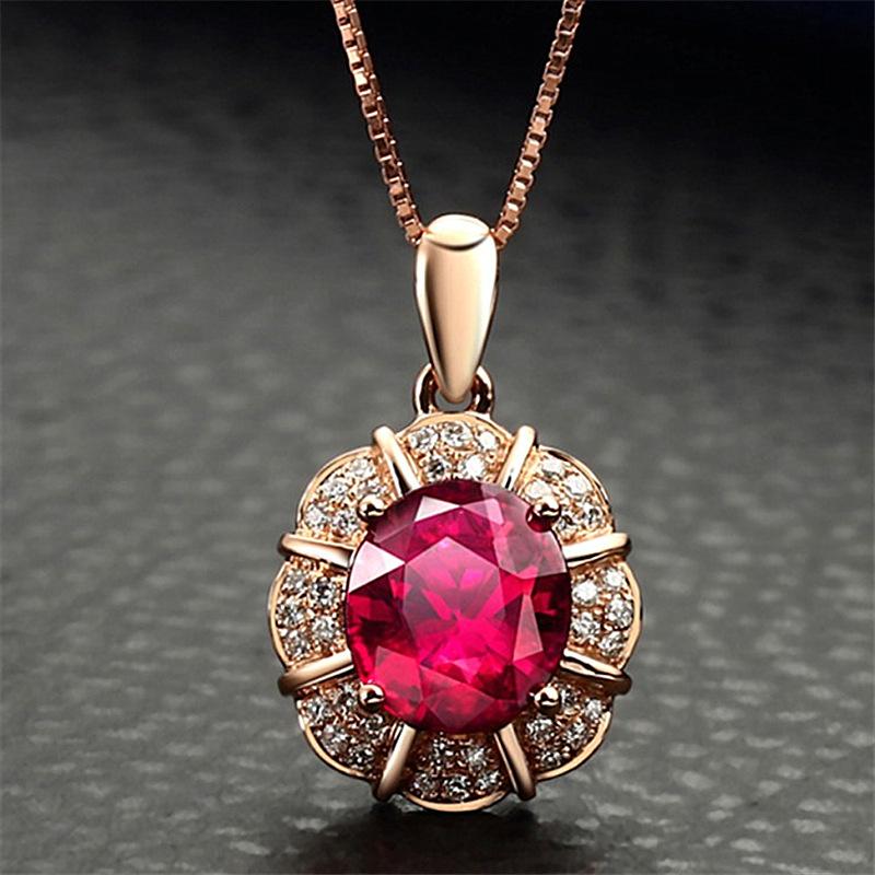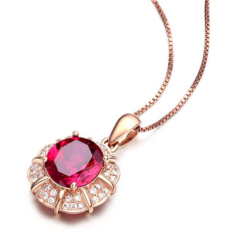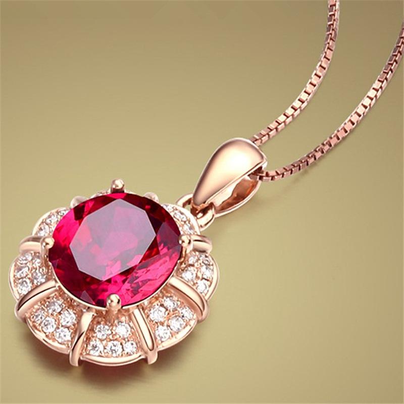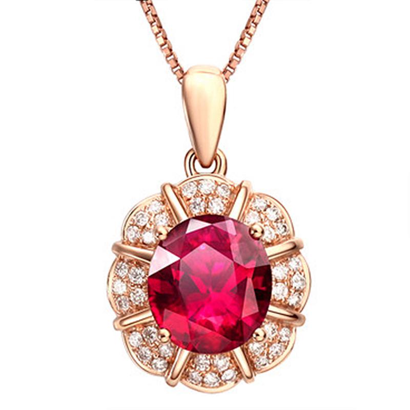 Colgante de rubí de estilo coreano, cadena de clavícula con forma de gota, colgante de pétalo, colgante de boda, collar sencillo de oro K