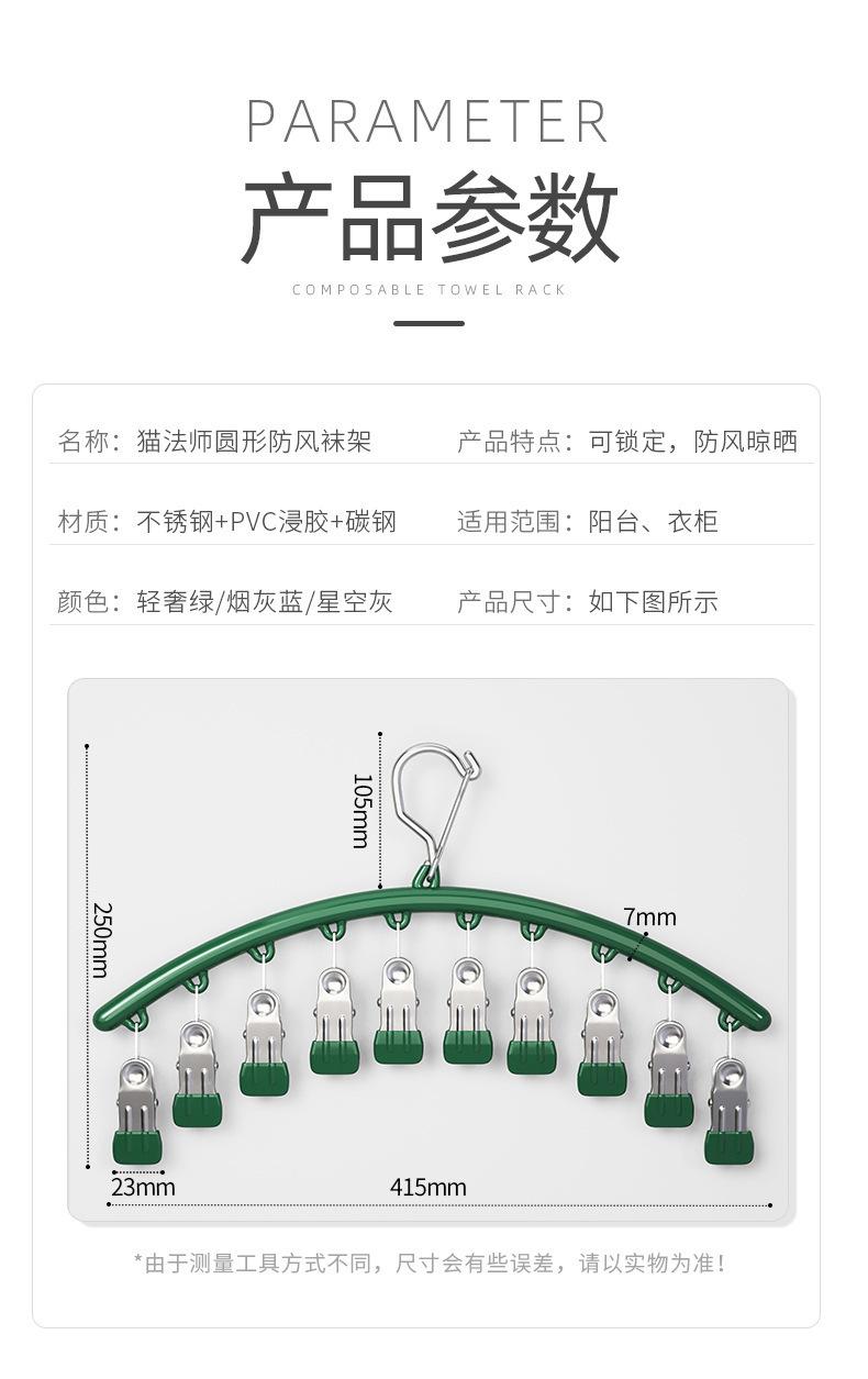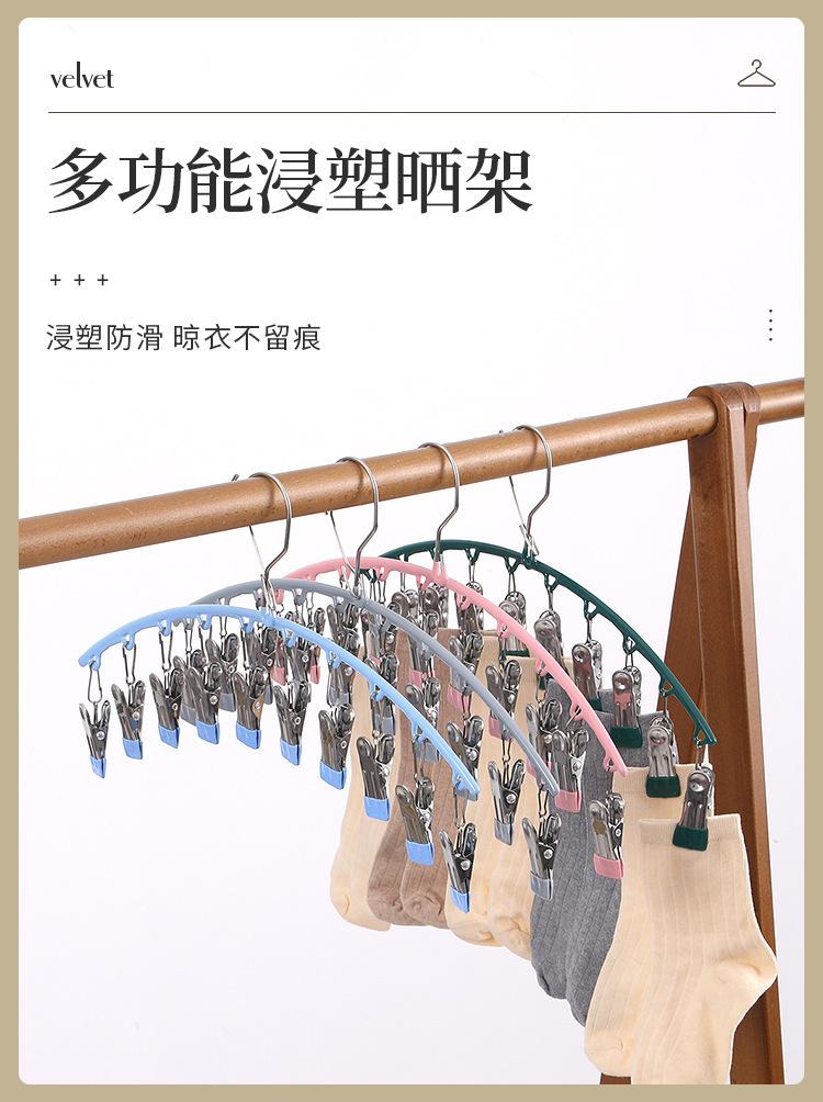 Tendedero de calcetines con 10 pinzas, tendedero multi-pinza para el hogar, multifuncional, a prueba de viento, para secar ropa interior sin marcas, artefacto de acero inoxidable para secar calcetines