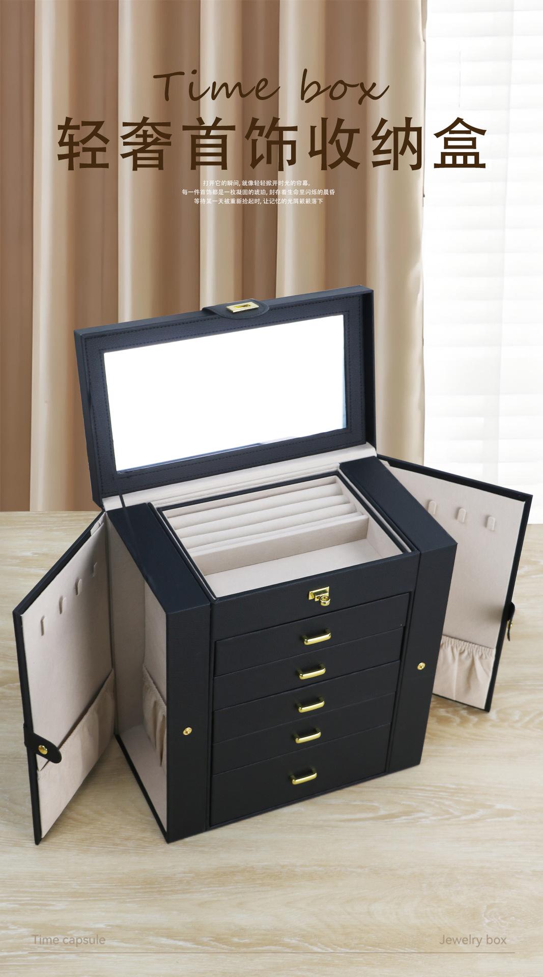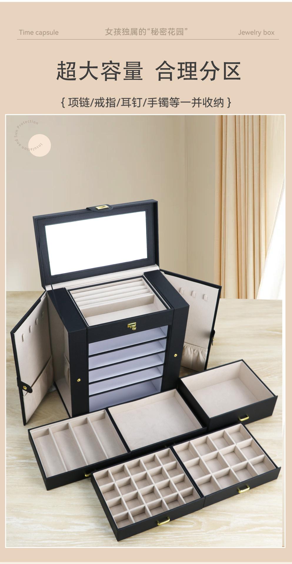 Caja de Almacenamiento de Joyas de Seis Capas de Gran Capacidad Multicapa Portátil Aretes Pendientes Anillos Caja de Joyería Caja de Almacenamiento de Collares