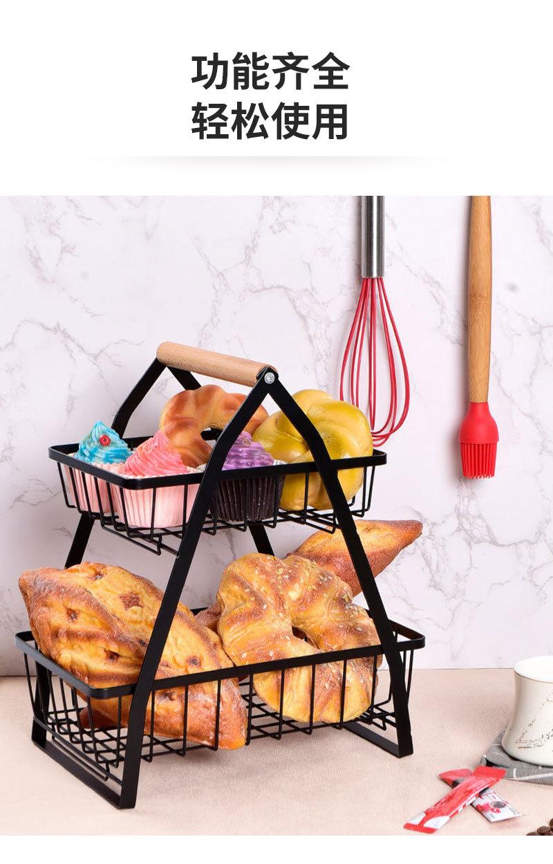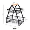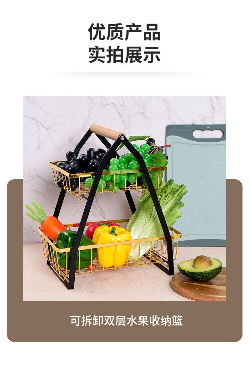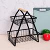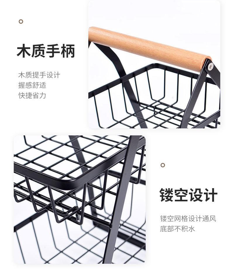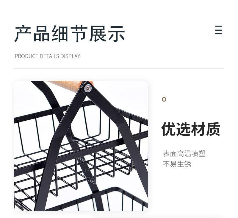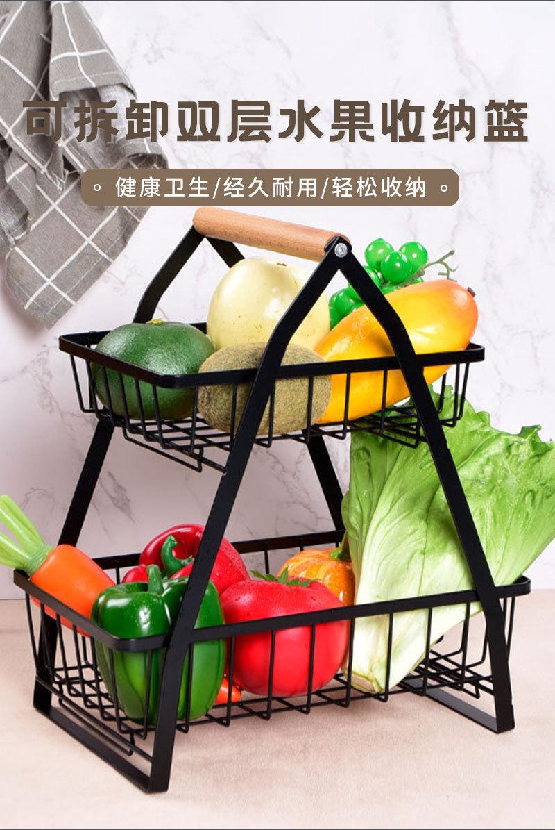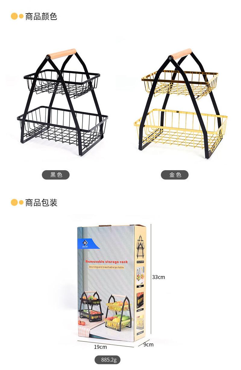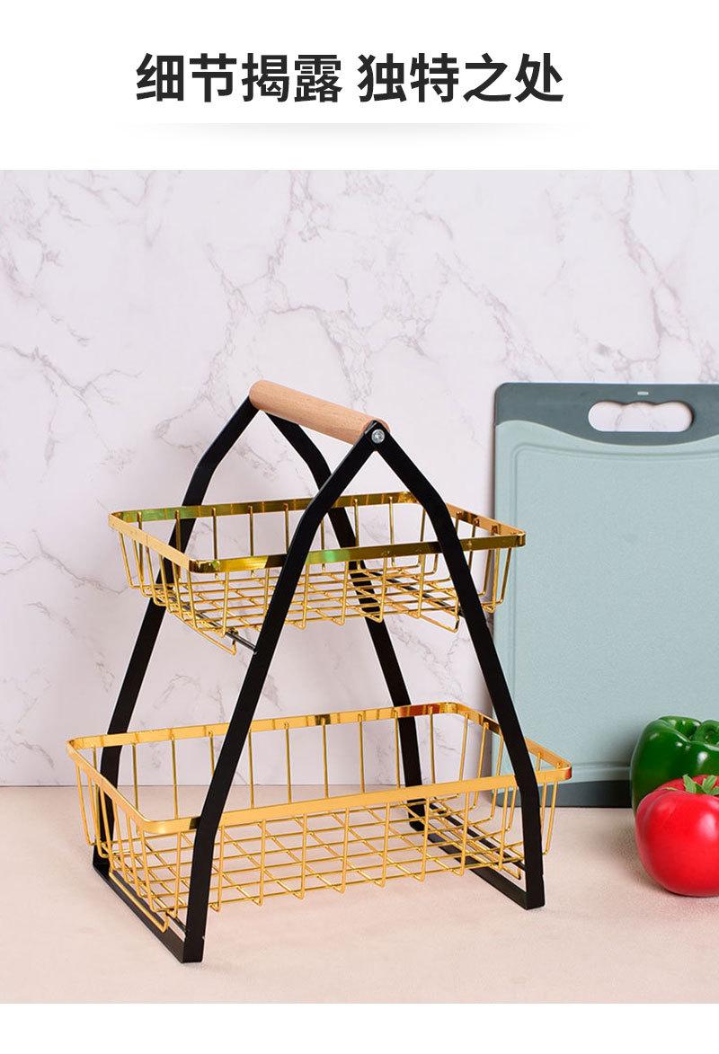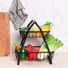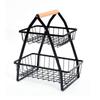 Cesta de Frutas Plegable de Hierro de Doble Capa Cesta Portátil Almacenamiento de Verduras para Cocina Doméstica Estante de Almacenamiento Azul