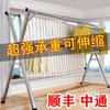 Tendedero Plegable para Ropa de Hogar, Barra para Secar Ropa de Doble Polo de Pie para Interior y Exterior, Barra Retráctil, Artefacto para Secar Edredones de Balcón