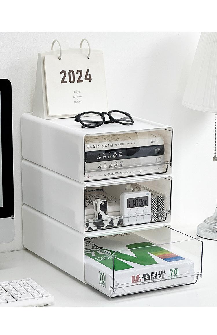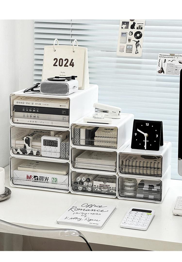 Caja de almacenamiento de archivos A4 de escritorio de oficina tipo cajón transparente gabinete de acabado de estación de trabajo caja de almacenamiento apilable gabinete de almacenamiento