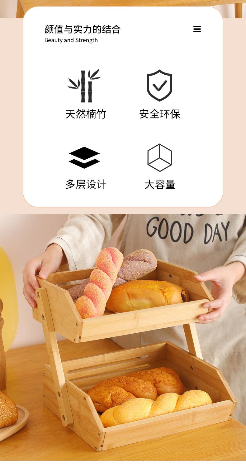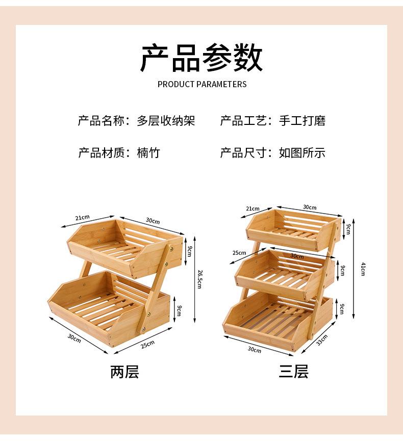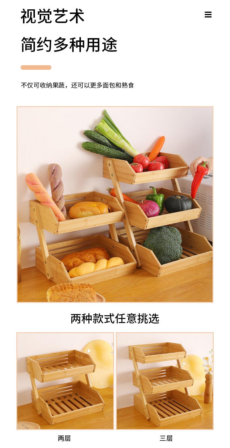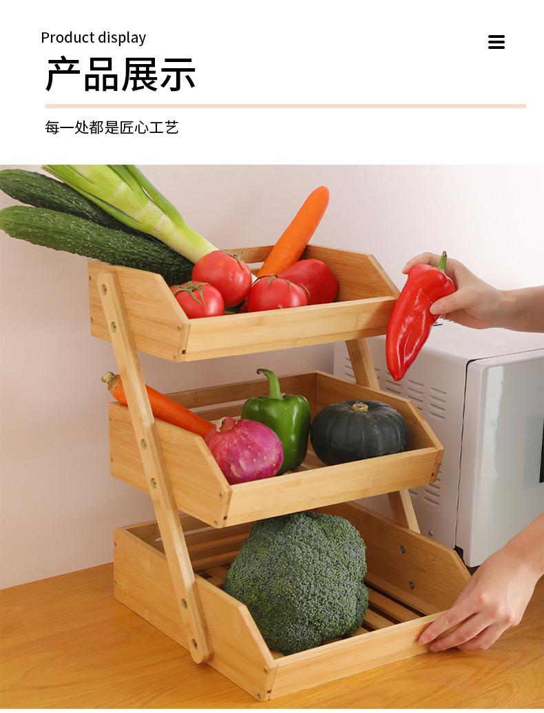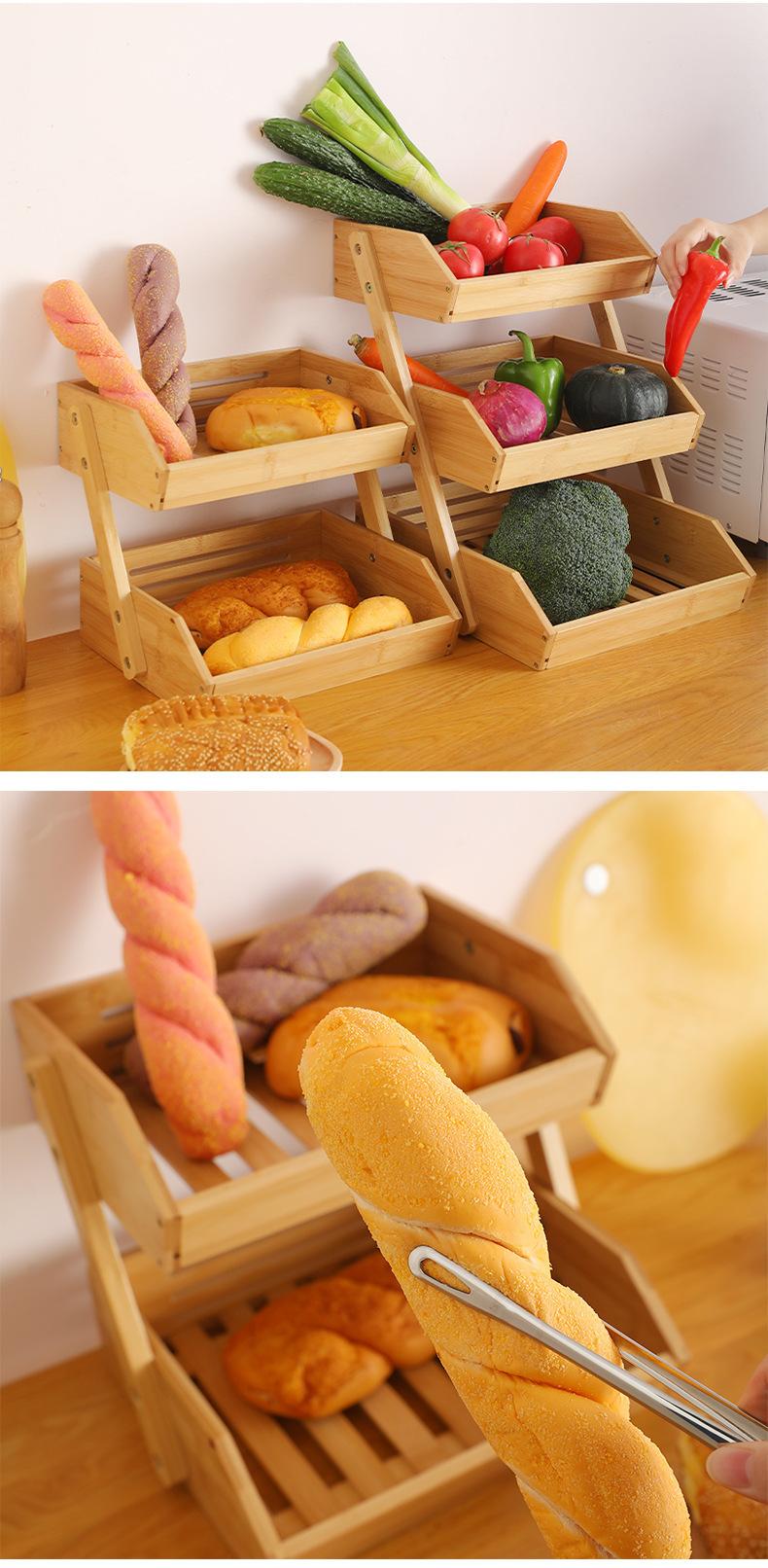 Cesta de Frutas de Bambú Cesta de Drenaje de Madera Plato de Frutas Ensamblado de Doble Capa Estante de Almacenamiento de Cocina de Tres Capas Cesta de Almacenamiento de Múltiples Capas