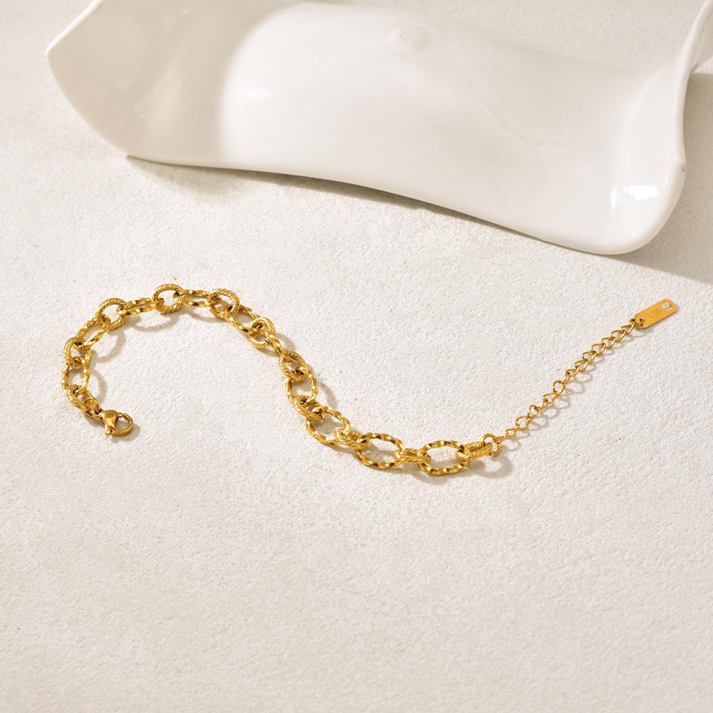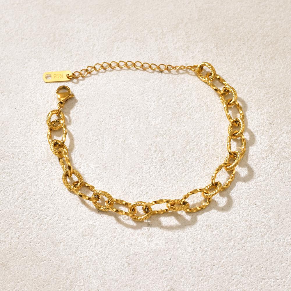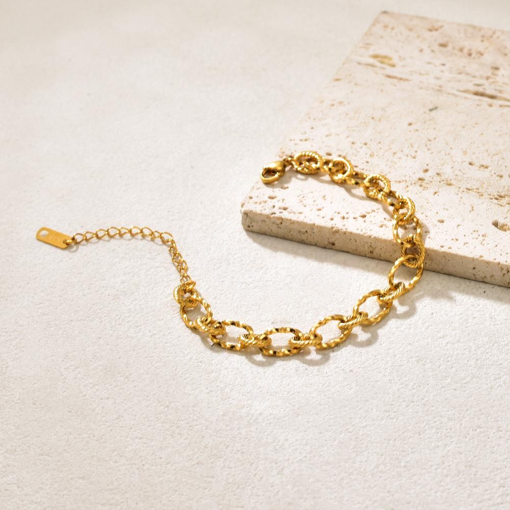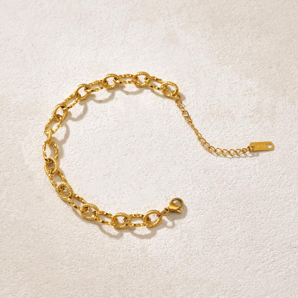 Material: acero de titanio + revestimiento al vacío en horno + oro de 18 quilates