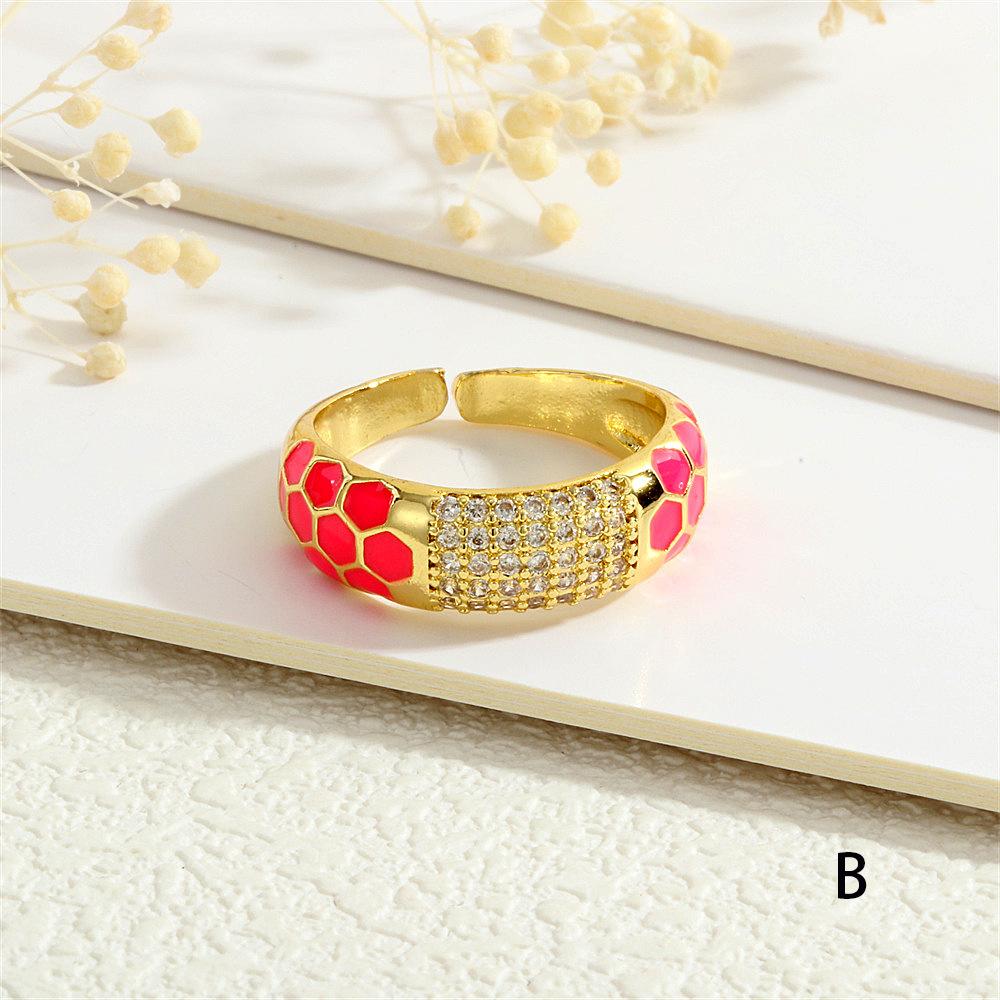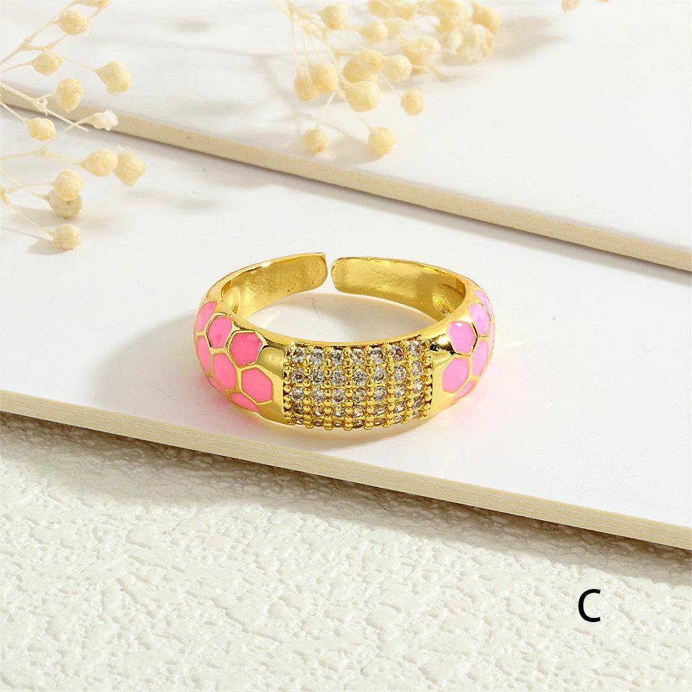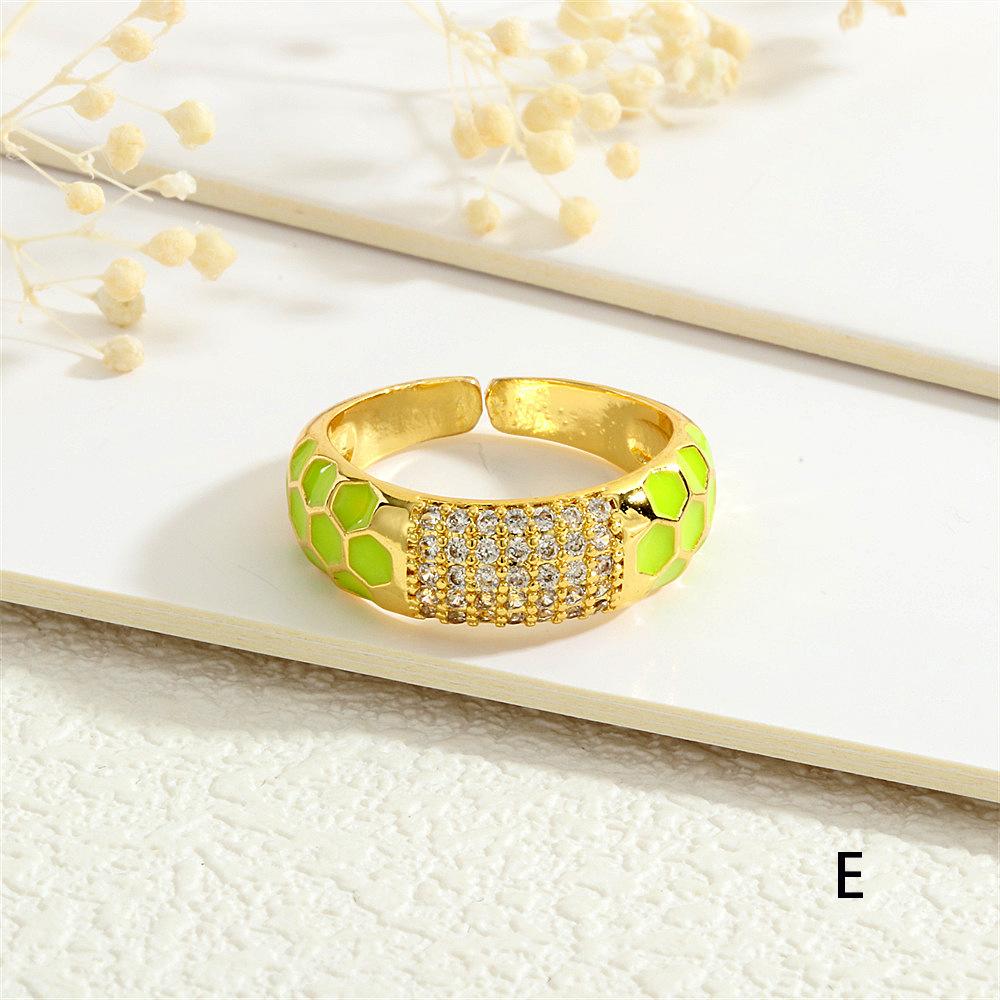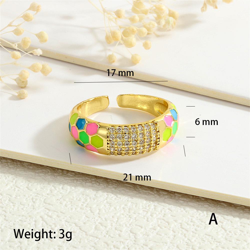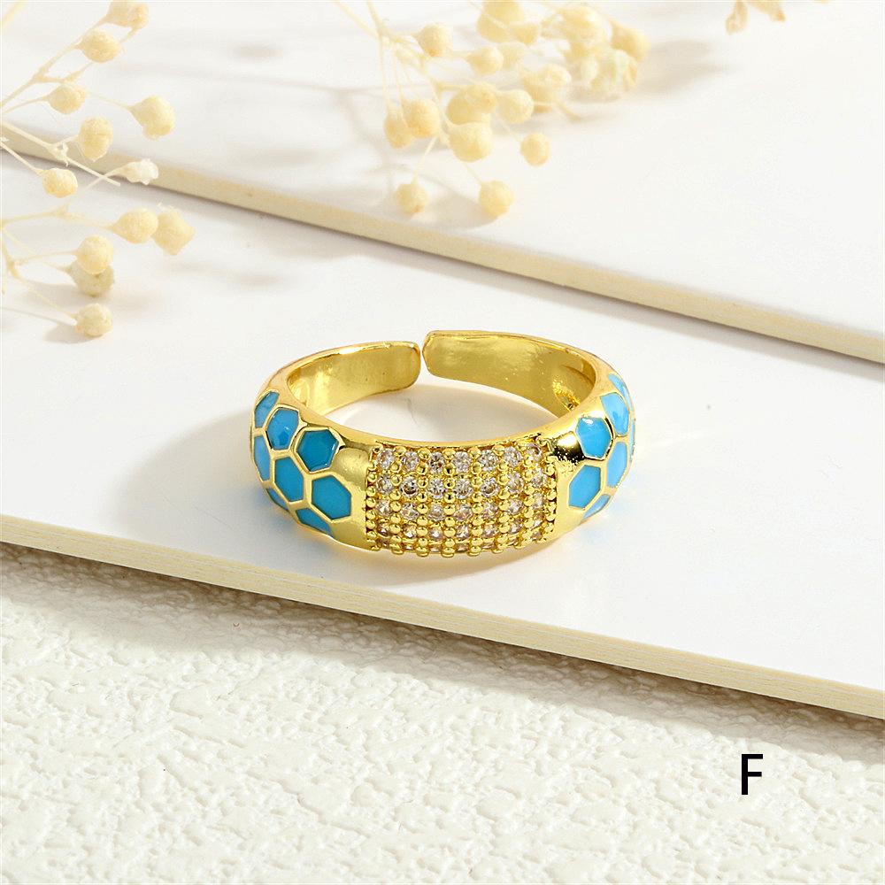 Anillo de Gota de Aceite con Diseño de Panal de Nicho Incrustado de Zircón de Cobre Color Caramelo Personalizado, Apertura Ajustable, Joyería Estilo Ins