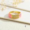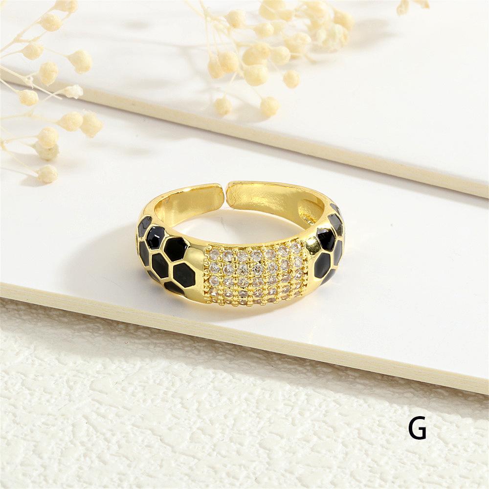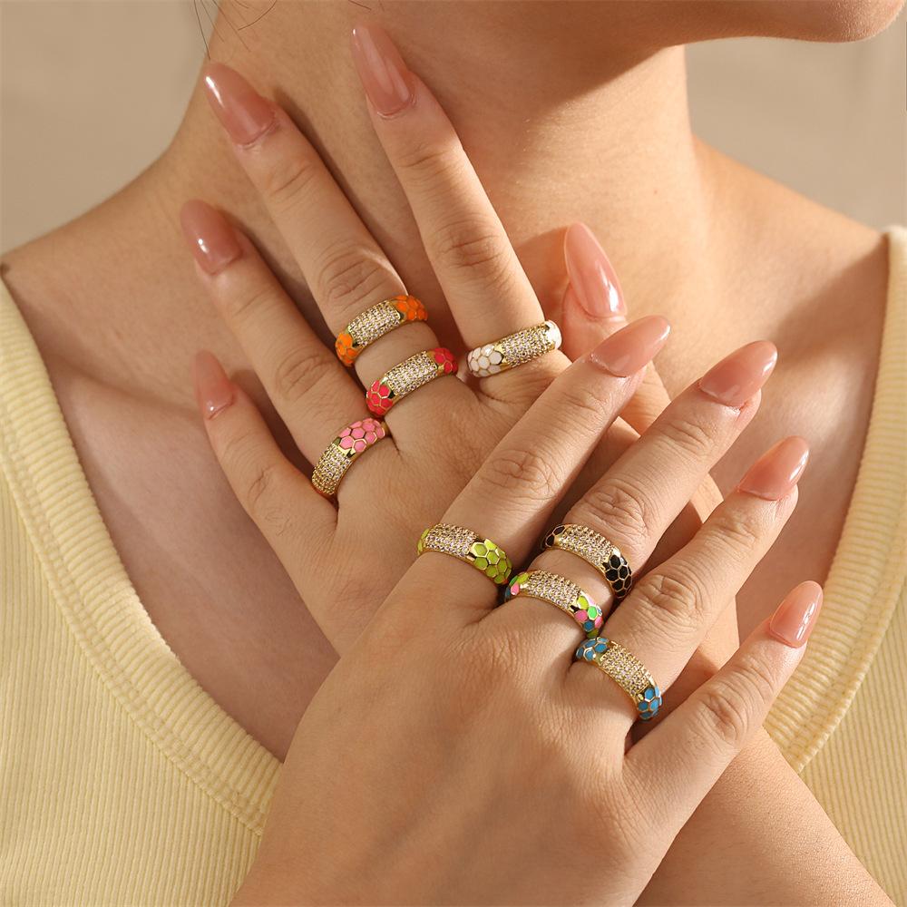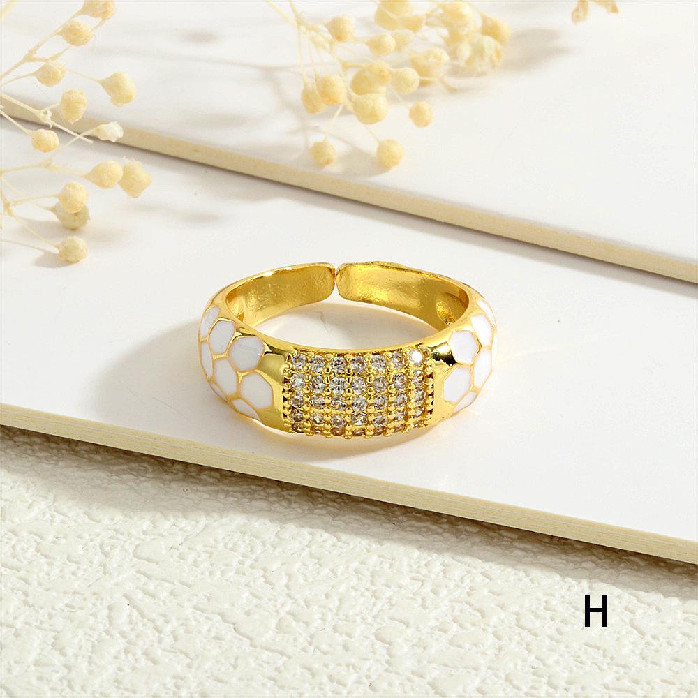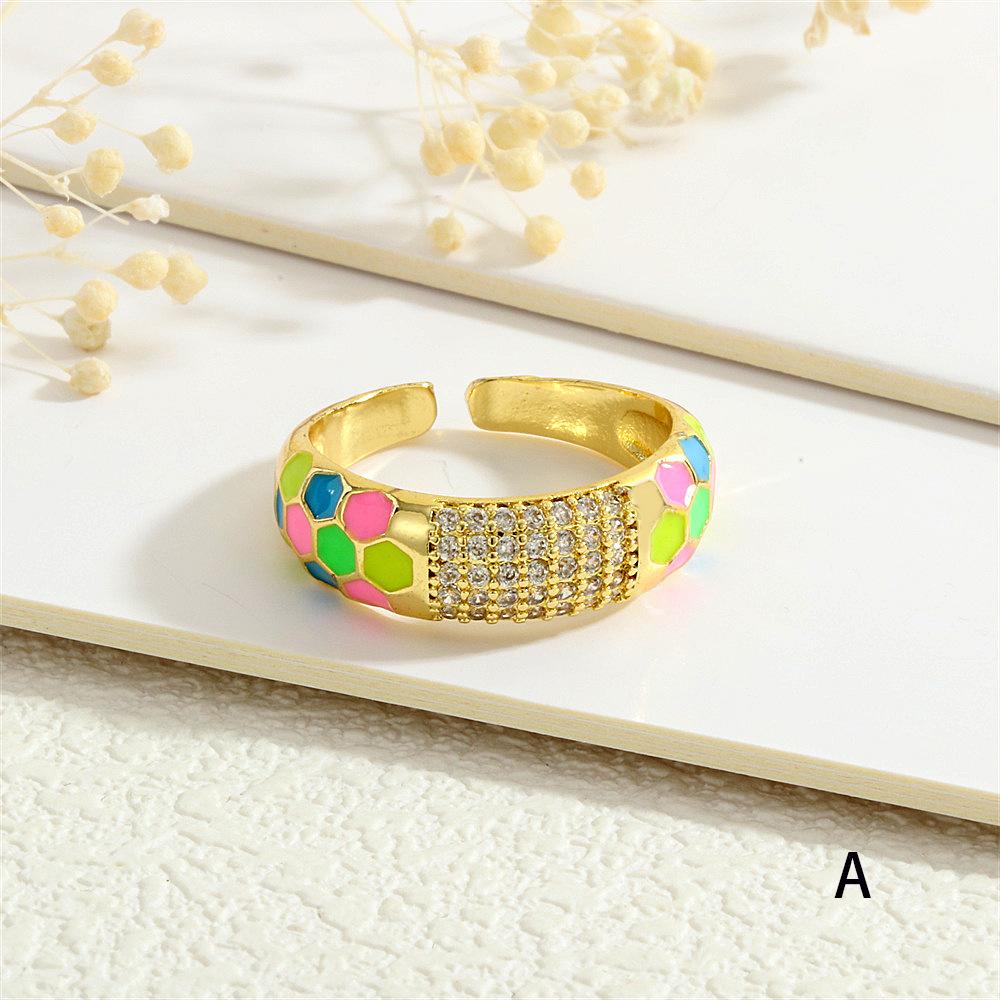 Anillo de Gota de Aceite con Diseño de Panal de Nicho Incrustado de Zircón de Cobre Color Caramelo Personalizado, Apertura Ajustable, Joyería Estilo Ins