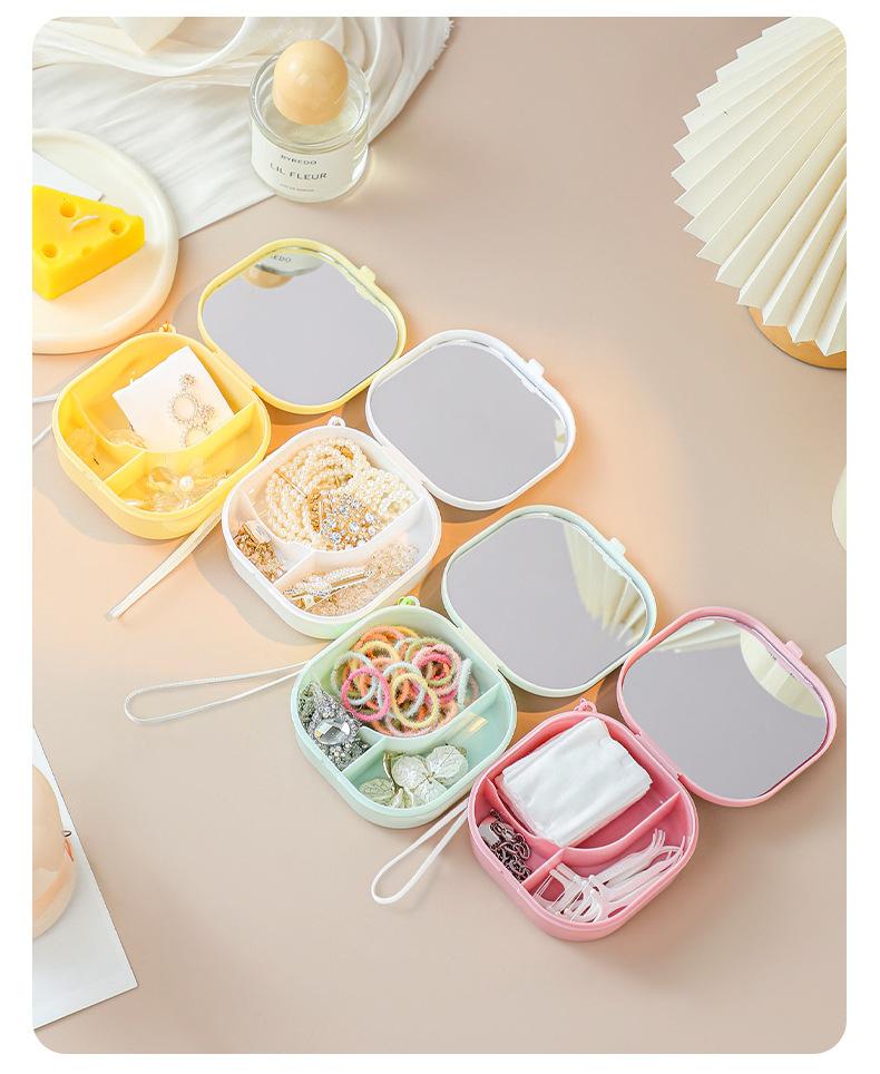 Caja de Joyería Pequeña de Escritorio Portátil Caja de Almacenamiento de Algodón para Maquillaje de Viaje Collar Aretes Anillos Caja Organizadora Compartimentada