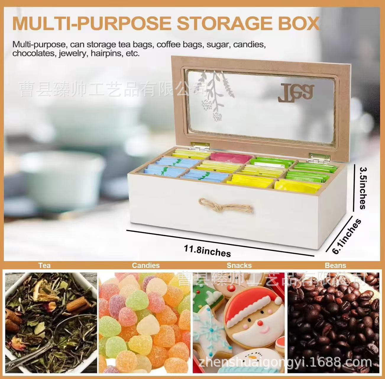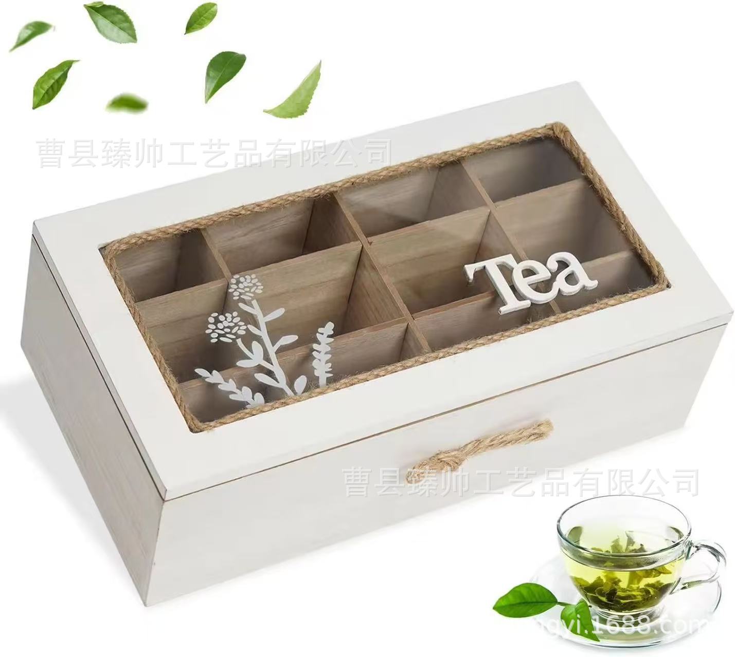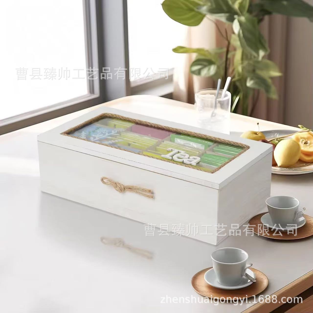 Caja de Almacenamiento de Joyería de Escritorio de Madera Transfronteriza de Cuatro Compartimentos Almacenamiento Multicompartimento Caja de Madera Compartimento de Escritorio de Madera Caja con Tapa Abatible