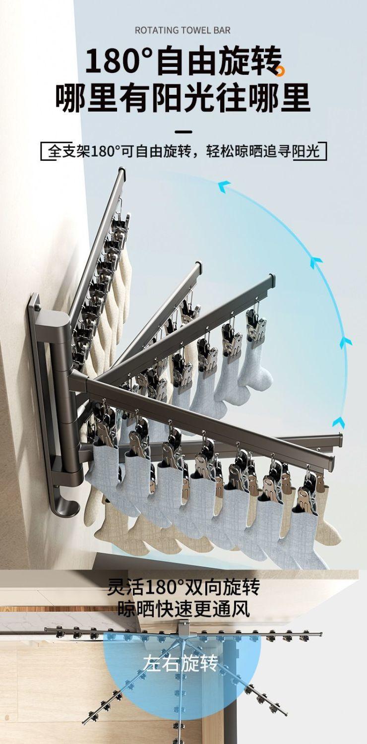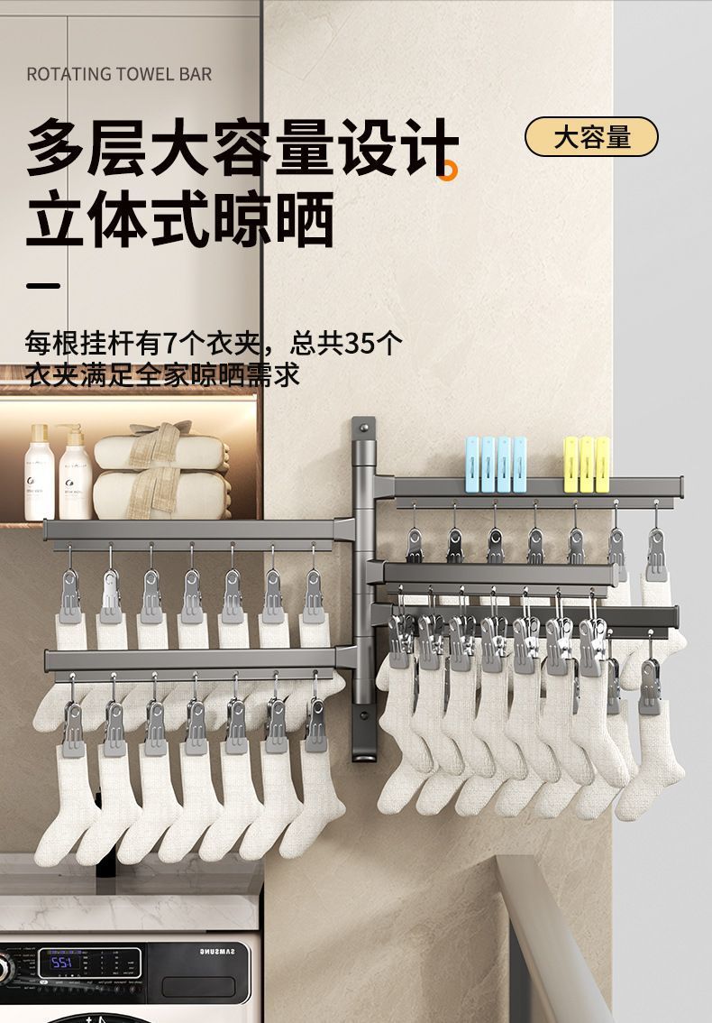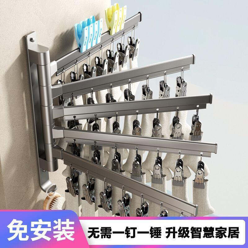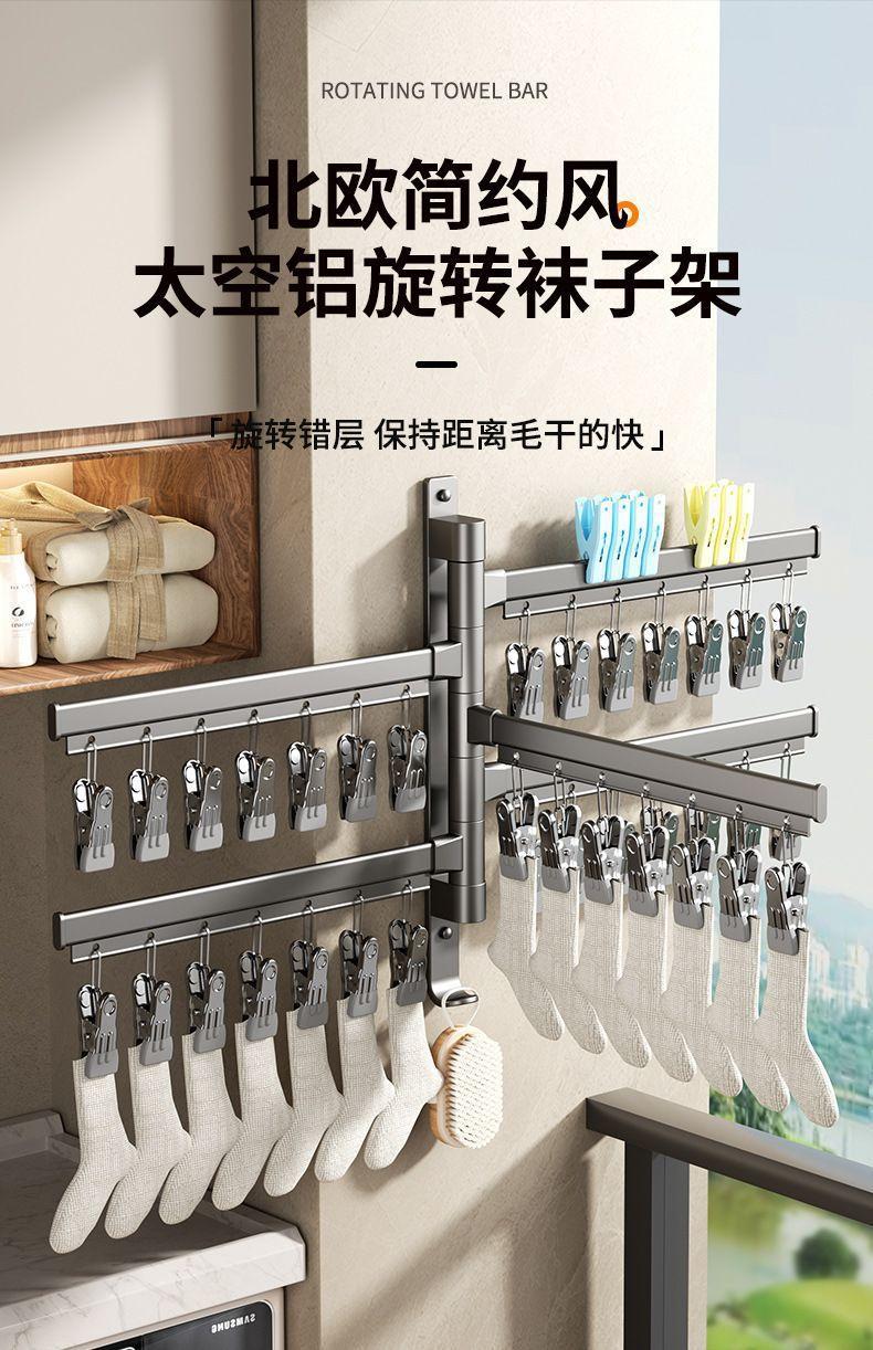 Tendedero de Calcetines Balcón Sin Perforaciones Multifuncional Giratorio Colgador de Almacenamiento de Ropa Interior Montado en la Pared Plegable