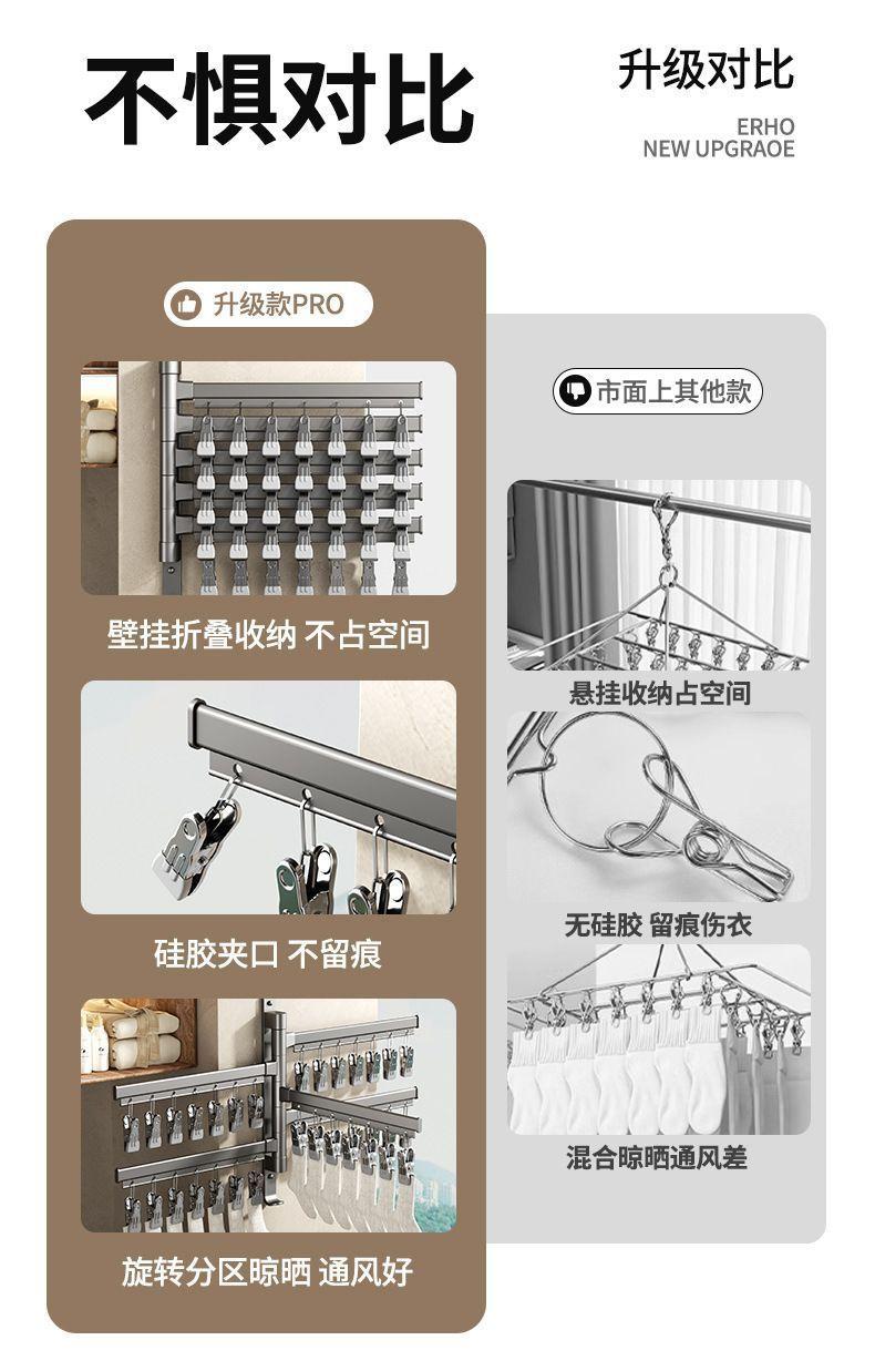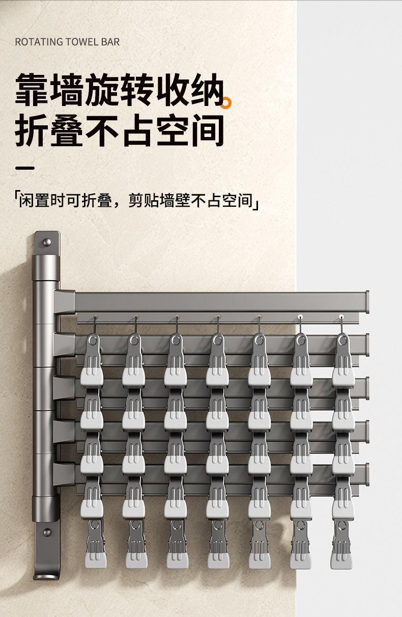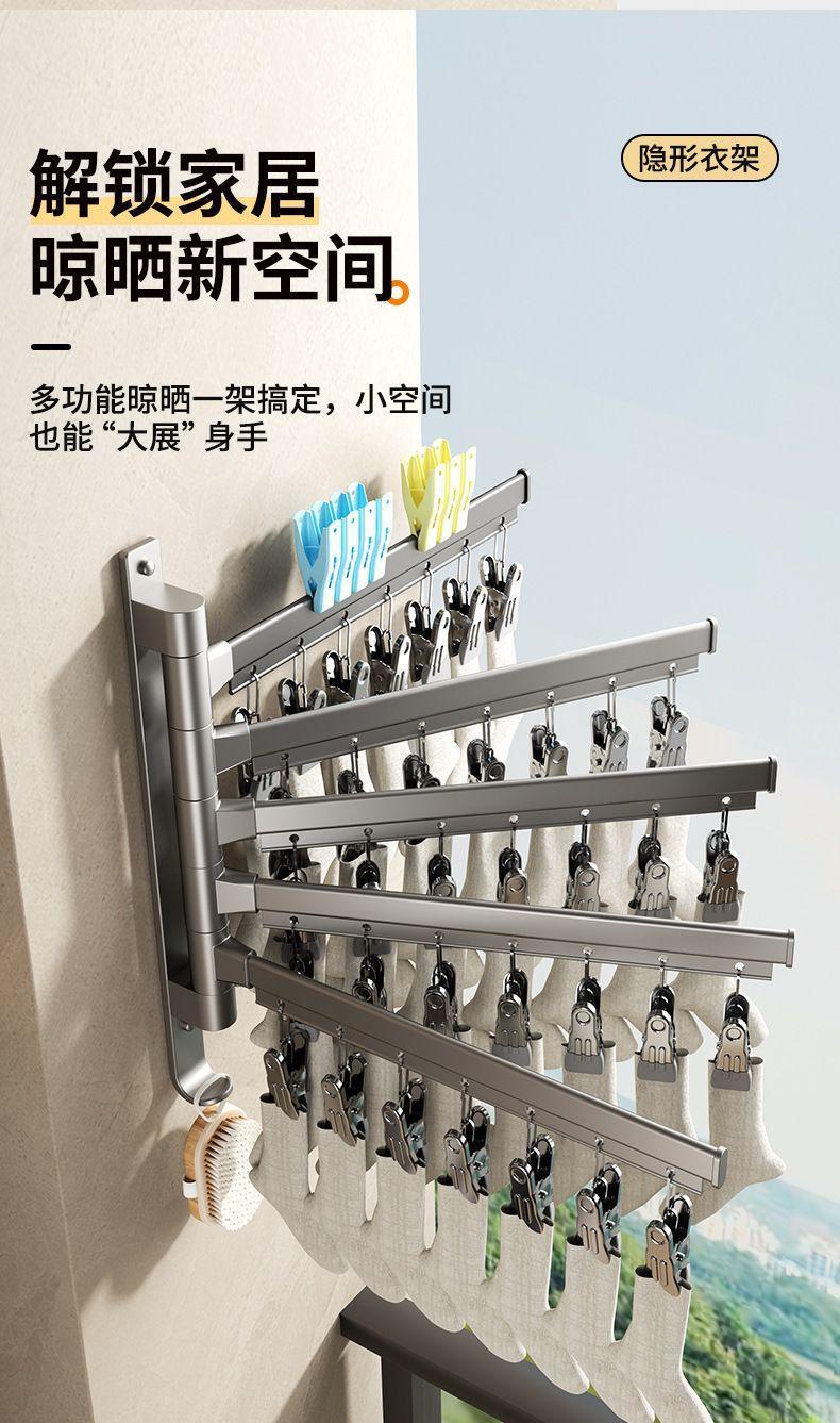Tendedero de Calcetines Balcón Sin Perforaciones Multifuncional Giratorio Colgador de Almacenamiento de Ropa Interior Montado en la Pared Plegable