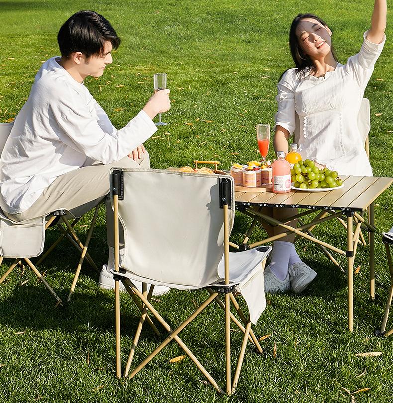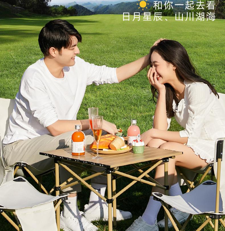 Mesa Plegable para Exterior Portátil Mesa Enrollable Tipo Huevo Mesa de Picnic Juego de Mesa y Sillas para Camping Suministros y Equipo para Barbacoa