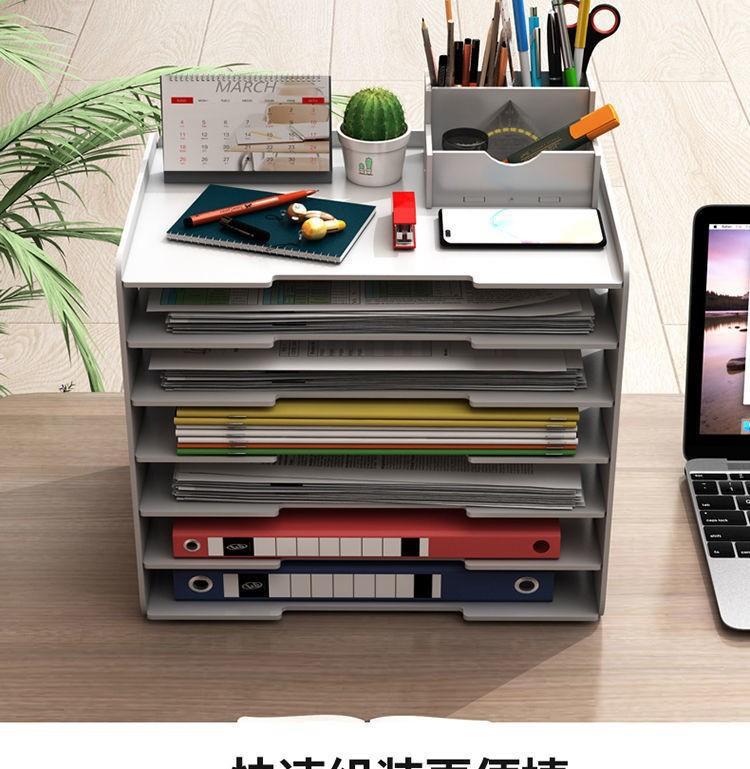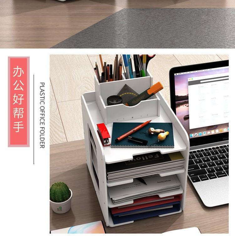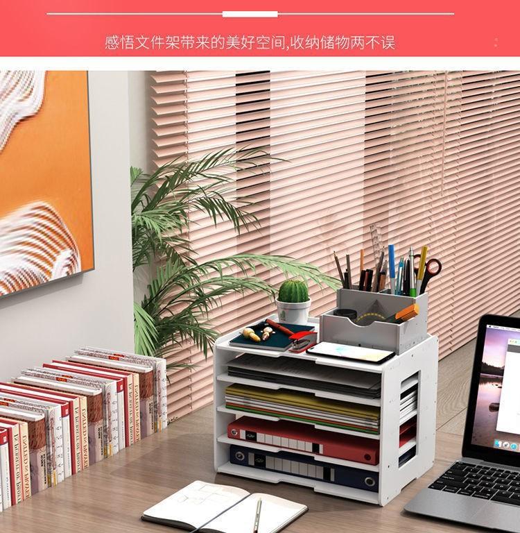 Caja de Almacenamiento de Archivos Escritorio Multicapa Estante para Archivos Portalápices Marco para Archivos Sujetalibros Oficina Organizador en Capas Estante de Almacenamiento