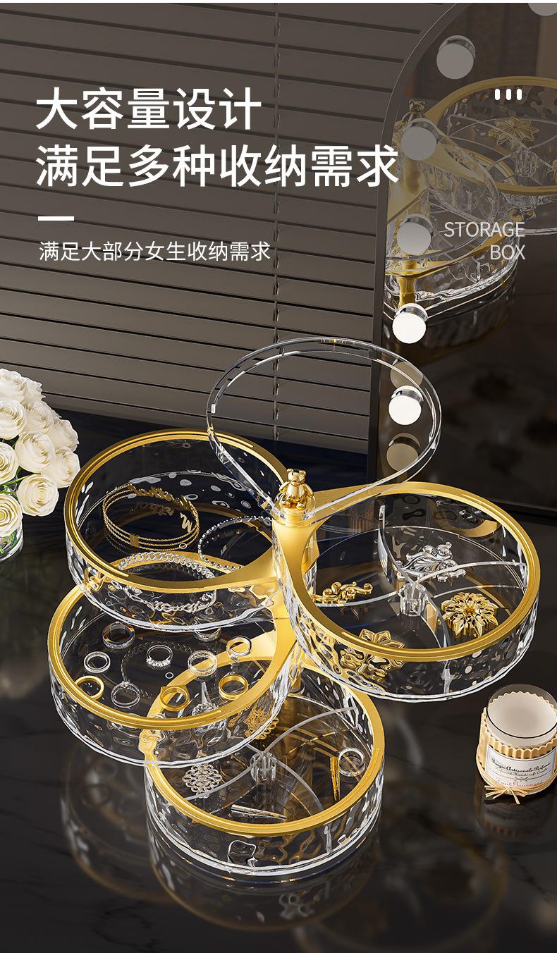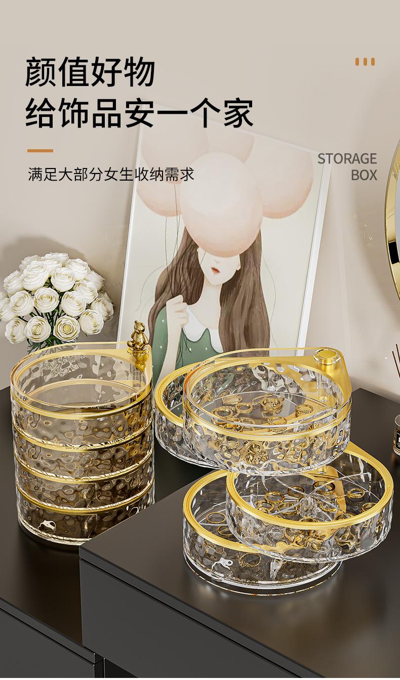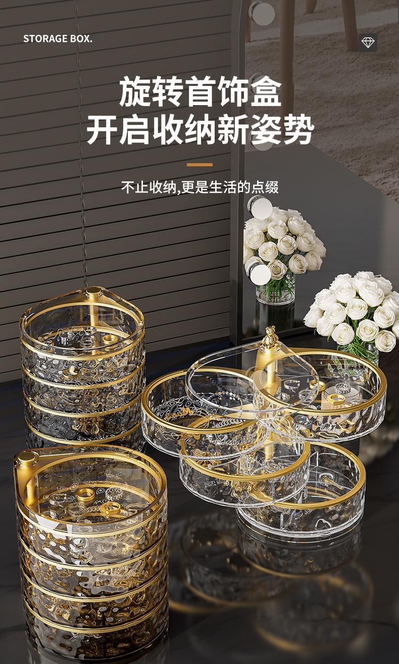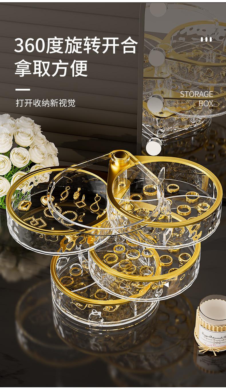 Caja de almacenamiento de joyas 2025, nueva caja de alta gama para pendientes, collares y aretes, caja de joyería giratoria multicapa.