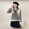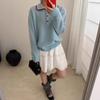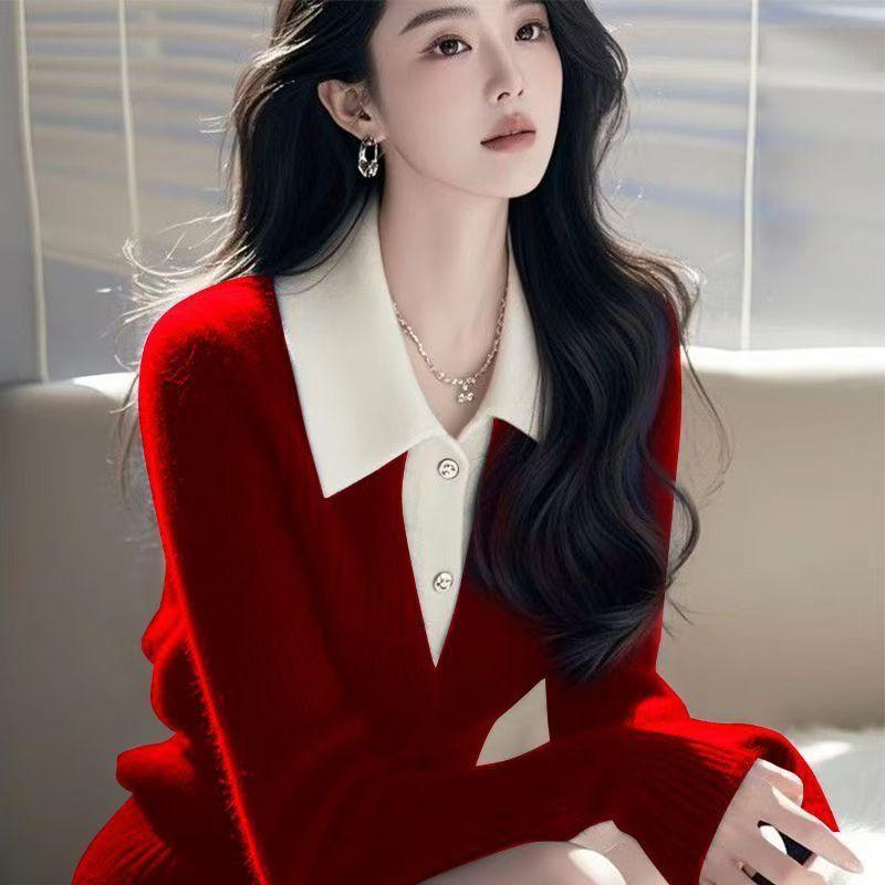 Punto de color block con cuello polo para mujer 2025 primavera y otoño nuevo estilo que reduce la edad camisa base temperamento francés suéter con sentido de alta gama marea