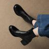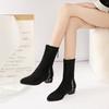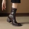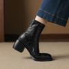 Botas de tacón alto para mujer estilo coreano con suela de goma, color sólido, cuero, cómodas, cremallera trasera, punta redonda, botas Martin, otoño e invierno, botas de media caña para mujer