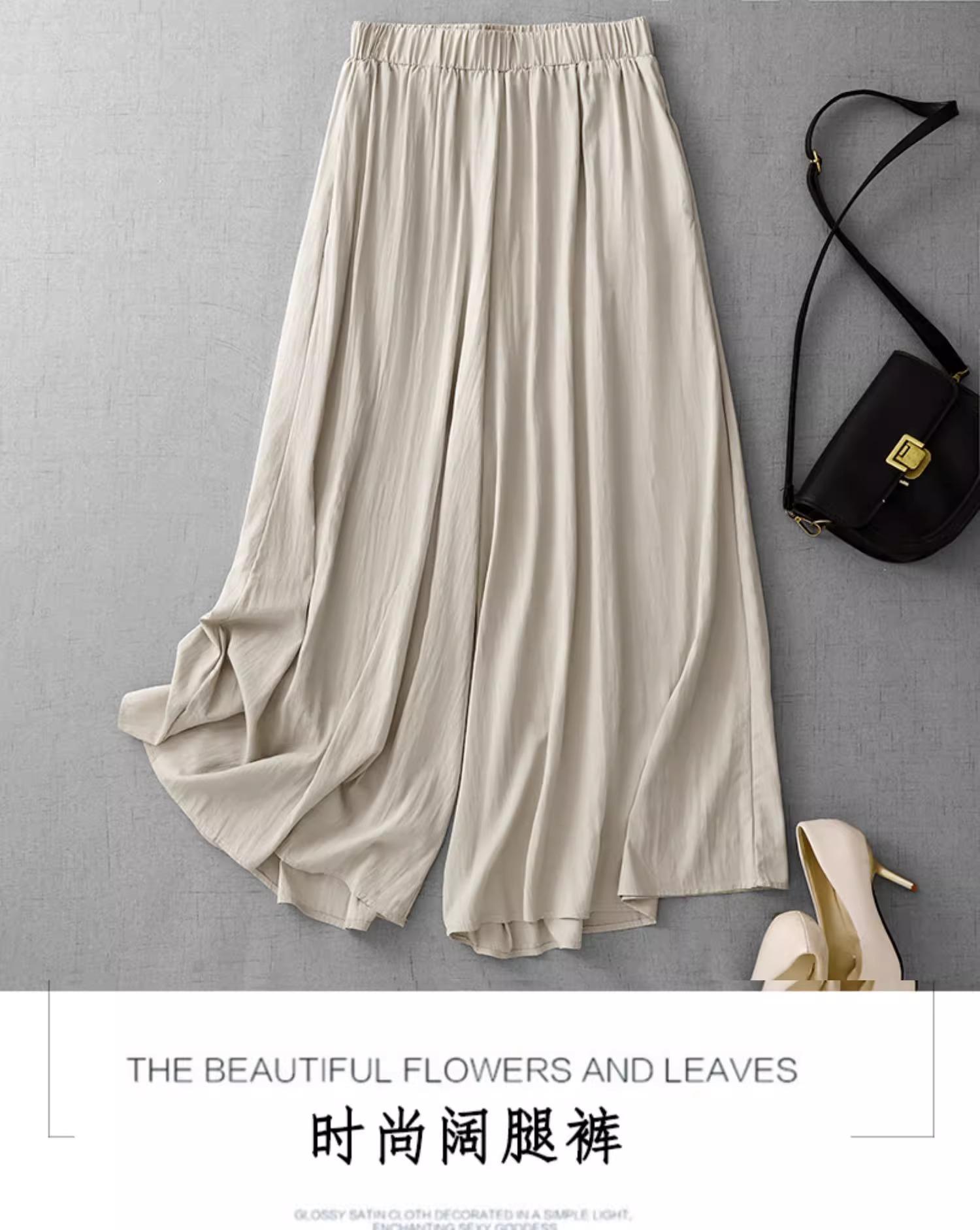 Pantalones Culottes Holgados de Pierna Ancha con Caída y Sensación Fresca de Seda para Mujer Primavera Verano Nuevos Holgados Versátiles Delgados Favorecedores Casuales