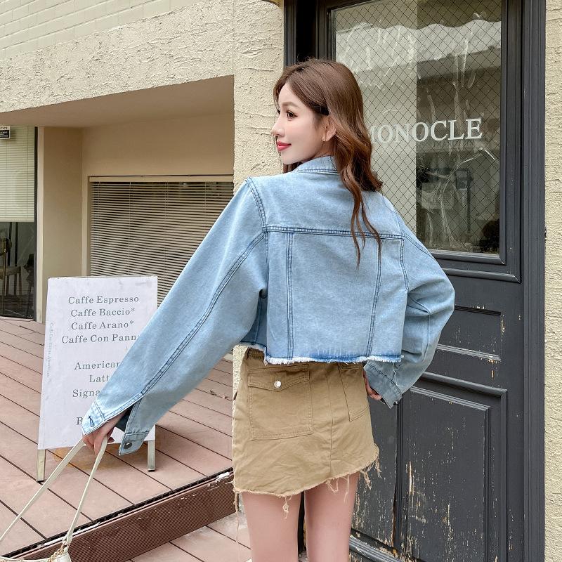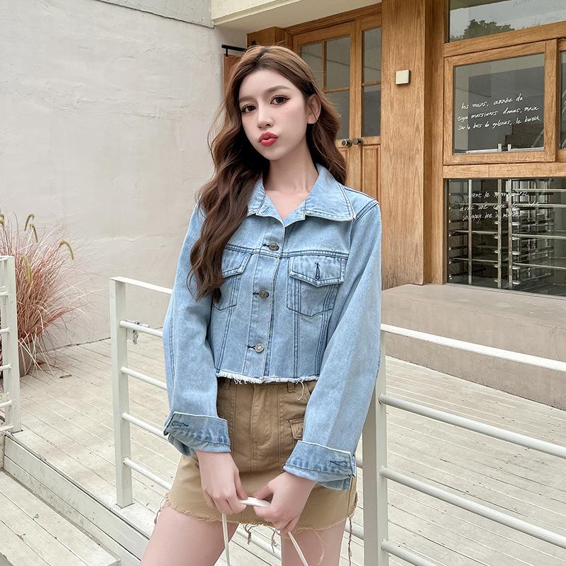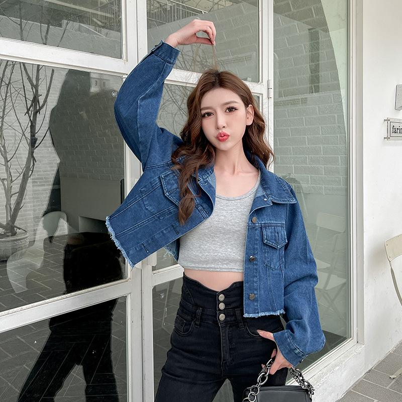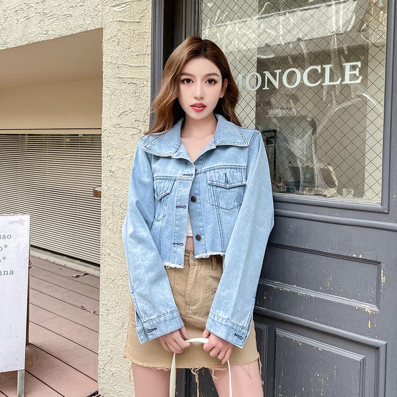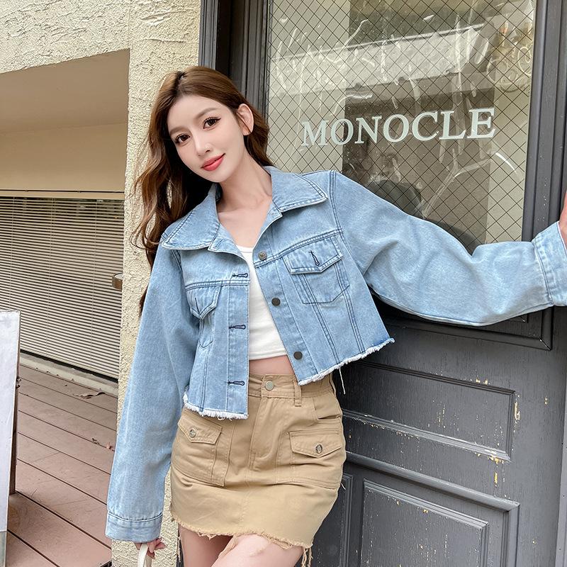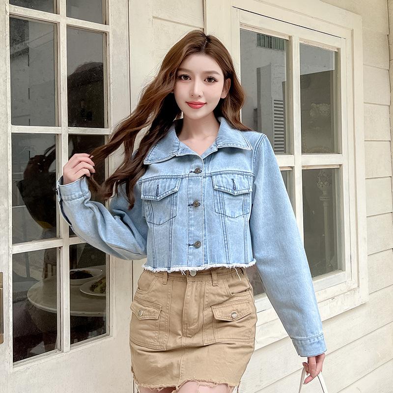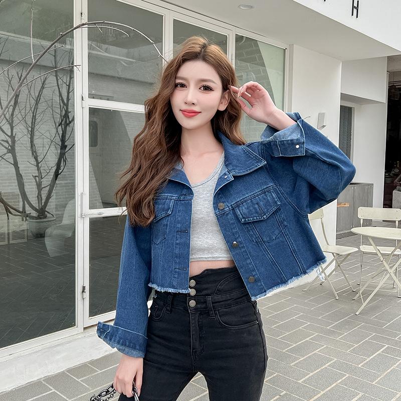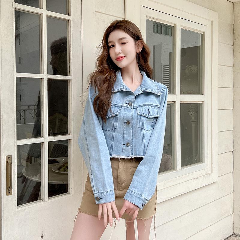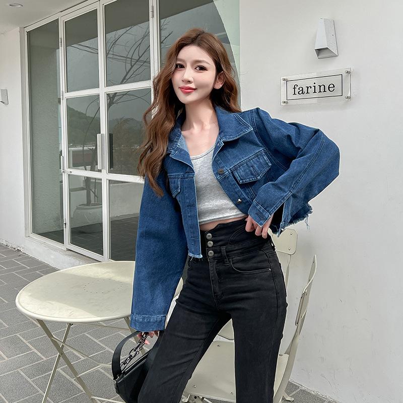 Compra Foto Real de 202 Estilo Nuevo de Principio de Primavera Diseño de Borde Crudo Retro Suelto Versátil Suave Chaqueta Top de Mezclilla para Mujer al por mayor en Joom.pro