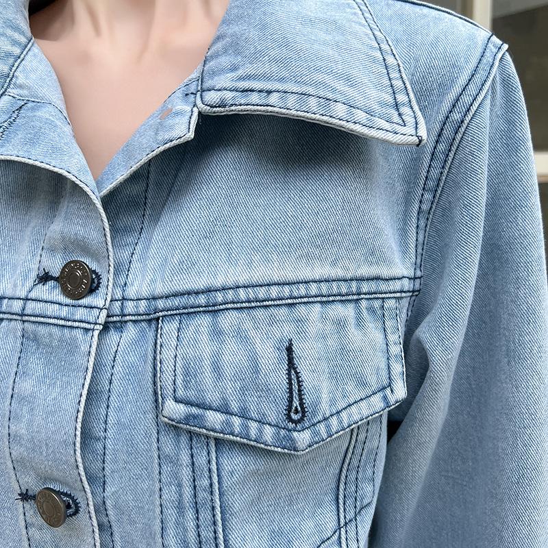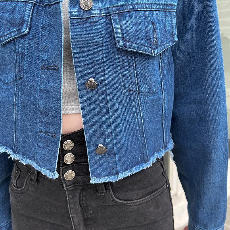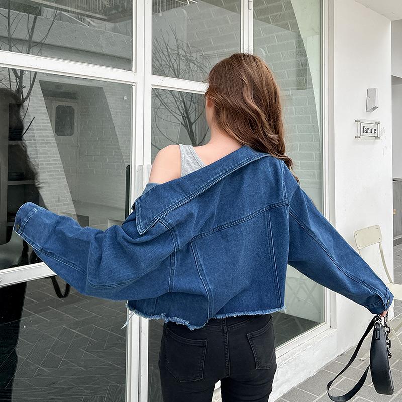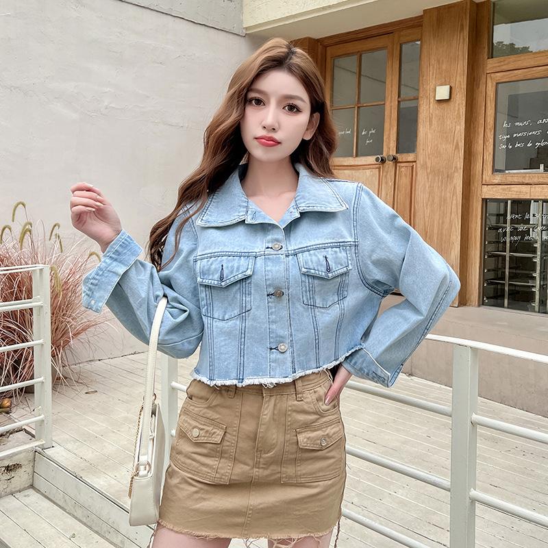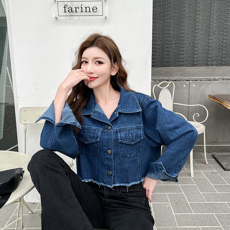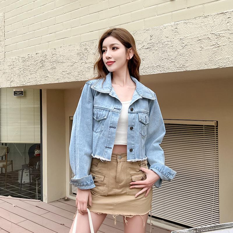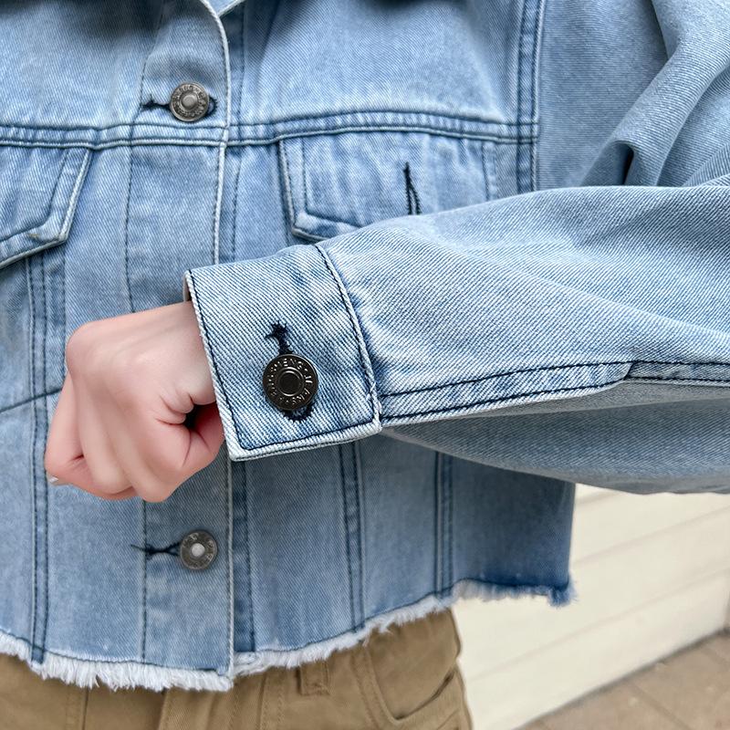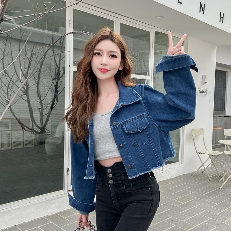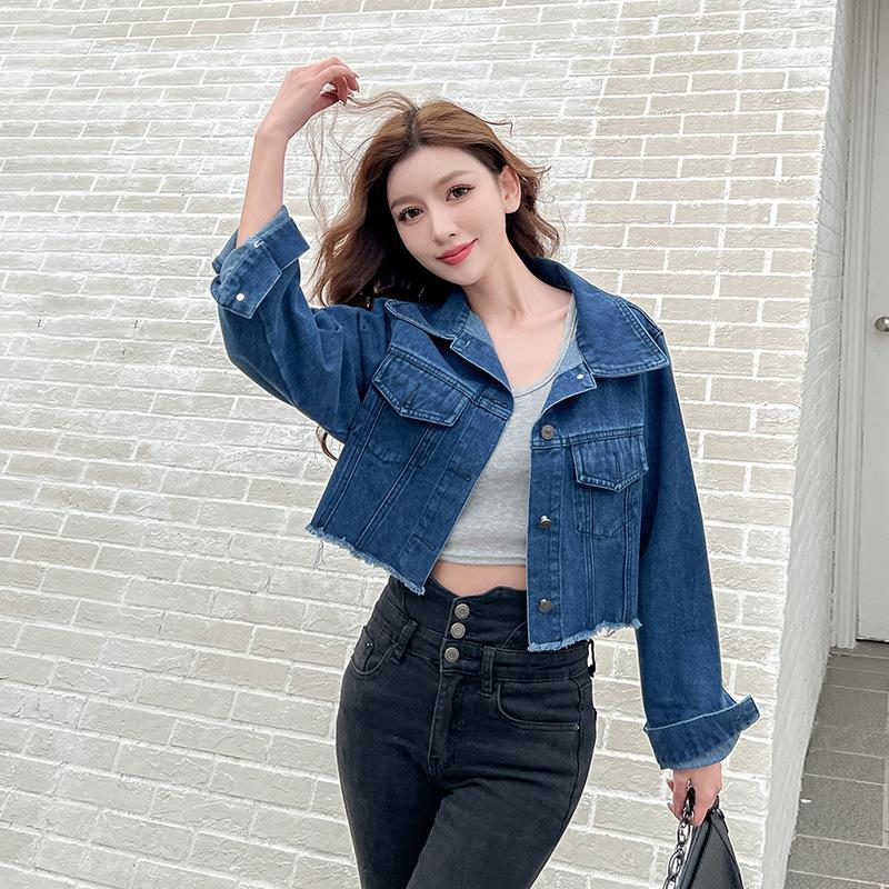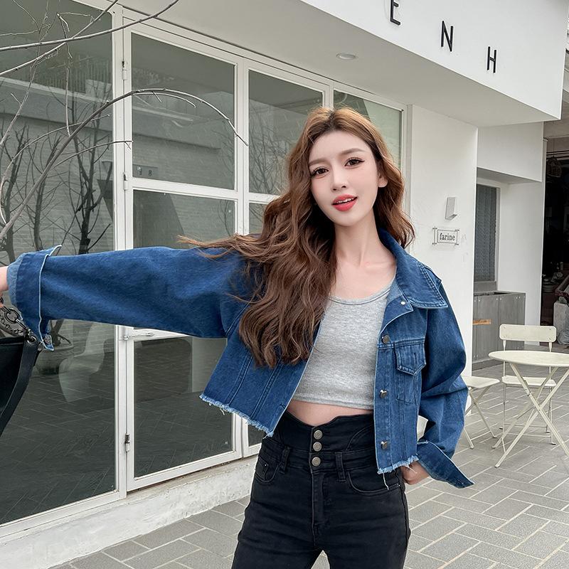 Compra Foto Real de 202 Estilo Nuevo de Principio de Primavera Diseño de Borde Crudo Retro Suelto Versátil Suave Chaqueta Top de Mezclilla para Mujer al por mayor en Joom.pro