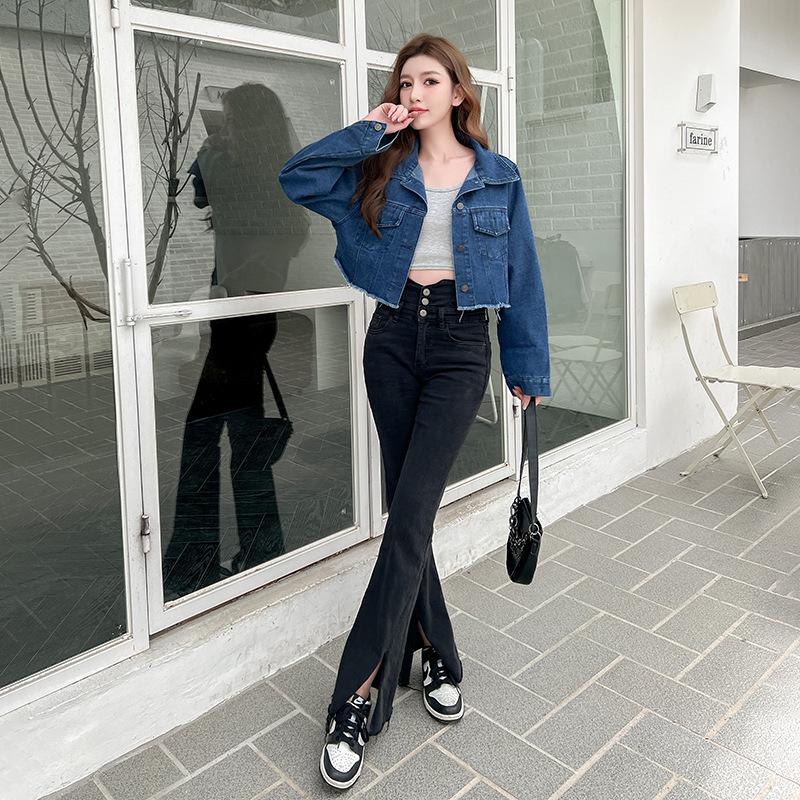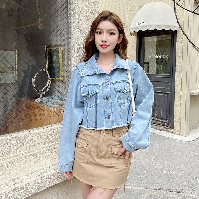 Foto Real de 202 Estilo Nuevo de Principio de Primavera Diseño de Borde Crudo Retro Suelto Versátil Suave Chaqueta Top de Mezclilla para Mujer