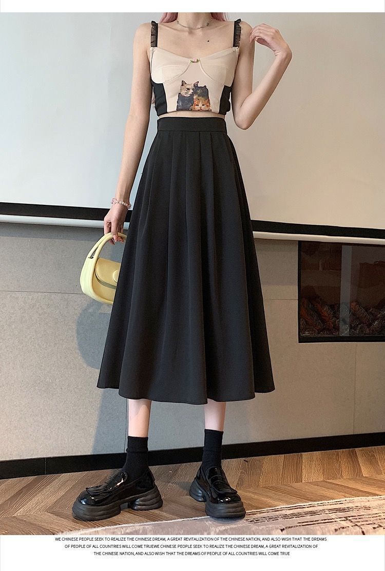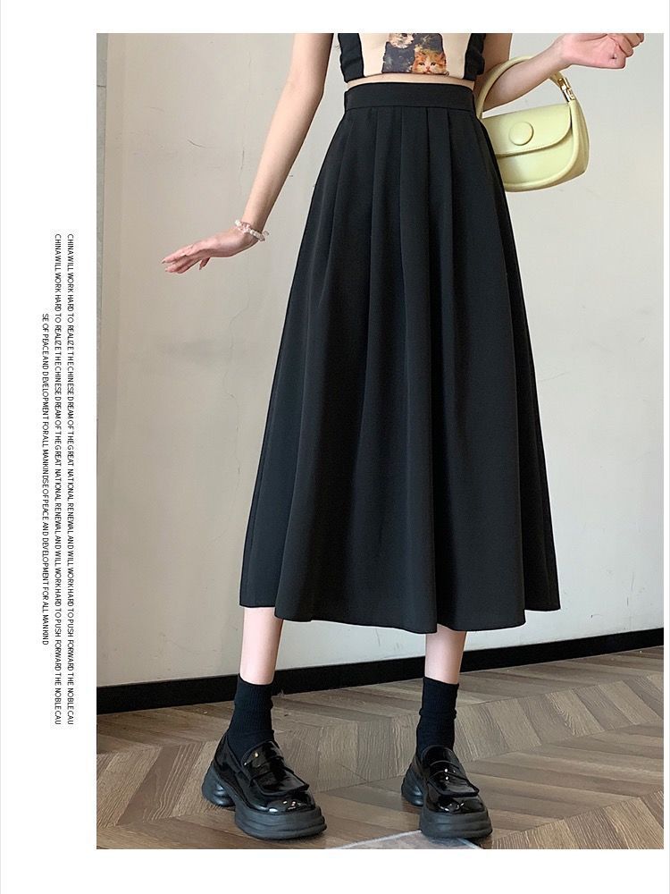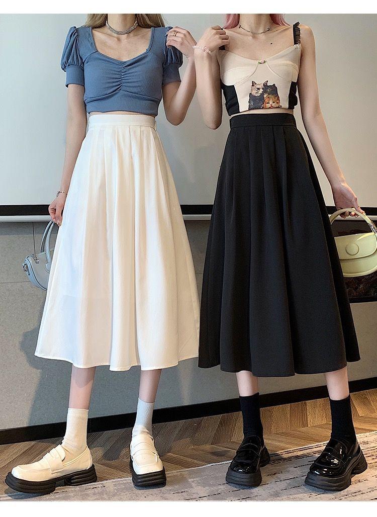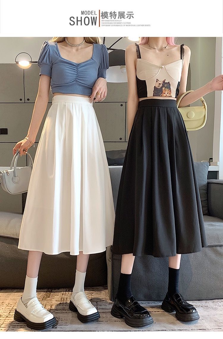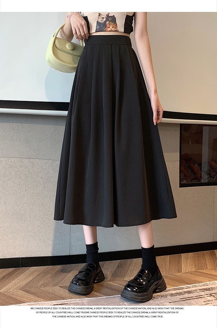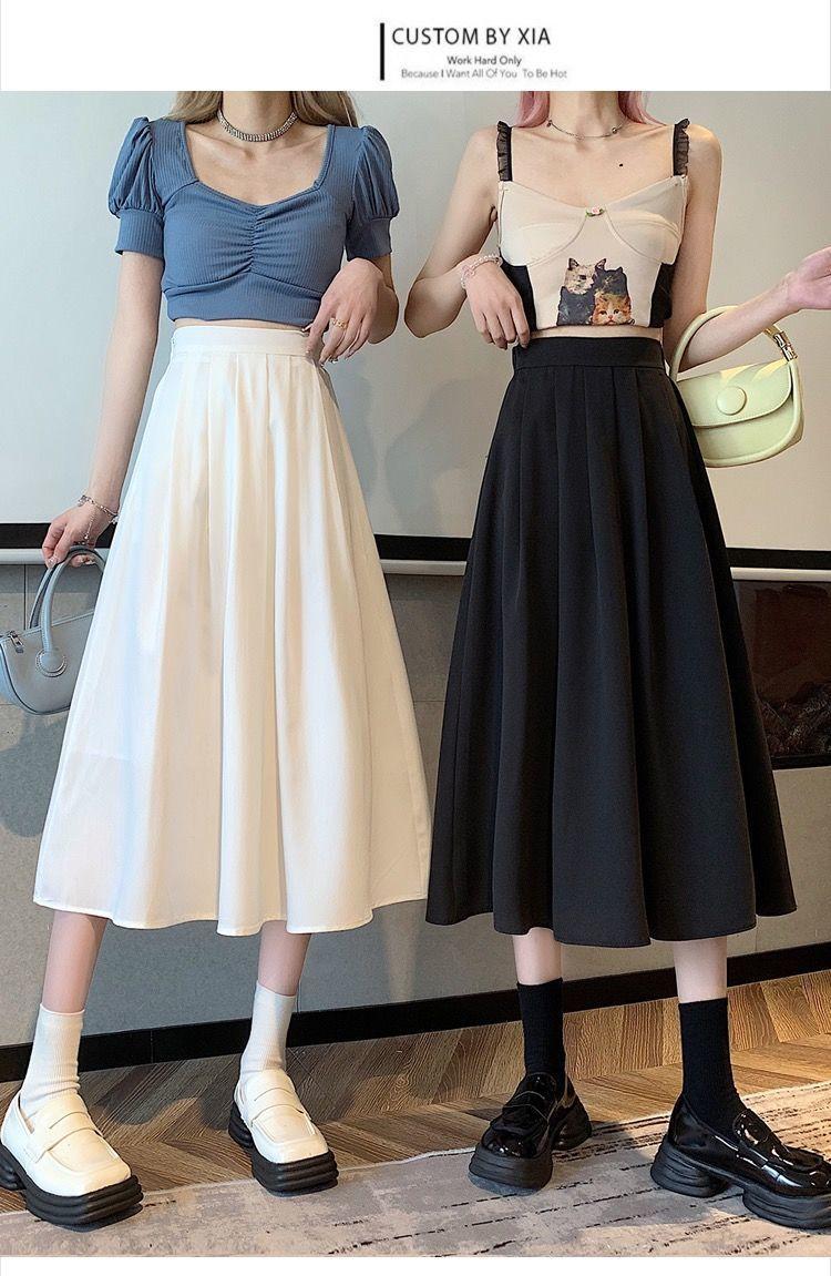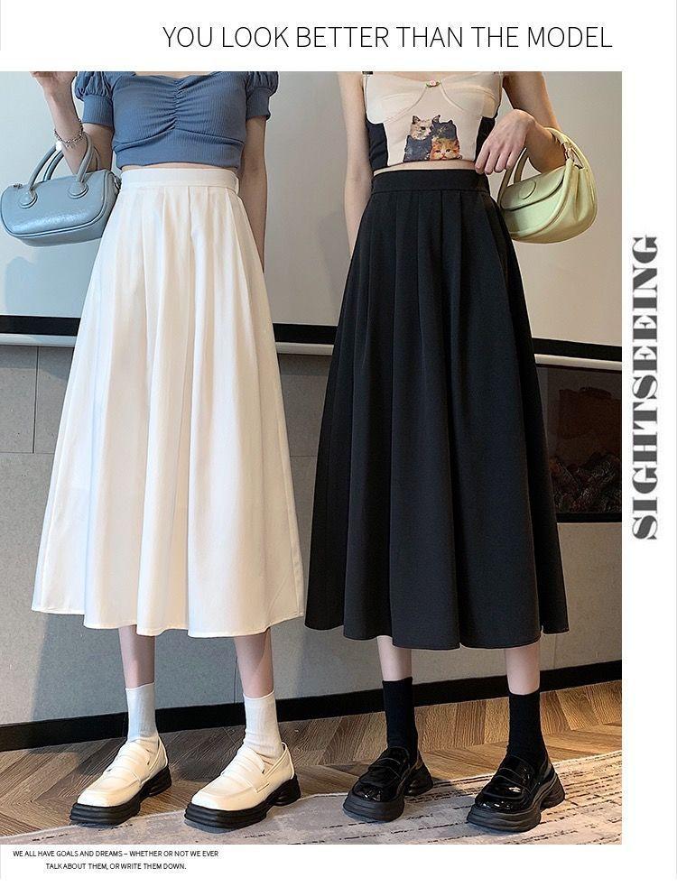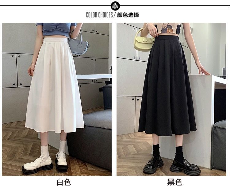Falda Falda Plisada Falda Adelgazante Verano Nuevo para Mujer Falda Línea A Combinable Largo Medio Cintura Alta Falda Paraguas