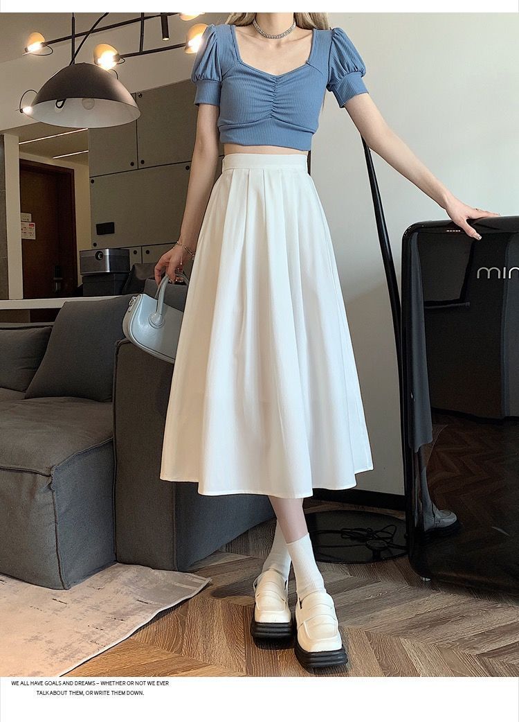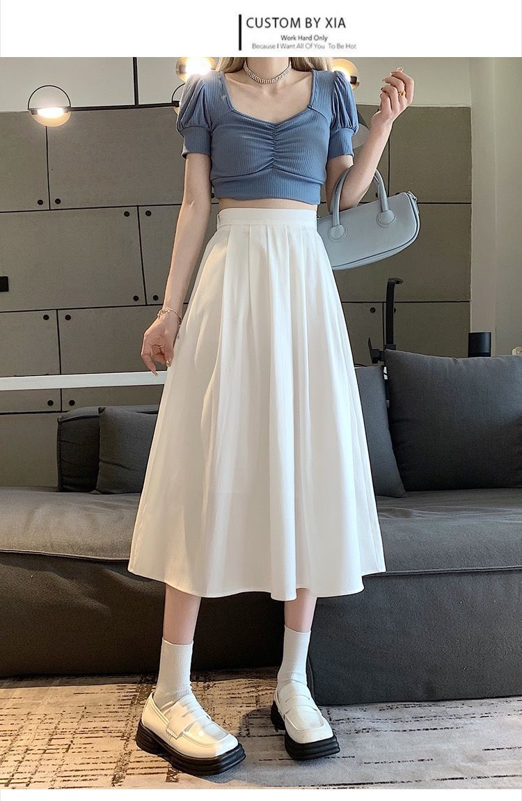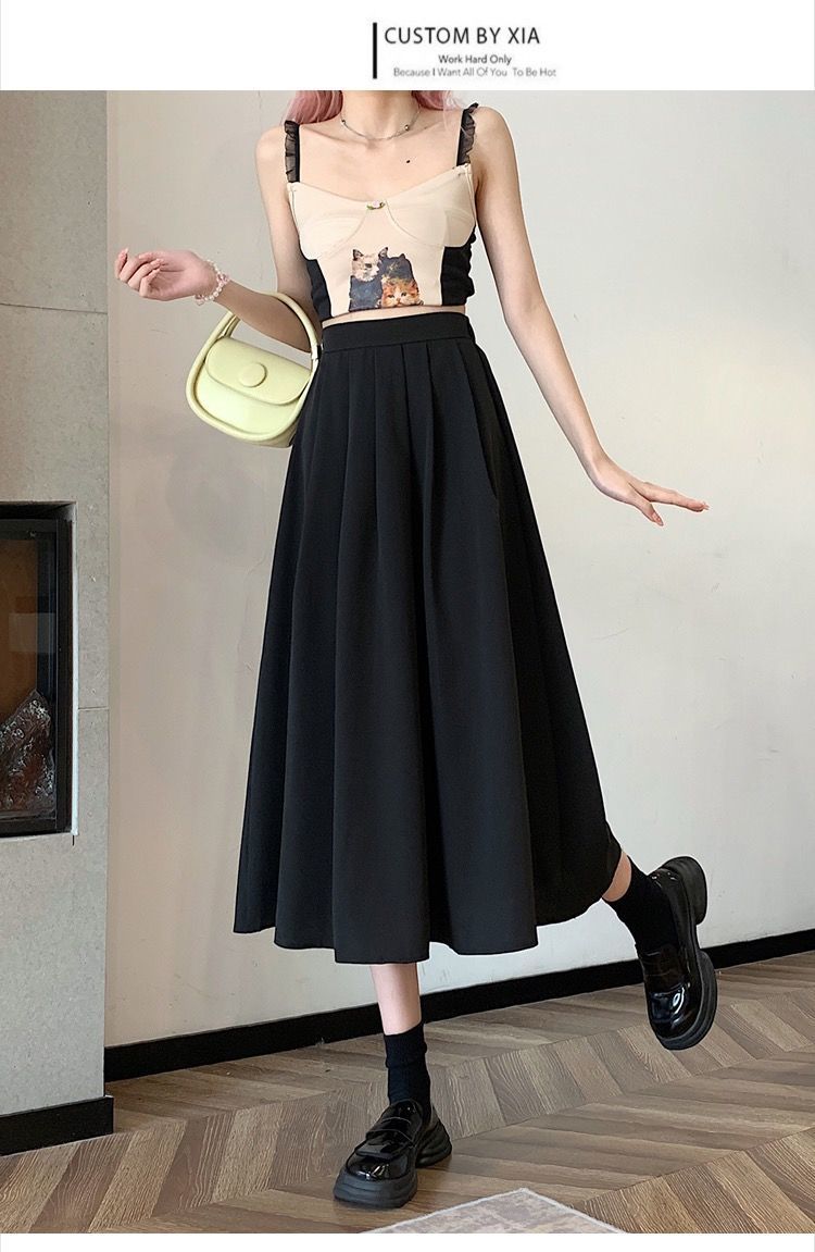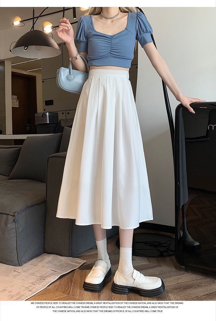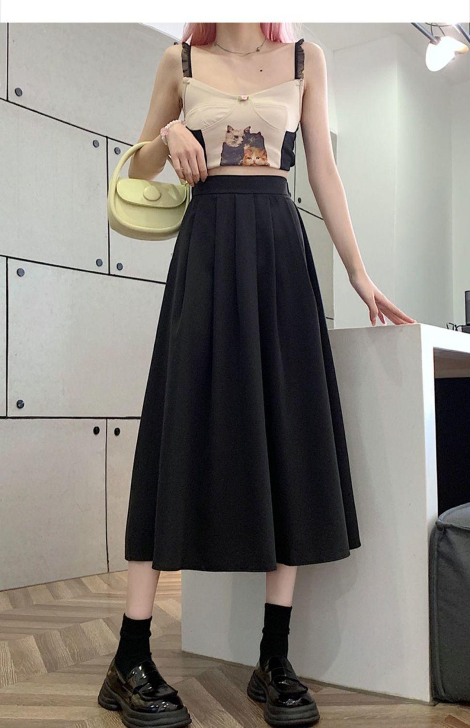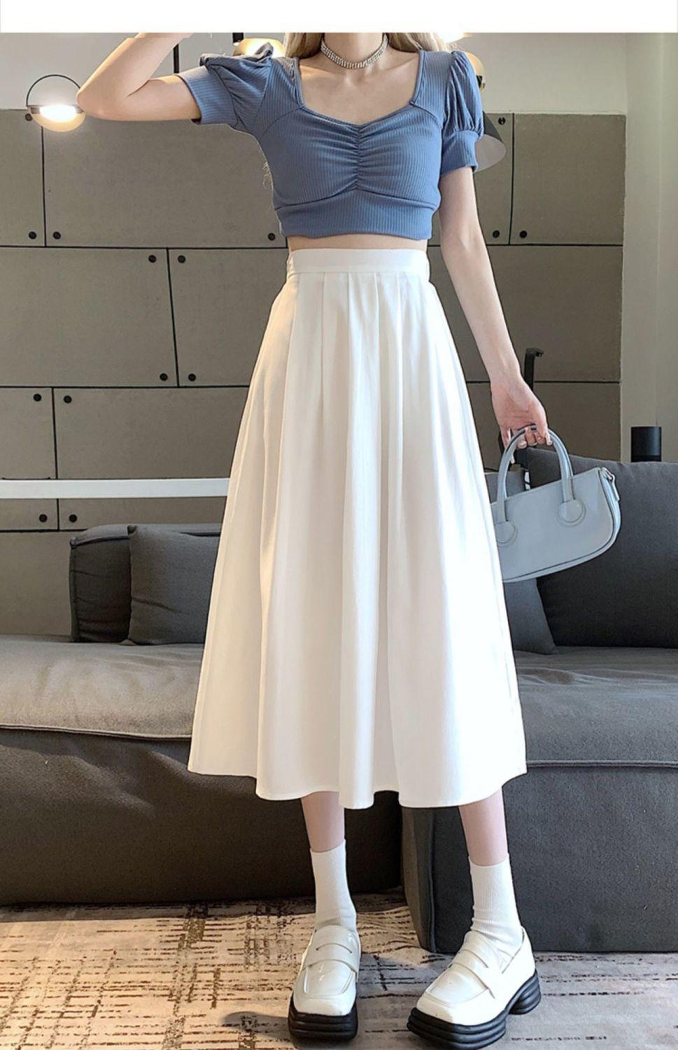 Falda Falda Plisada Falda Adelgazante Verano Nuevo para Mujer Falda Línea A Combinable Largo Medio Cintura Alta Falda Paraguas