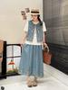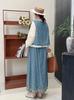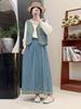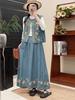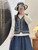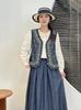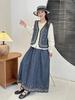 Exquisito Conjunto de Mezclilla Bordado Floral para Mujer Otoño 2025 Nuevo Top Chaleco + Falda Conjunto de Dos Piezas Bordado