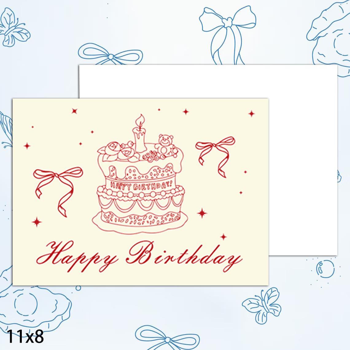 Tarjeta de Felicitación de Cumpleaños Creativa Francesa Personalizada Lazo de Pastel Francés Feliz Cumpleaños Tarjeta de Cumpleaños