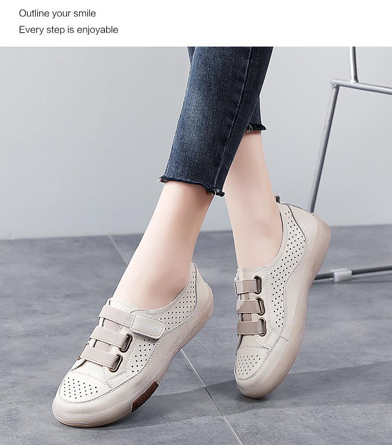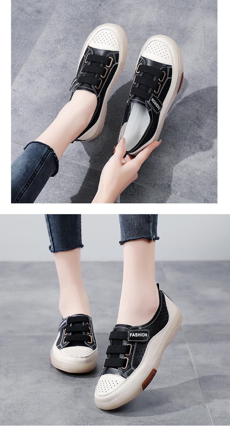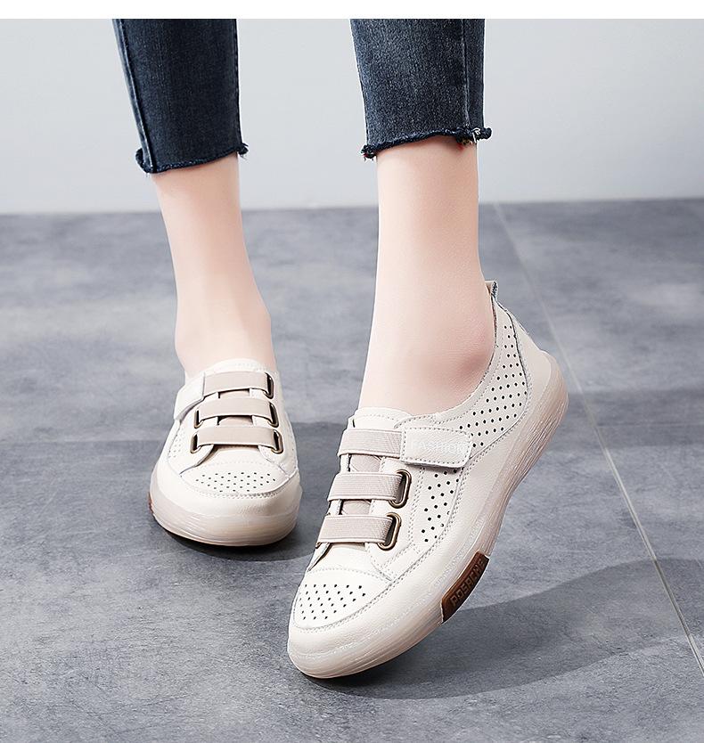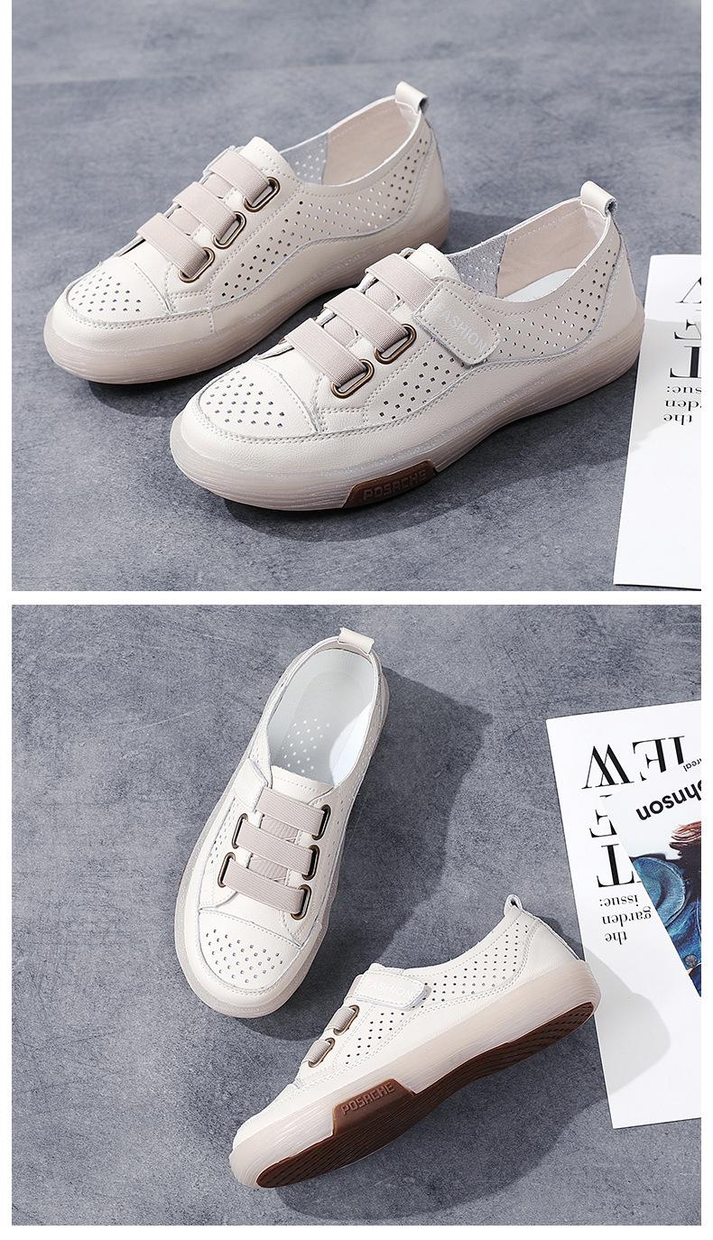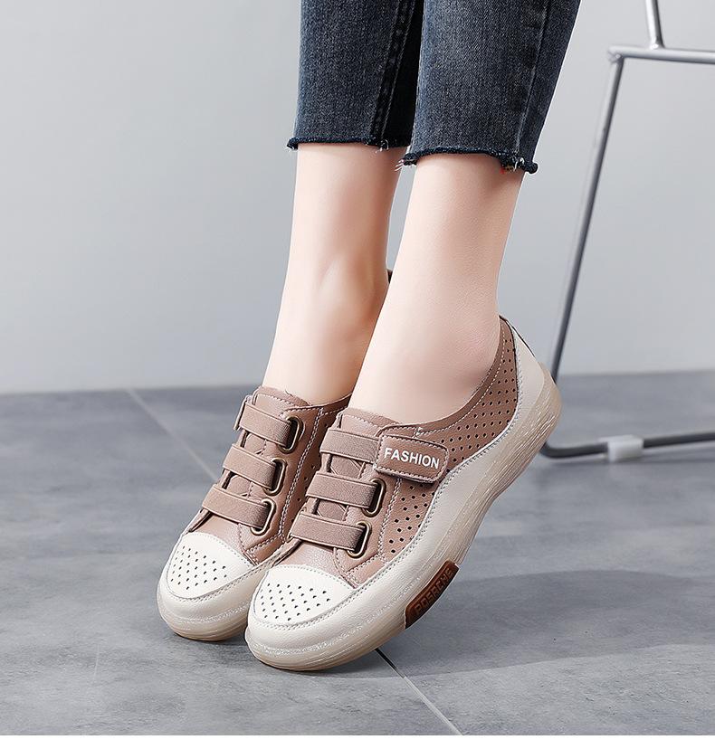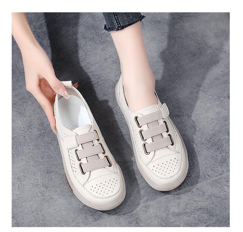 Zapatos Perforados Estilo Coreano Nuevo de Primavera 2024 con Velcro Zapatos de Mujer de Moda Zapatos Casuales Huecos de Verano Zapatos Blancos Slip-On