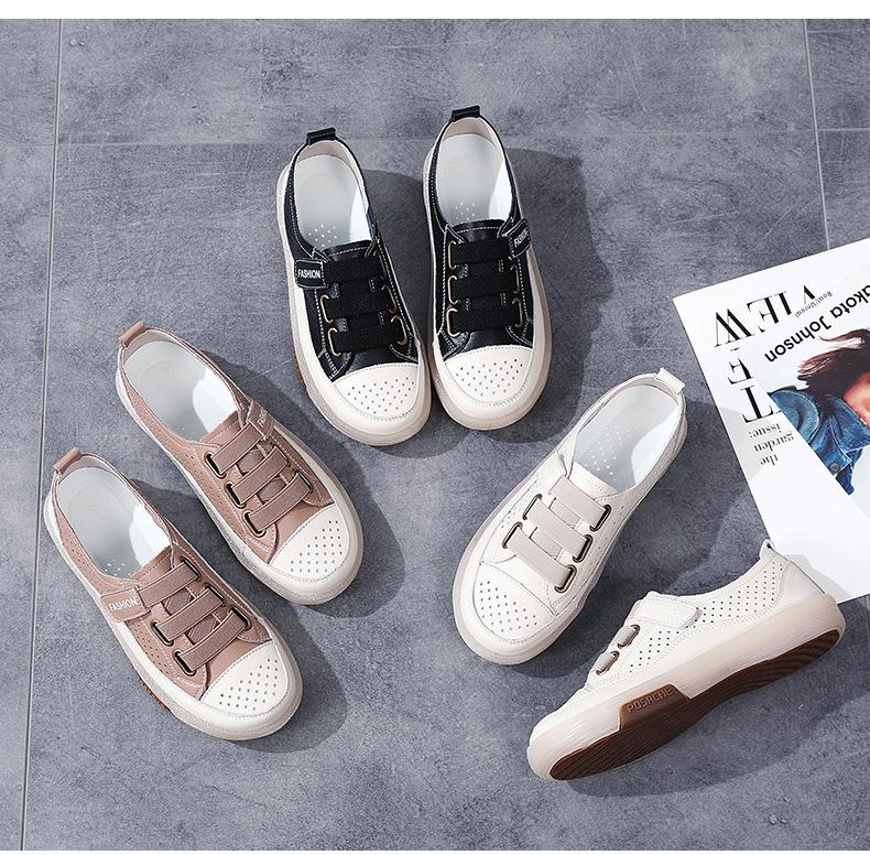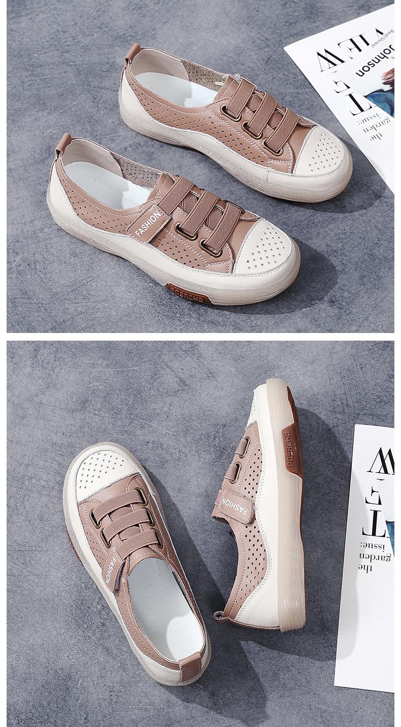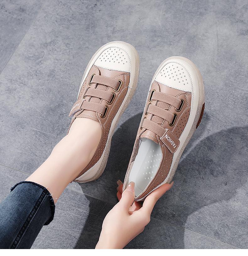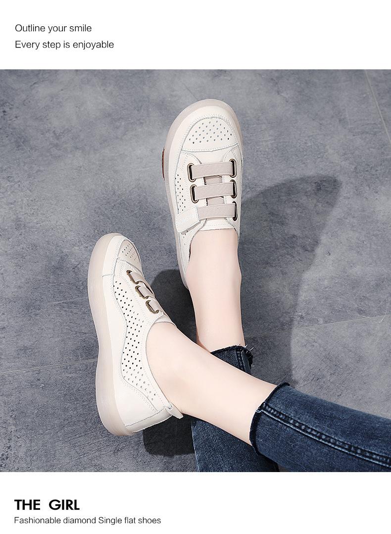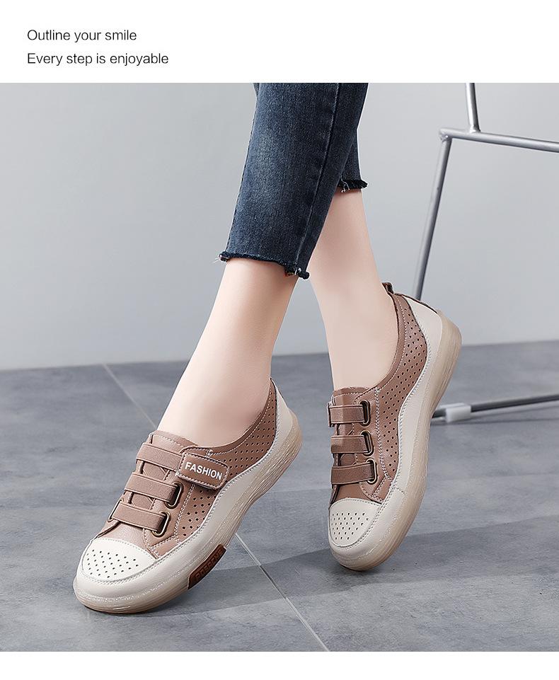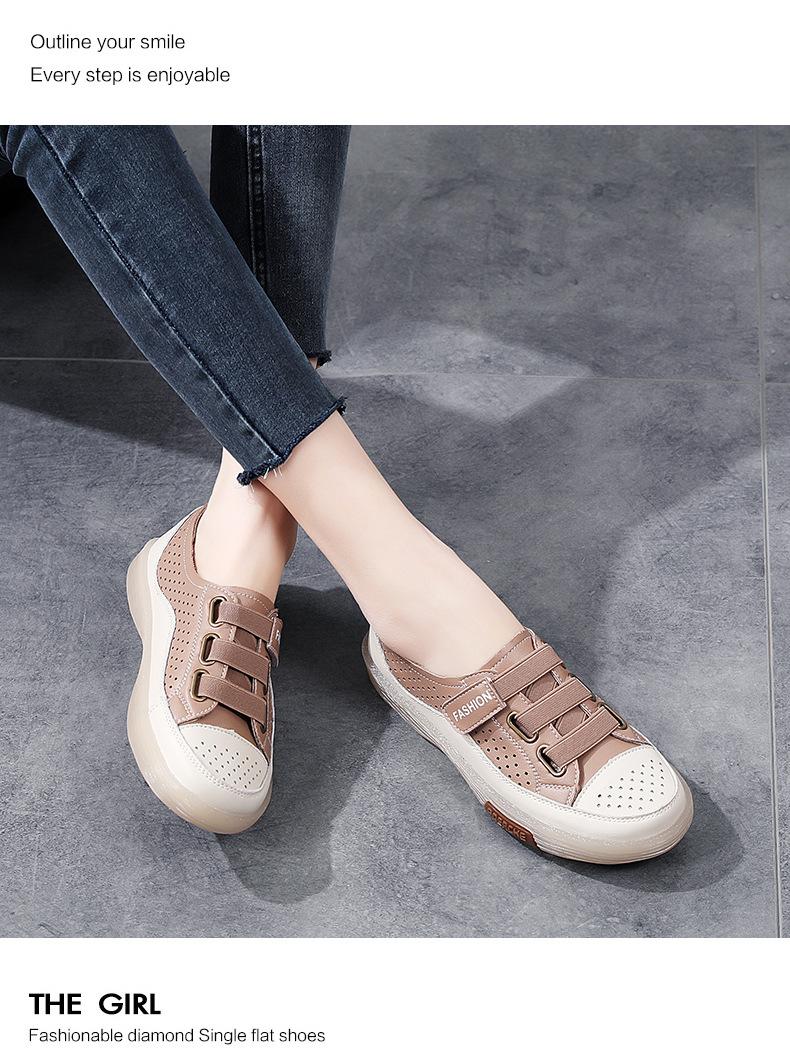 Zapatos Perforados Estilo Coreano Nuevo de Primavera 2024 con Velcro Zapatos de Mujer de Moda Zapatos Casuales Huecos de Verano Zapatos Blancos Slip-On