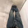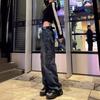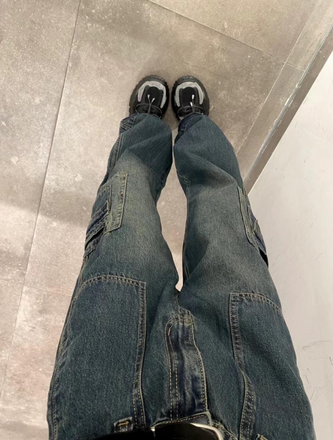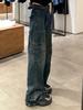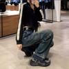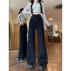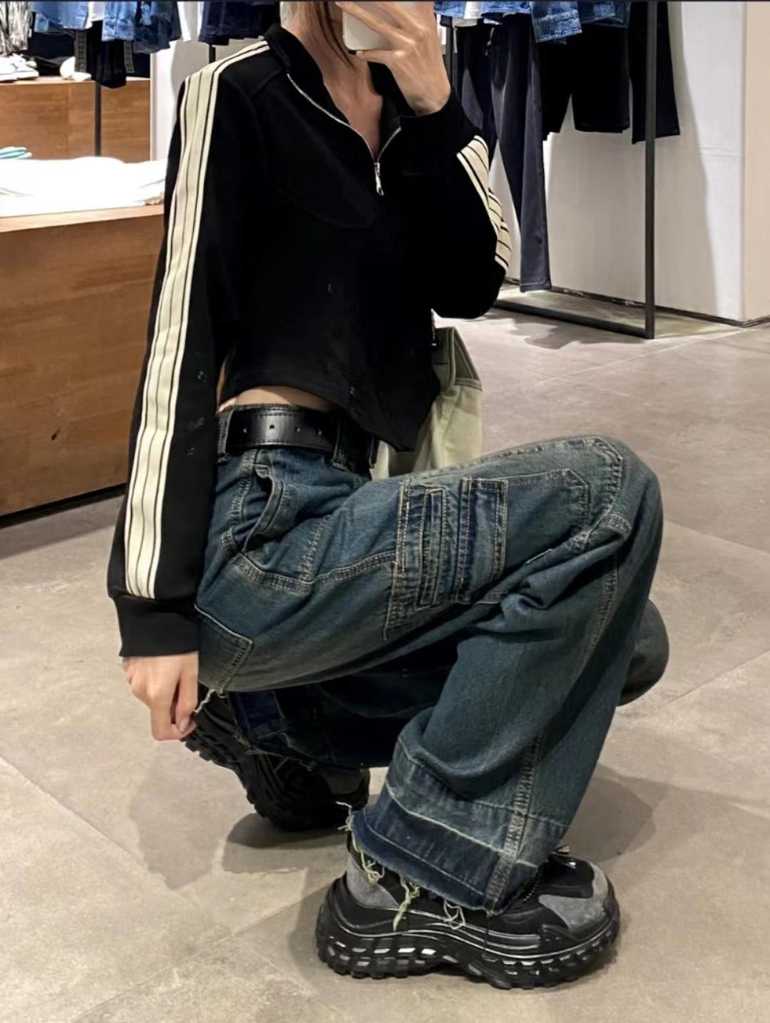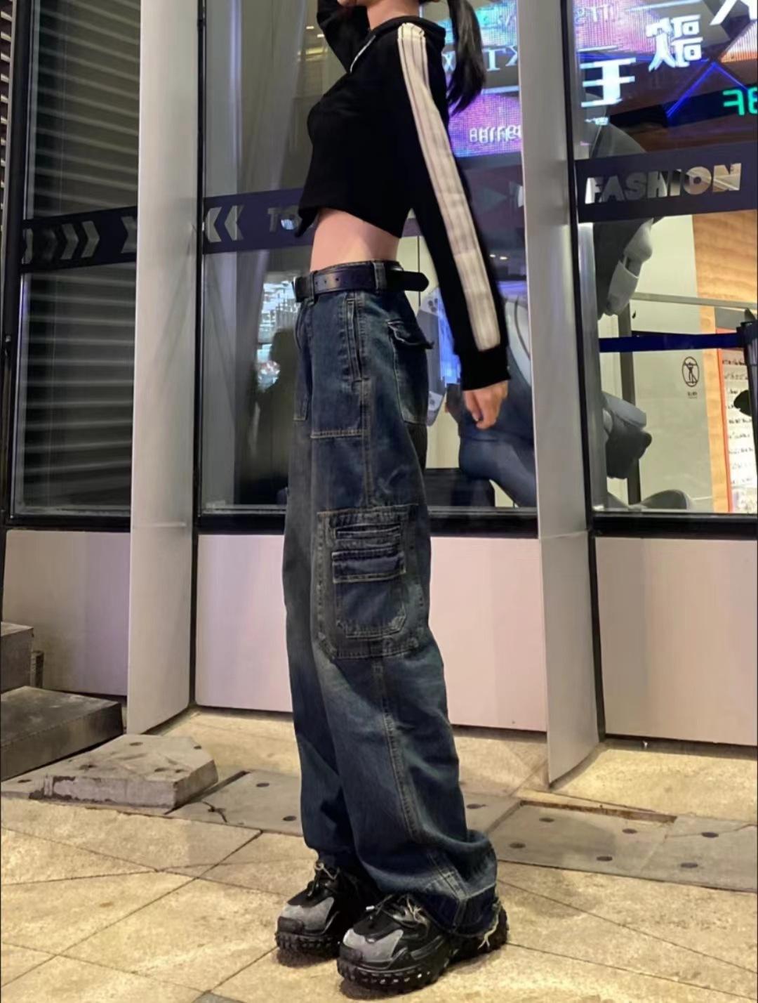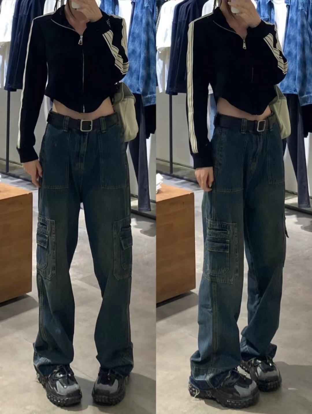 Talla grande Vintage Lavado Bolsillo Jeans Mujer chica gordita Otoño Cintura Alta Suelto Recto Look Delgado Pierna Ancha Pantalones de Trabajo