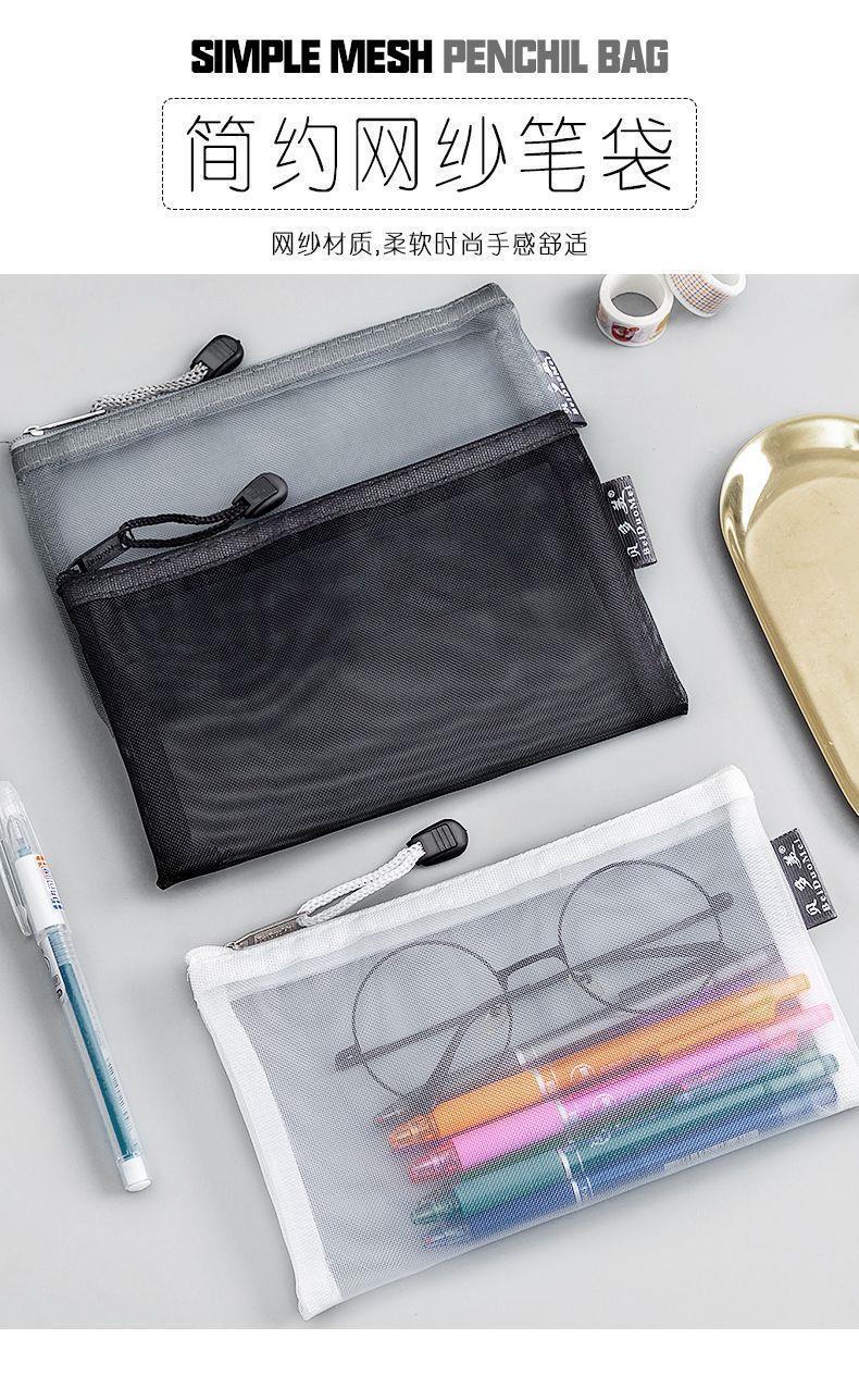 Estuche Casual Coreano Transparente de Malla Bolsa de Almacenamiento Estudiante Examen Gran Capacidad Caja de Papelería