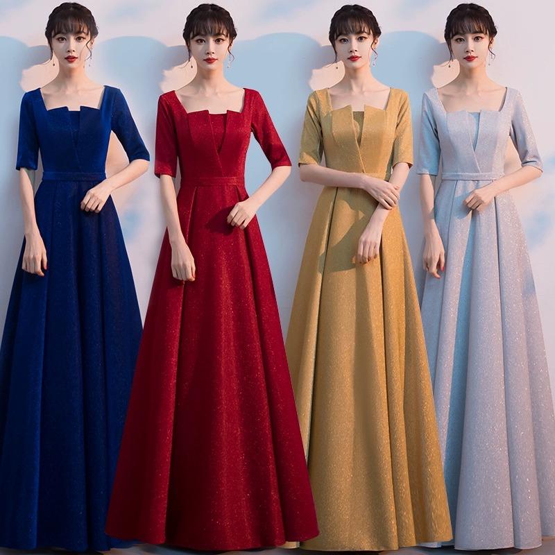 Vestido de Coro Atmosférico Vestido Largo Temperamento de Anfitrión Disfraz de Actuación de Coro Femenino Adulto Elegante Moderno Largo